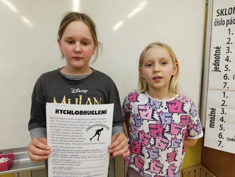 V pátek jsme v hodině čtení spojili i výtvarnou výchovu, abychom se mohli dozvědět něco zajímavého o zimních sportech, které můžeme vidět na olympiádě. Práce s textem nás bavila, splnili jsme zadané úkoly a na závěr jsme společně nakreslili sportovce.