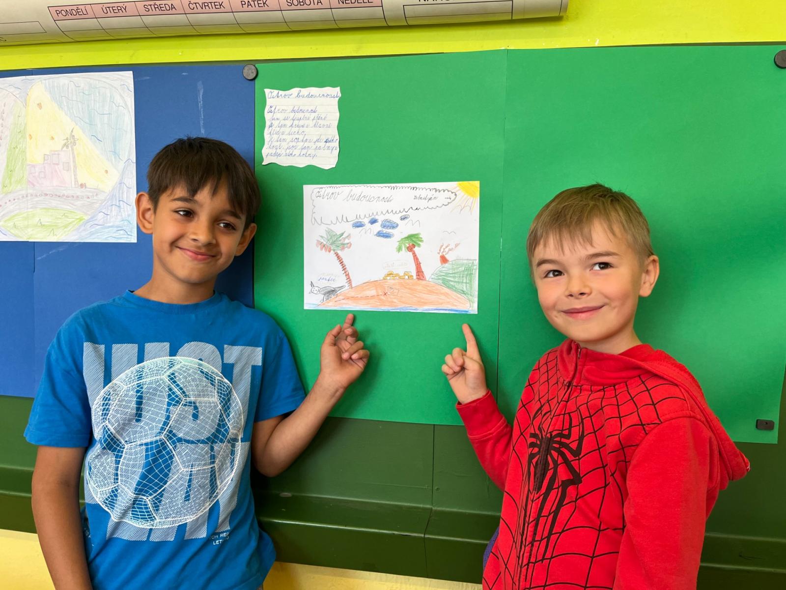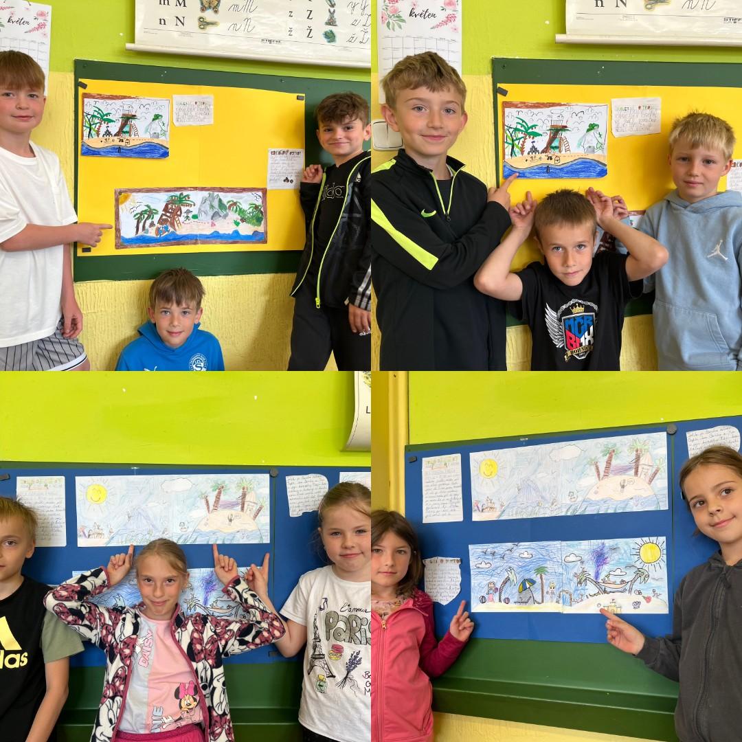 Téma OSTROV nás provázel nejen jazykem českým, ale i výtvarnou výchovou. Pustili jsme se do této výzvy po hlavě, podařilo se nám to po stránce slohové i výtvarné. Nebáli jsme se fantazie, tak vznikly zajímavé nápady.]