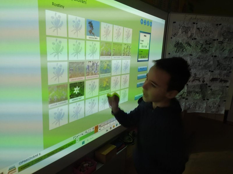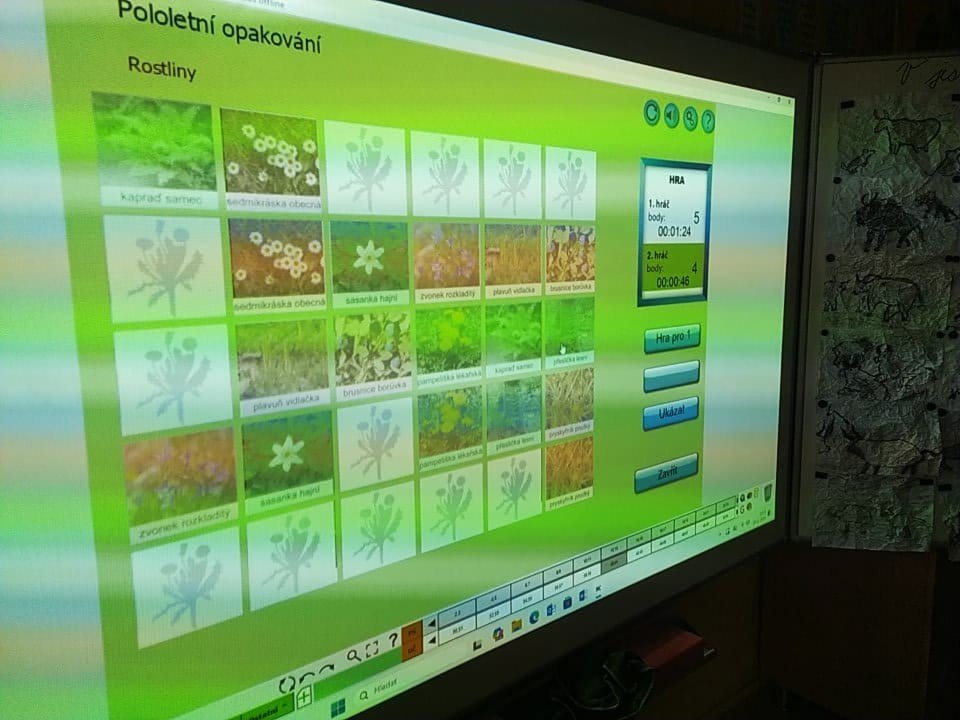 Opakovali jsme ekosystémy, tak jsme si při tom zahráli interaktivní pexesa. Nejprve rostliny, poté stromy. A protože všichni dávali pozor, byla to hračka. V první hře vyhrála děvčata, ve druhé zase kluci.