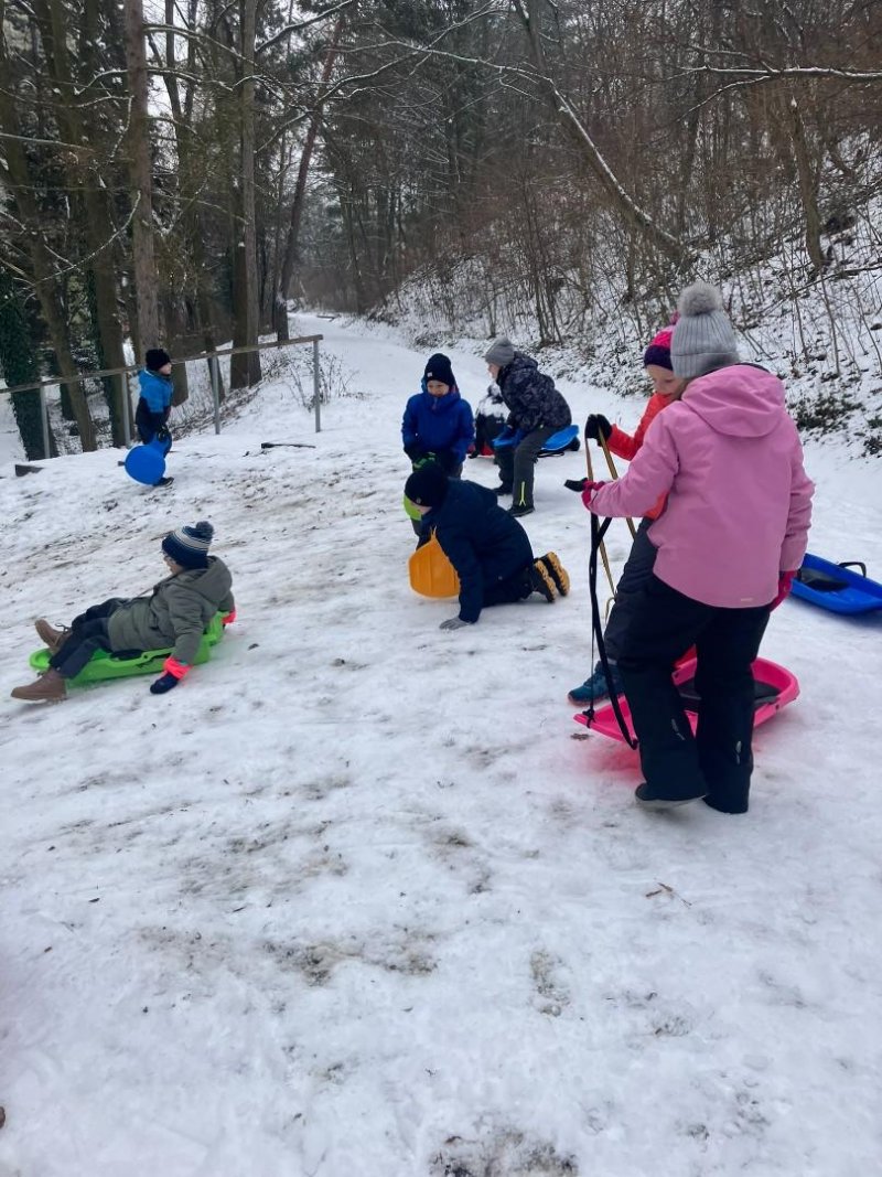 Leden se nese ve znamení sportu a pohybových aktivit. V tradičních plaveckých závodech obsadila 1. příčku Markétka Inderková, hned za ní se umístila Klárka Tomečková a jako třetí doplaval Bárt Vopat. Protože nám letos nasněžilo, rychle jsme využili sněhovou nadílku k bobování.