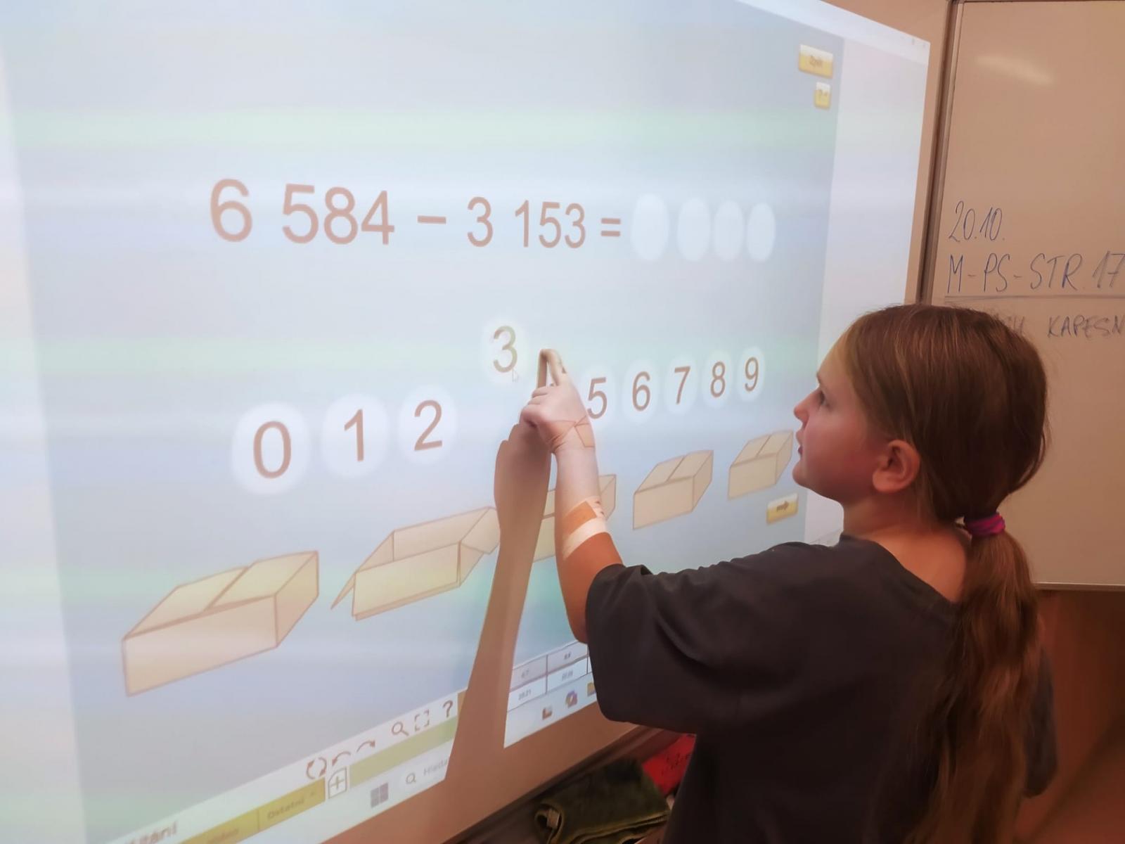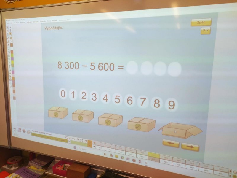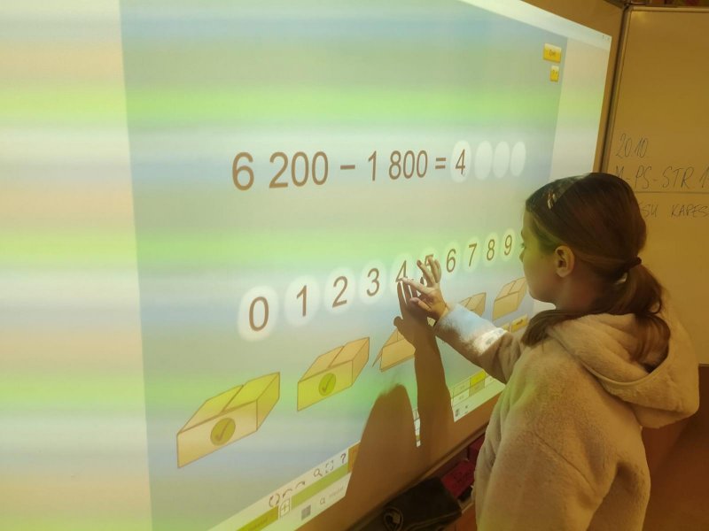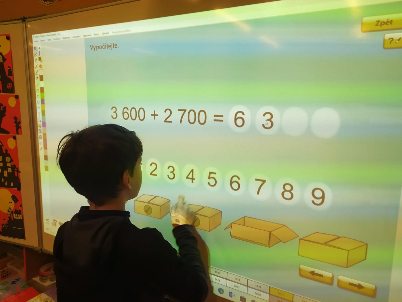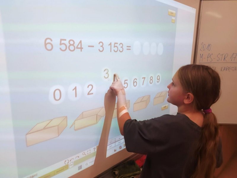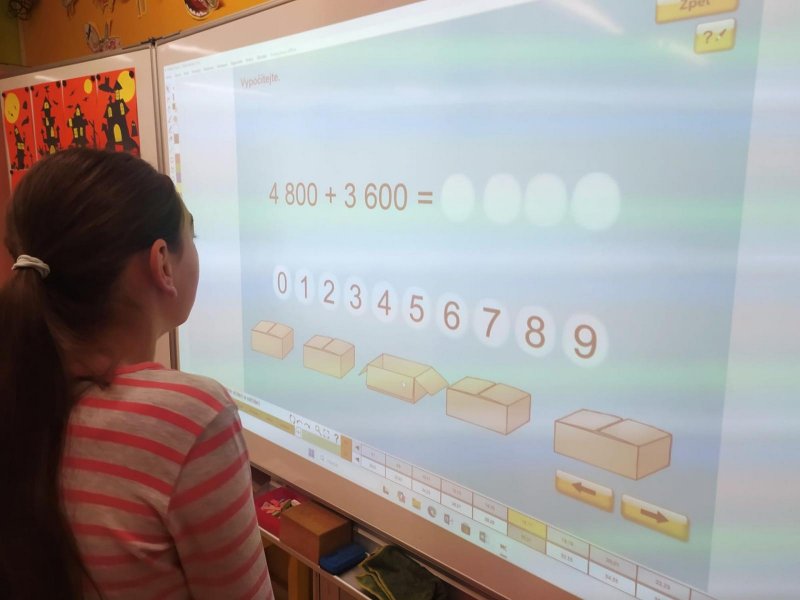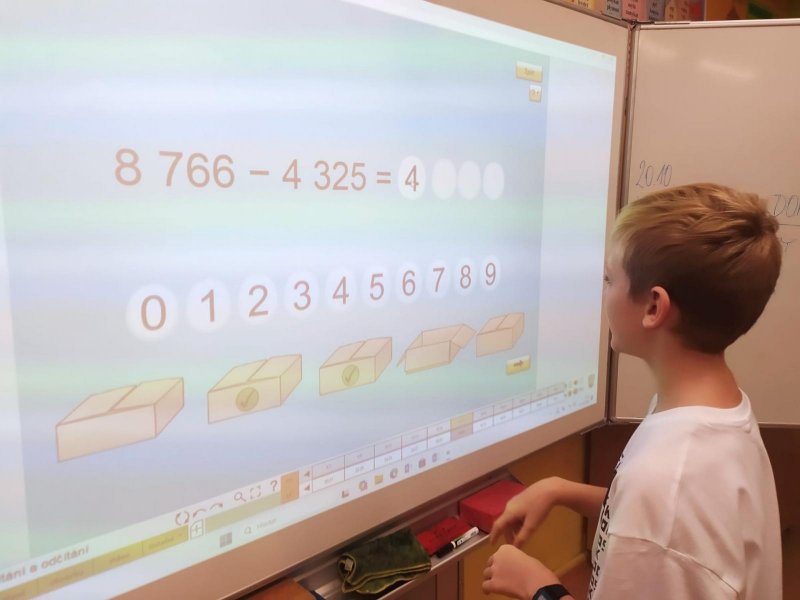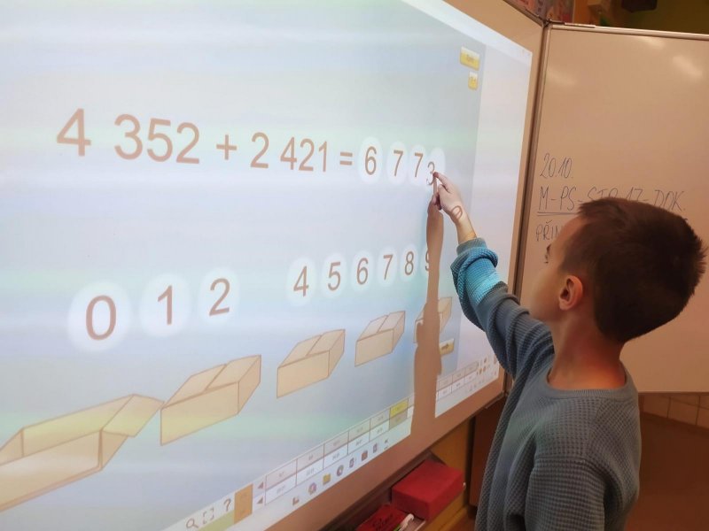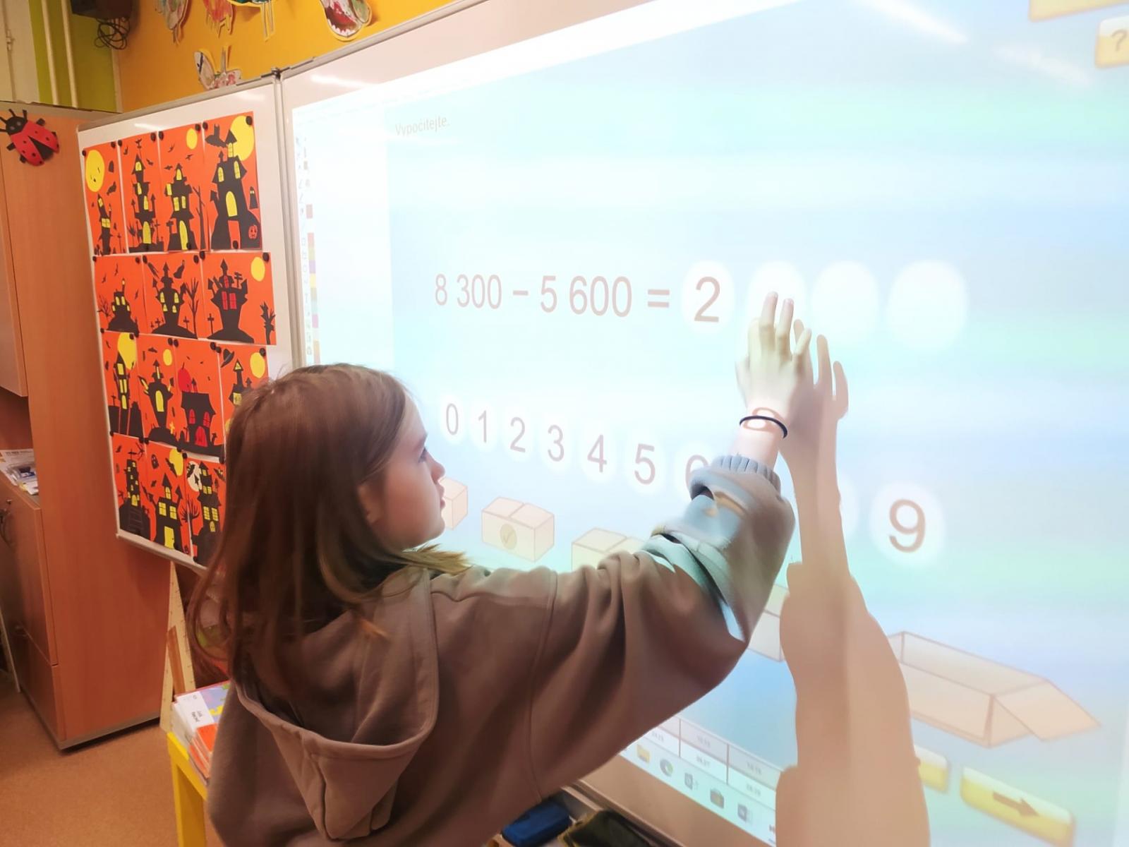 Radost nám dělá zprovozněná dotyková tabule, tak směle procvičujeme počítání do 10 000. Předháníme se, kdo půjde k tabuli a to je plno radosti z práce. Jen tak dál, moji čtvrťáci.