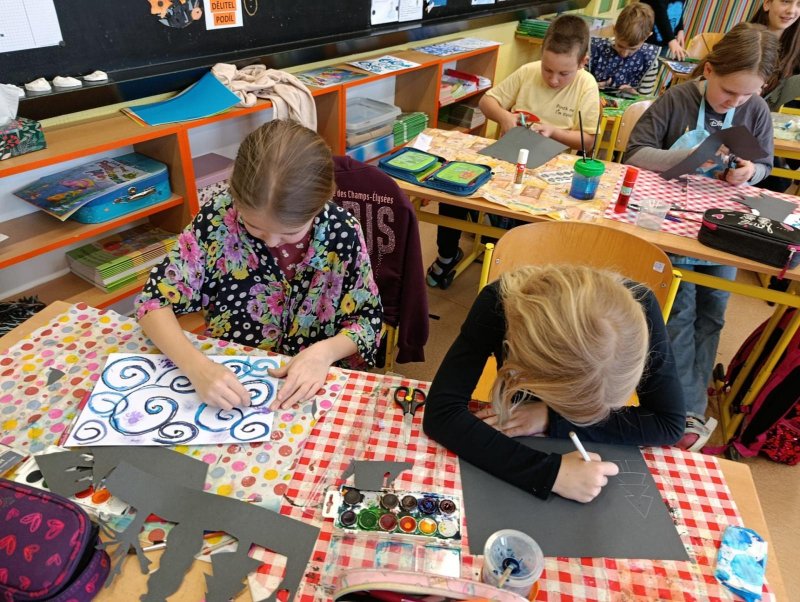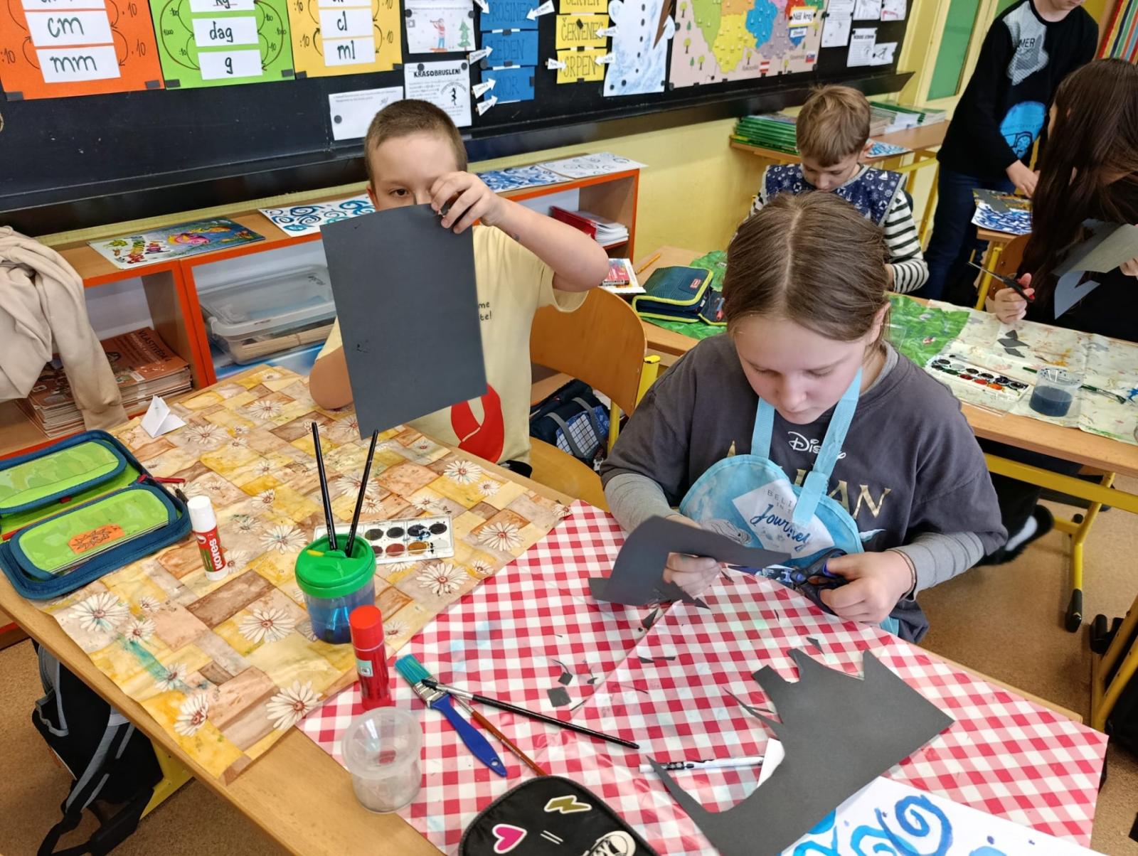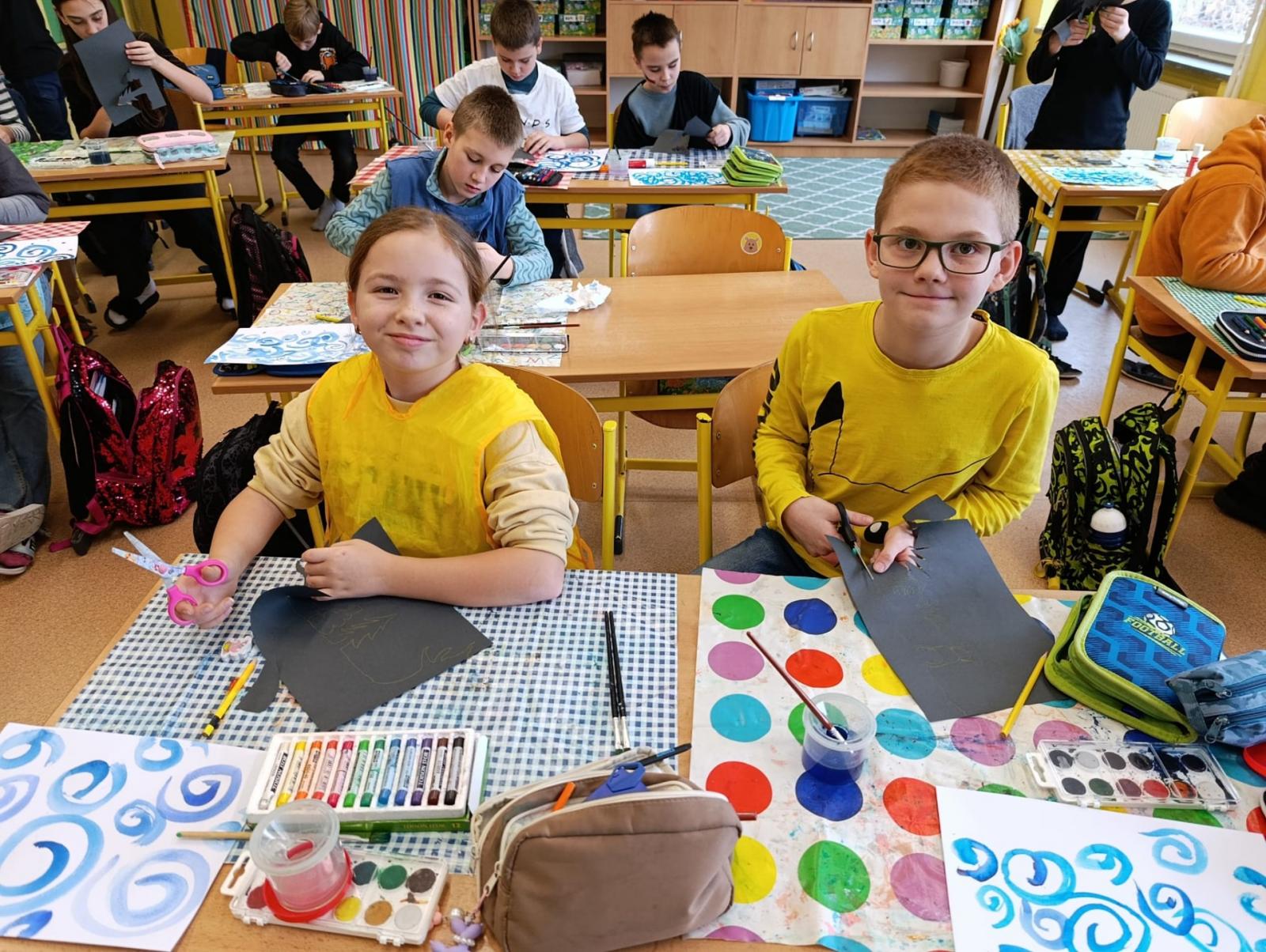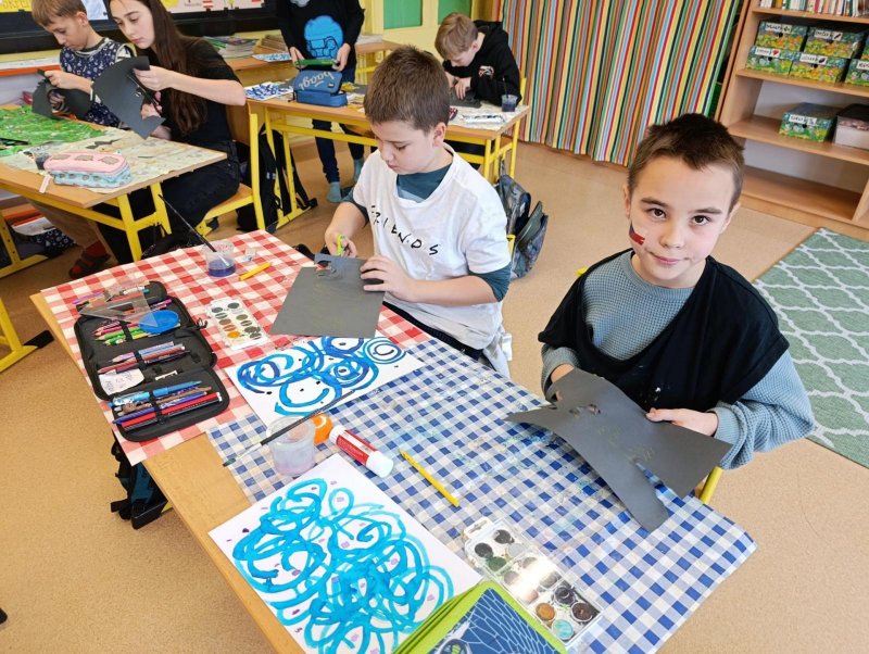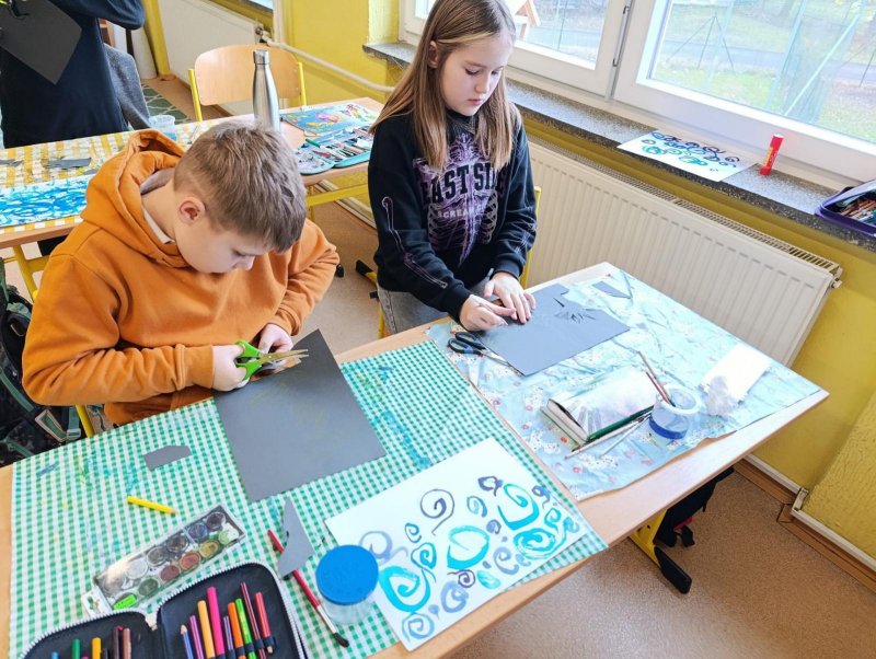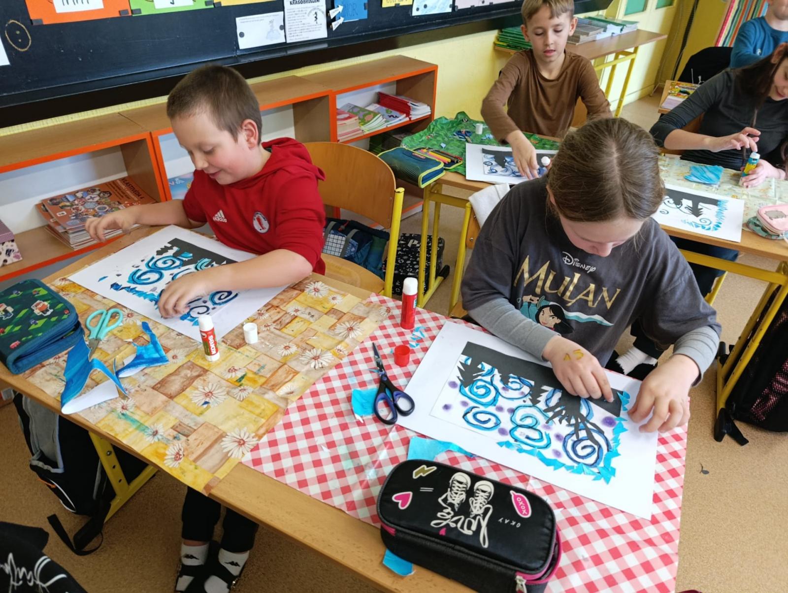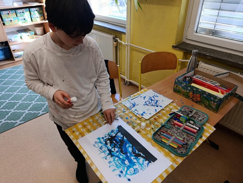 Silných studených větrů jsme si užili v poslední době dost a dost. Napadlo nás nakreslit si takovou nefalšovanou zimní bouři v lese. Na závěr jsme nalepili na paspartu a kolem přilepili ledové krystaly. Snad se nás už zima trochu lekne a jaro se přiblíží.