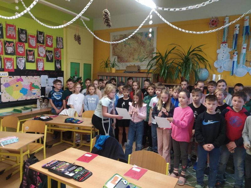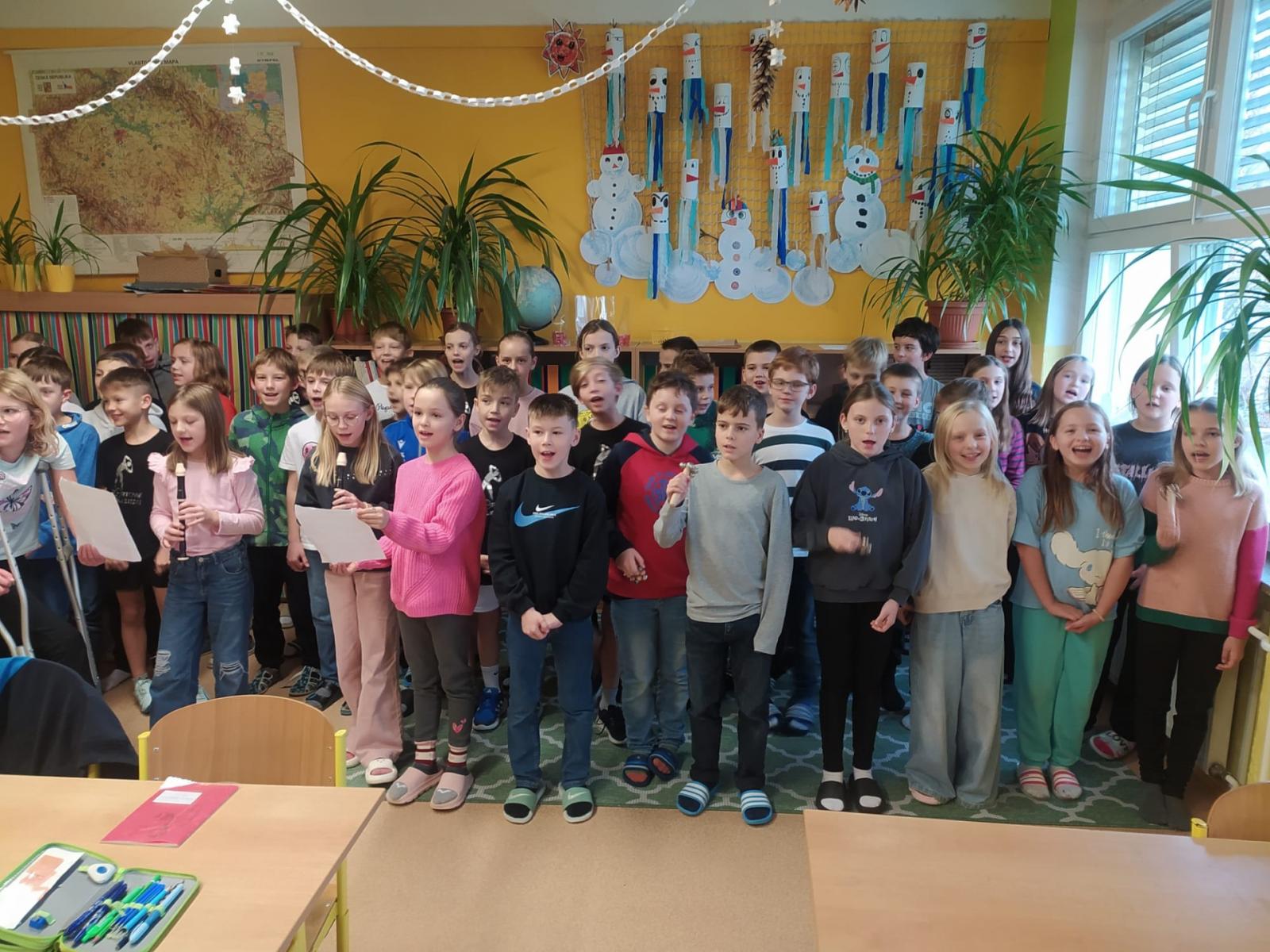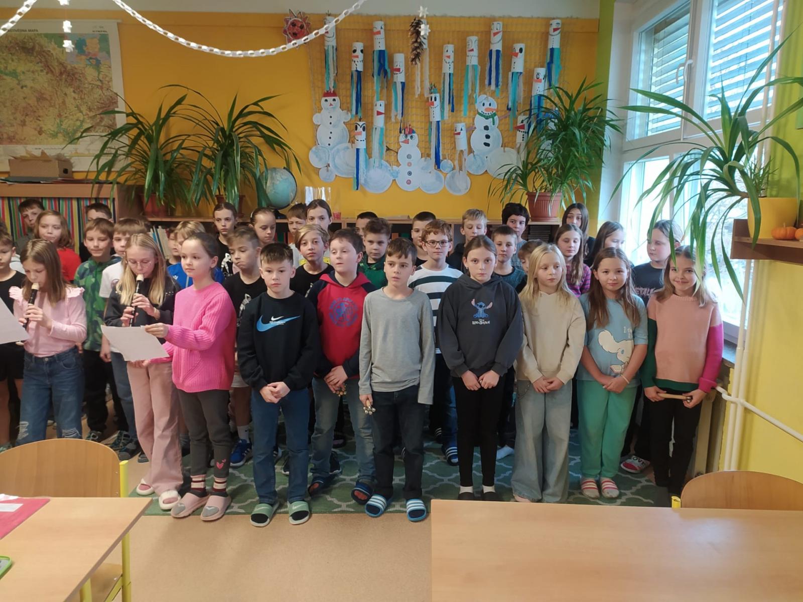 Naše zodpovědná příprava na zpívání u vánočního stromu bude zúročena ve středu 17, prosince. Společná zkouška všech čtvrtých tříd už několikrát proběhla. Tak si nás přijďte poslechnout a podpořit. Budeme na Masarykově náměstí od 11 hodin.