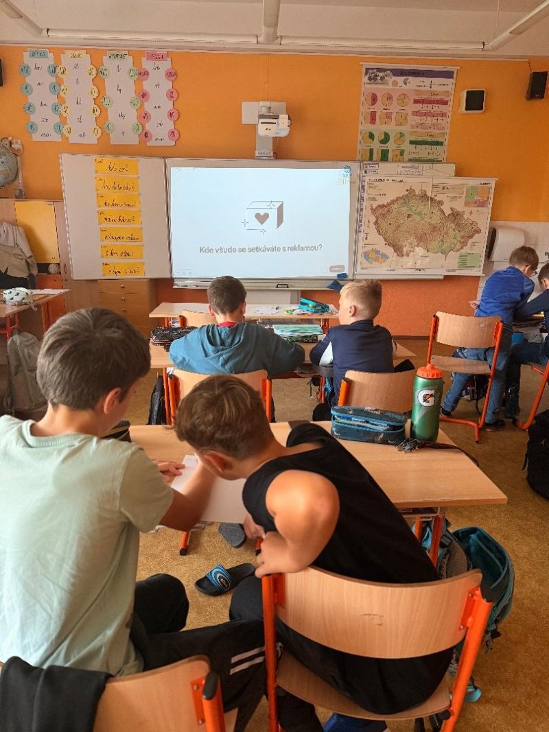 S žáky jsme se rozhodli pojat hodinu slohu netradičně a to díky programu Skoala, který nám umožnil objevit svět reklamy zábavnou formou. Učili jsme se rozpoznávat reklamní triky, tvořit vlastní slogany a přemýšlet o tom, jak reklama působí na naše rozhodování.