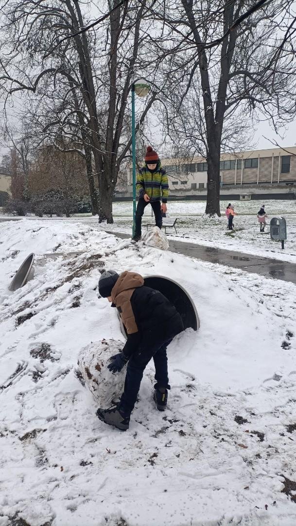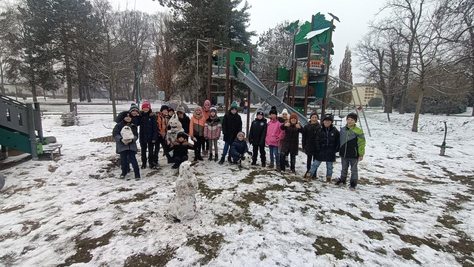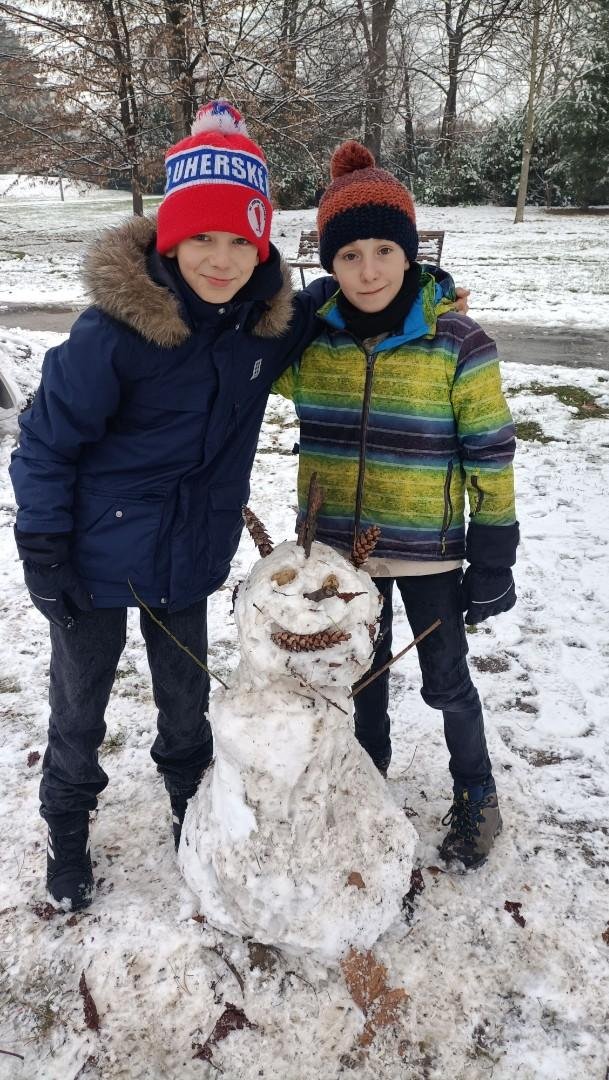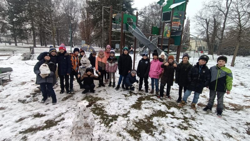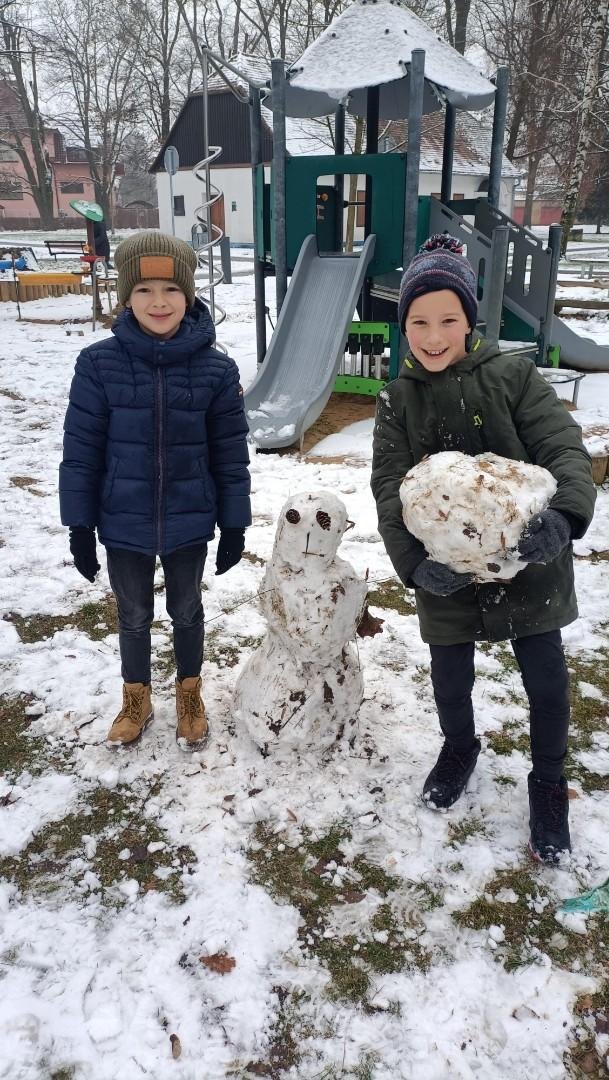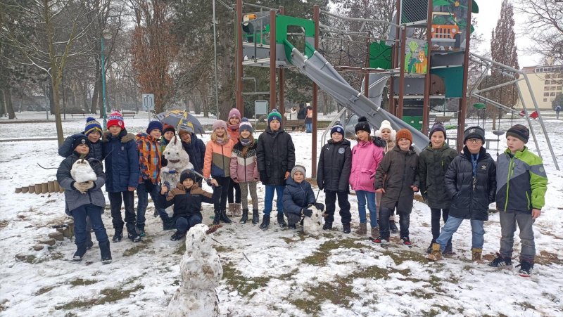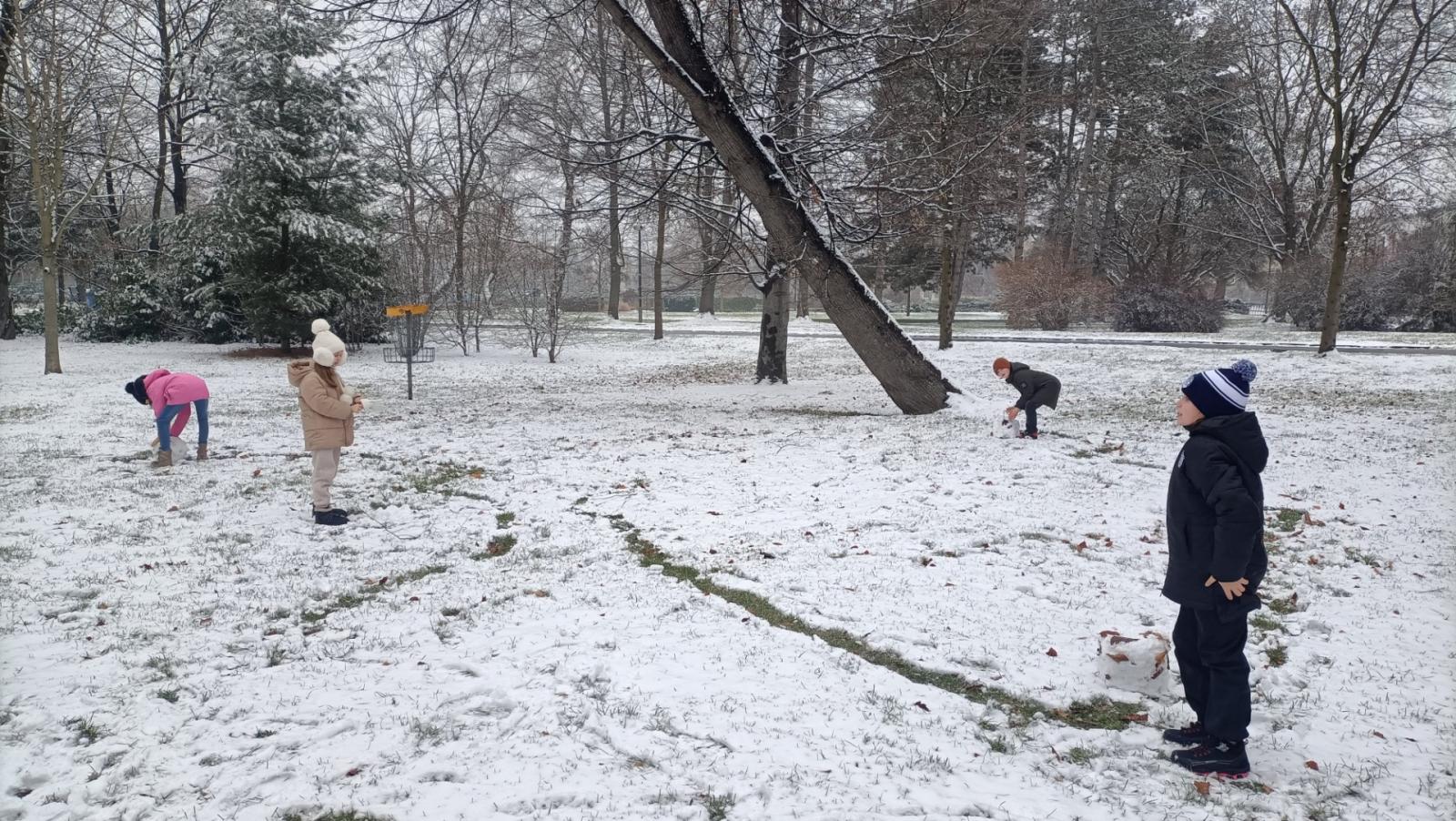 Při výběru ze dvou možností - pracovka ve třídě nebo venku ve sněhu - byla volba dětí jasná:) Celou noc totiž sněžilo, takže hurá do parku! A co děti vytvořily, na to se podívejte ve fotogalerii.