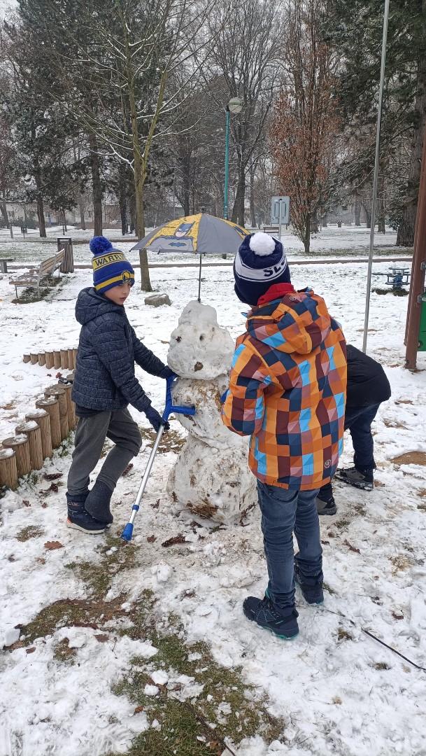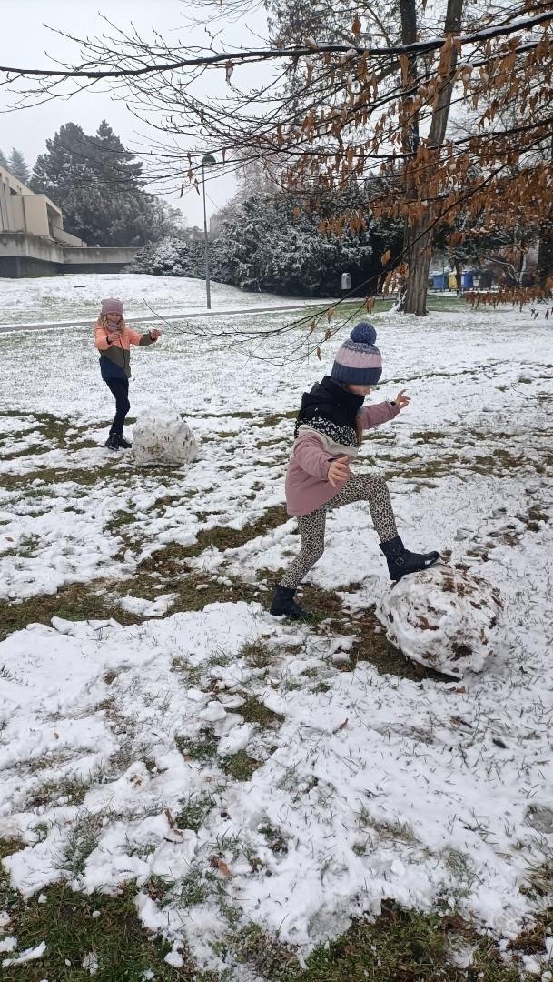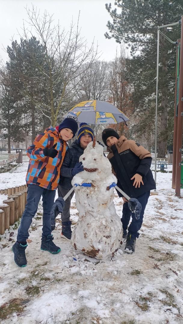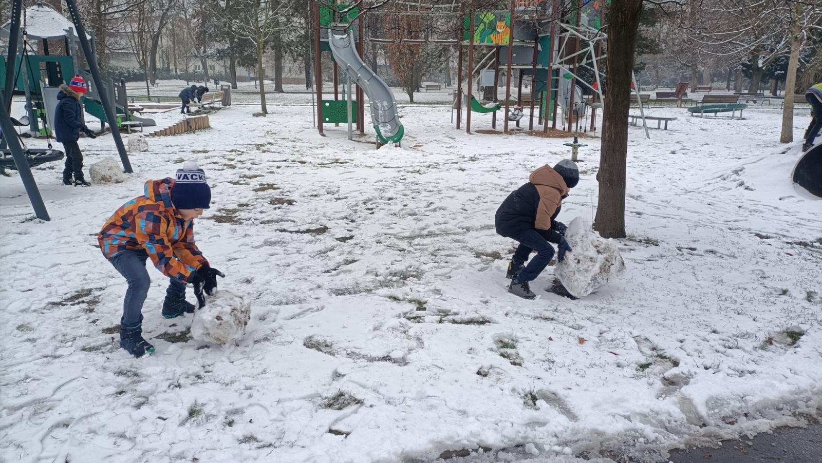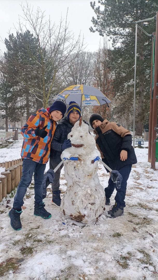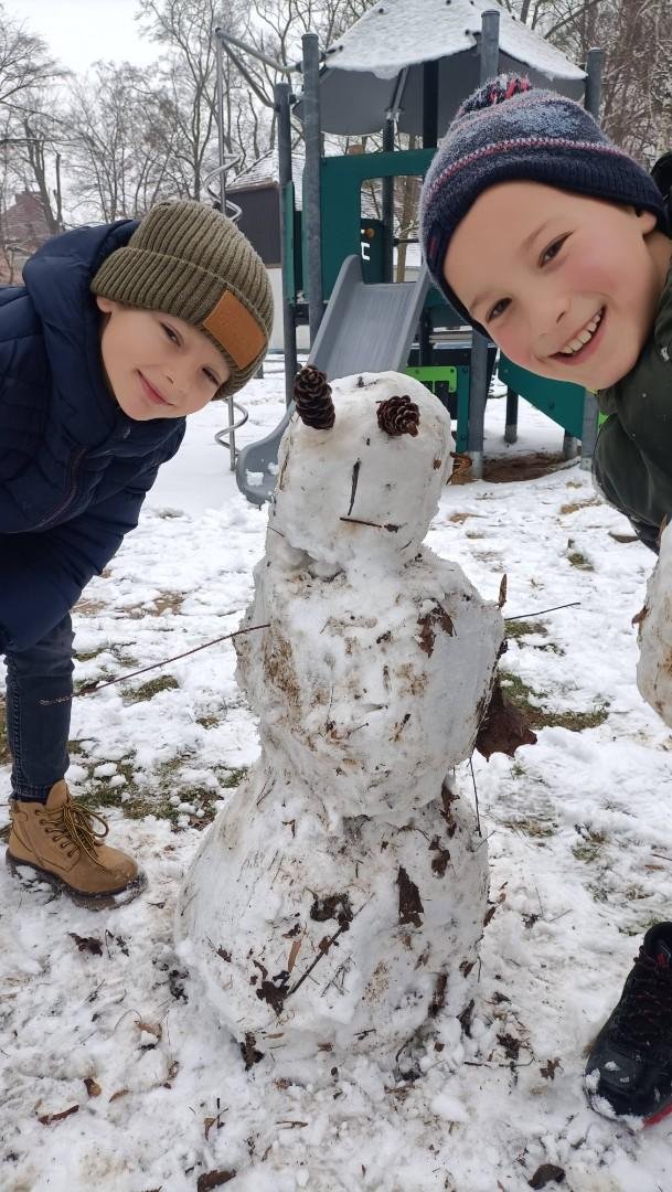Při výběru ze dvou možností - pracovka ve třídě nebo venku ve sněhu - byla volba dětí jasná:) Celou noc totiž sněžilo, takže hurá do parku! A co děti vytvořily, na to se podívejte ve fotogalerii.