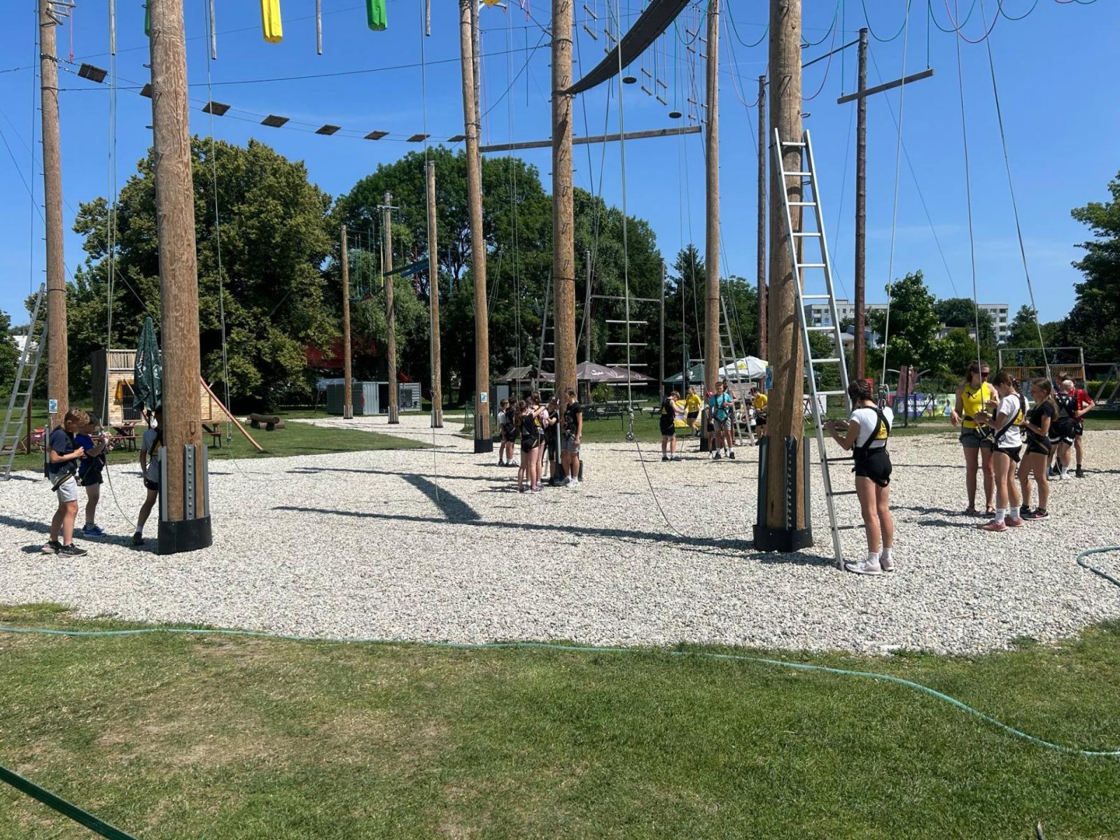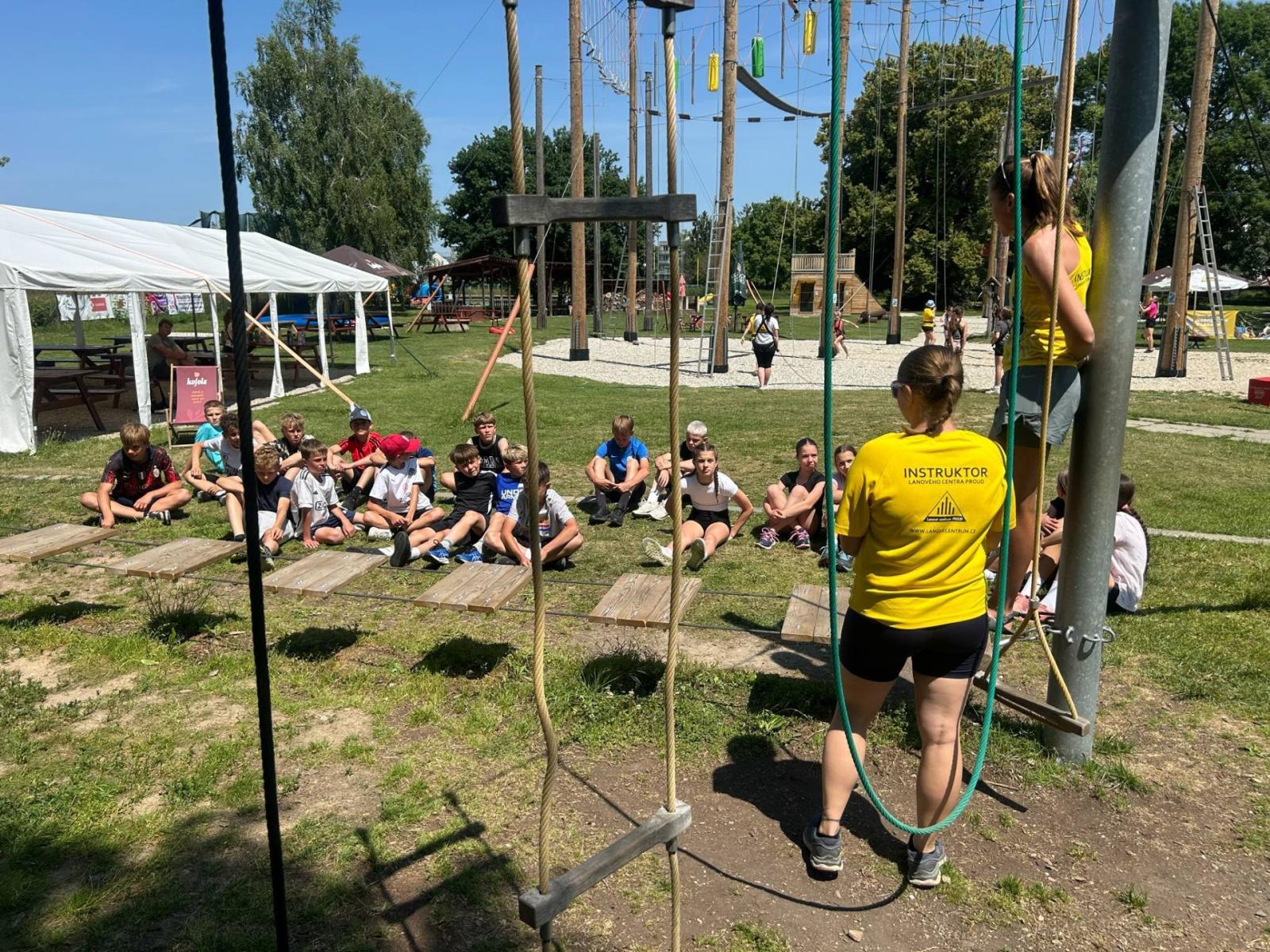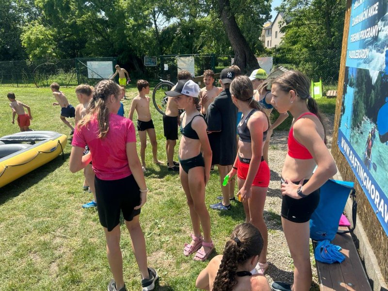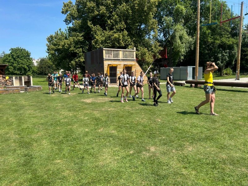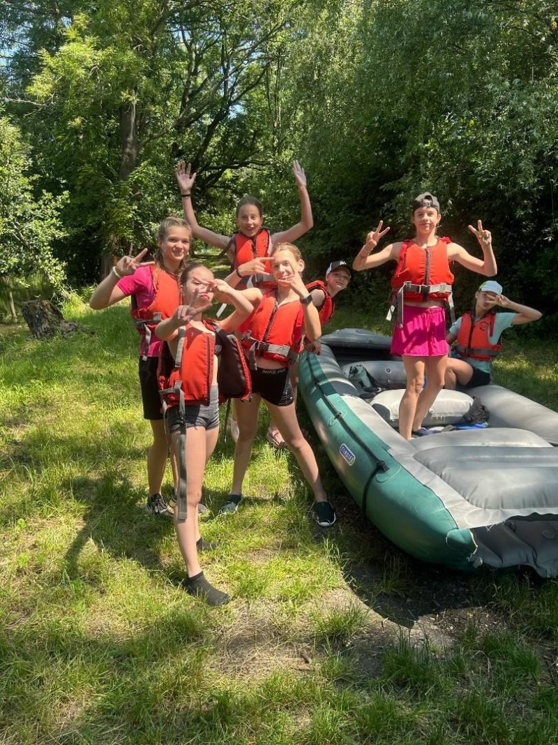 Letošní školní výlet se konal v Olomouci a to konkrétně s programem na raftech Mlýnského potoka a následné lezení na výškových překážkách v lanovém centru. A že nám to počasí vyšlo!!!
