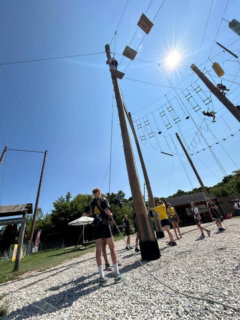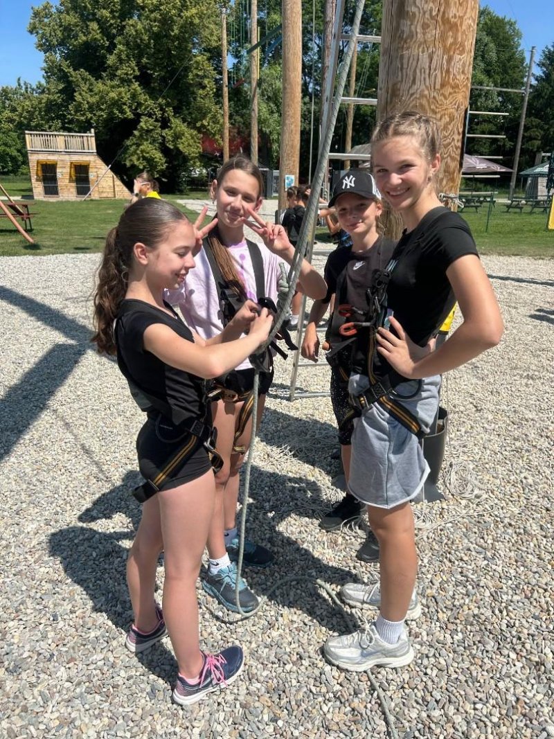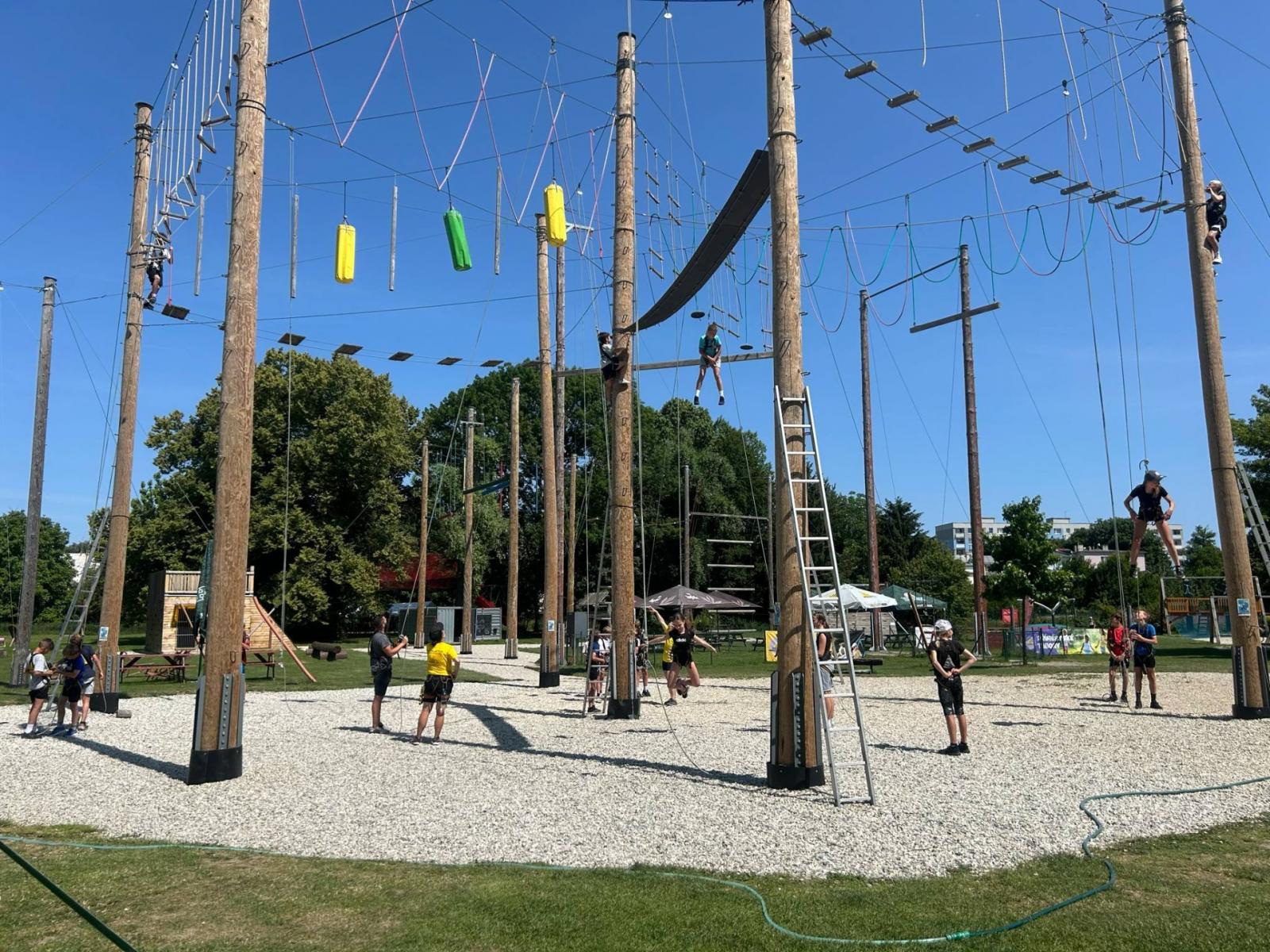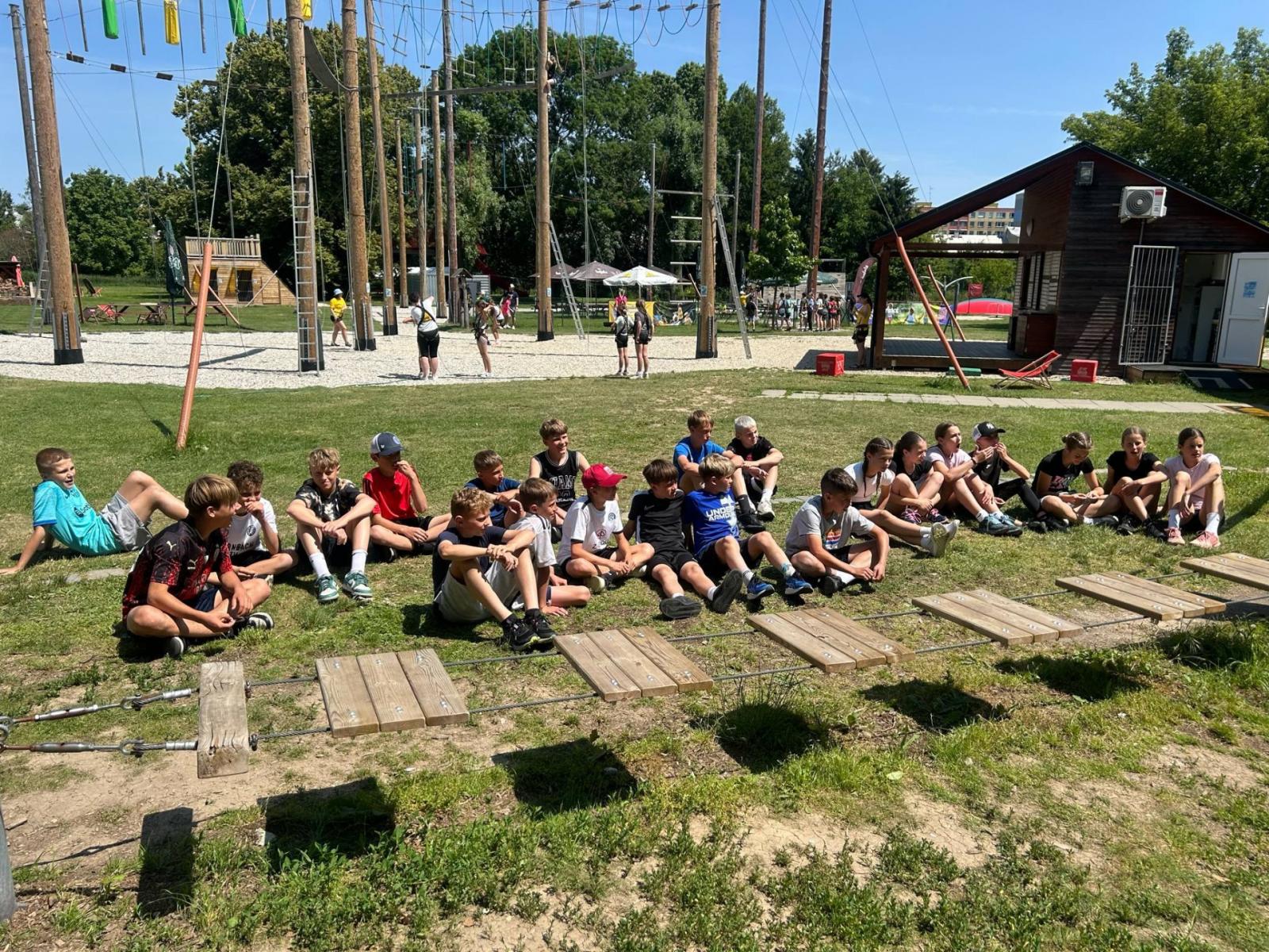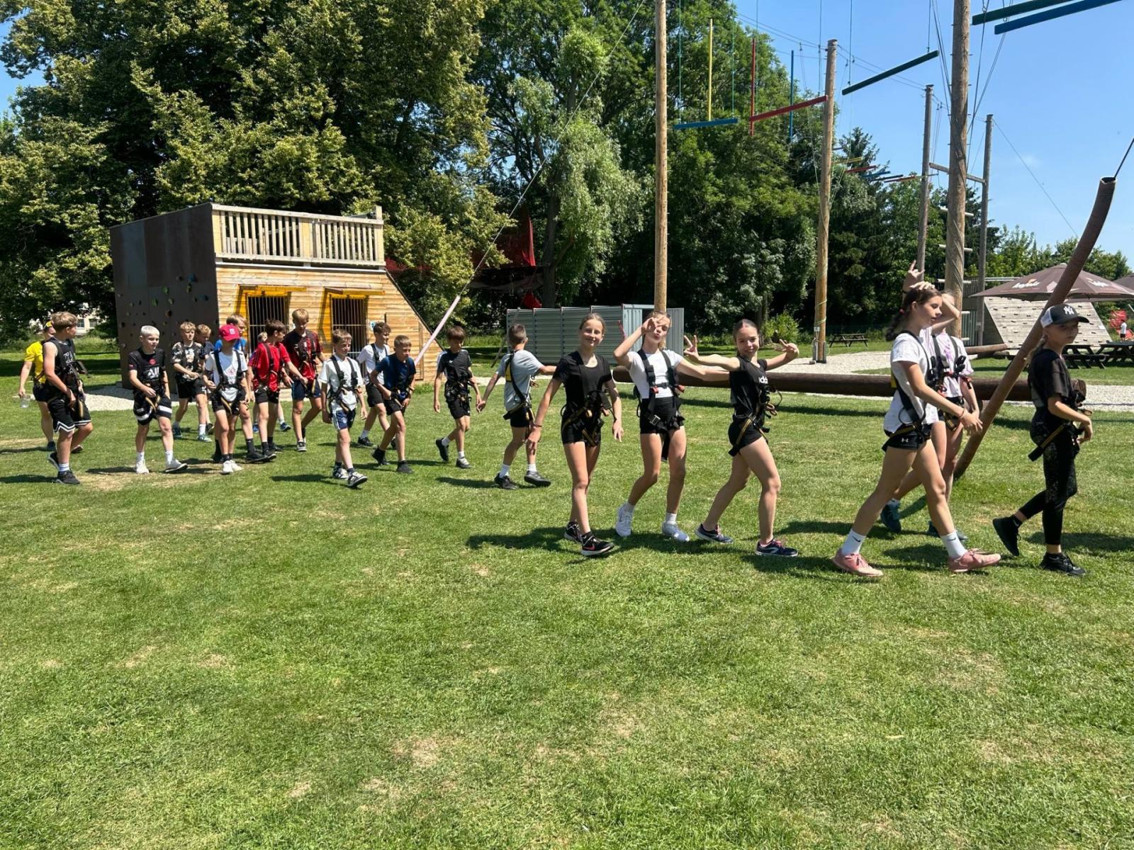 Letošní školní výlet se konal v Olomouci a to konkrétně s programem na raftech Mlýnského potoka a následné lezení na výškových překážkách v lanovém centru. A že nám to počasí vyšlo!!!