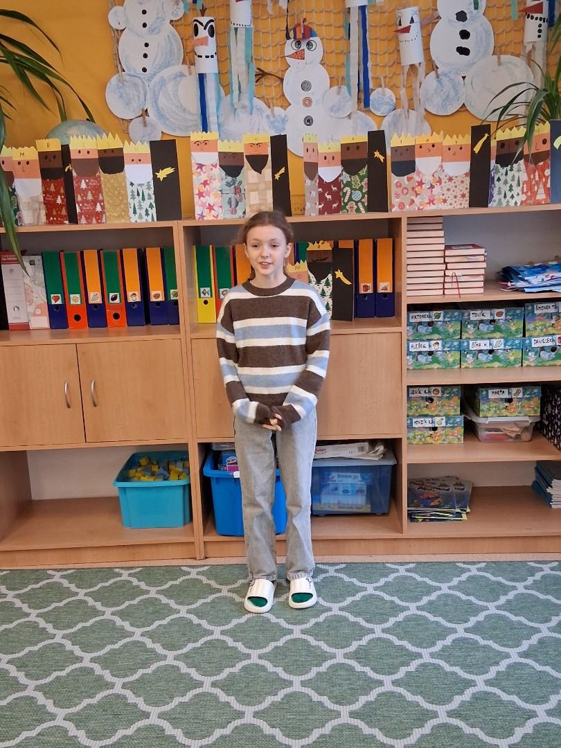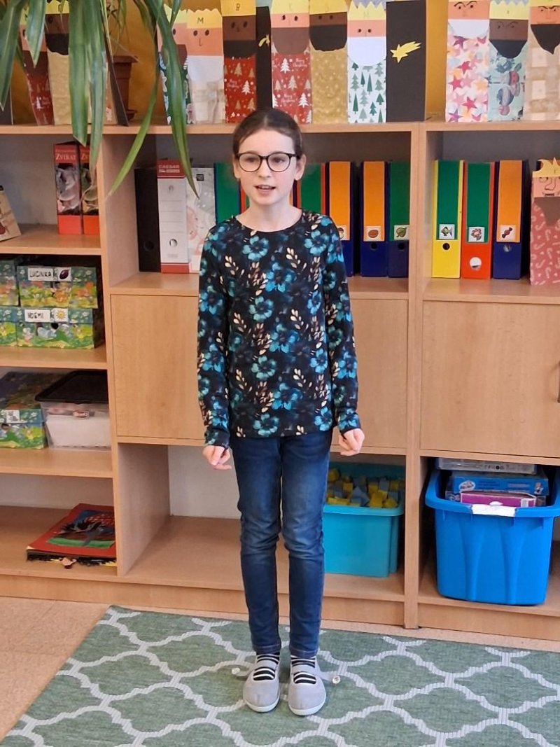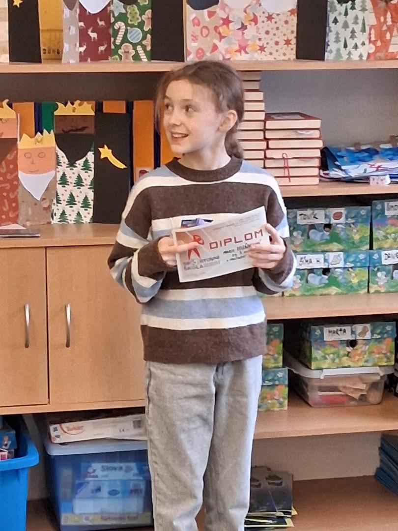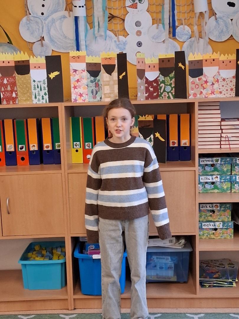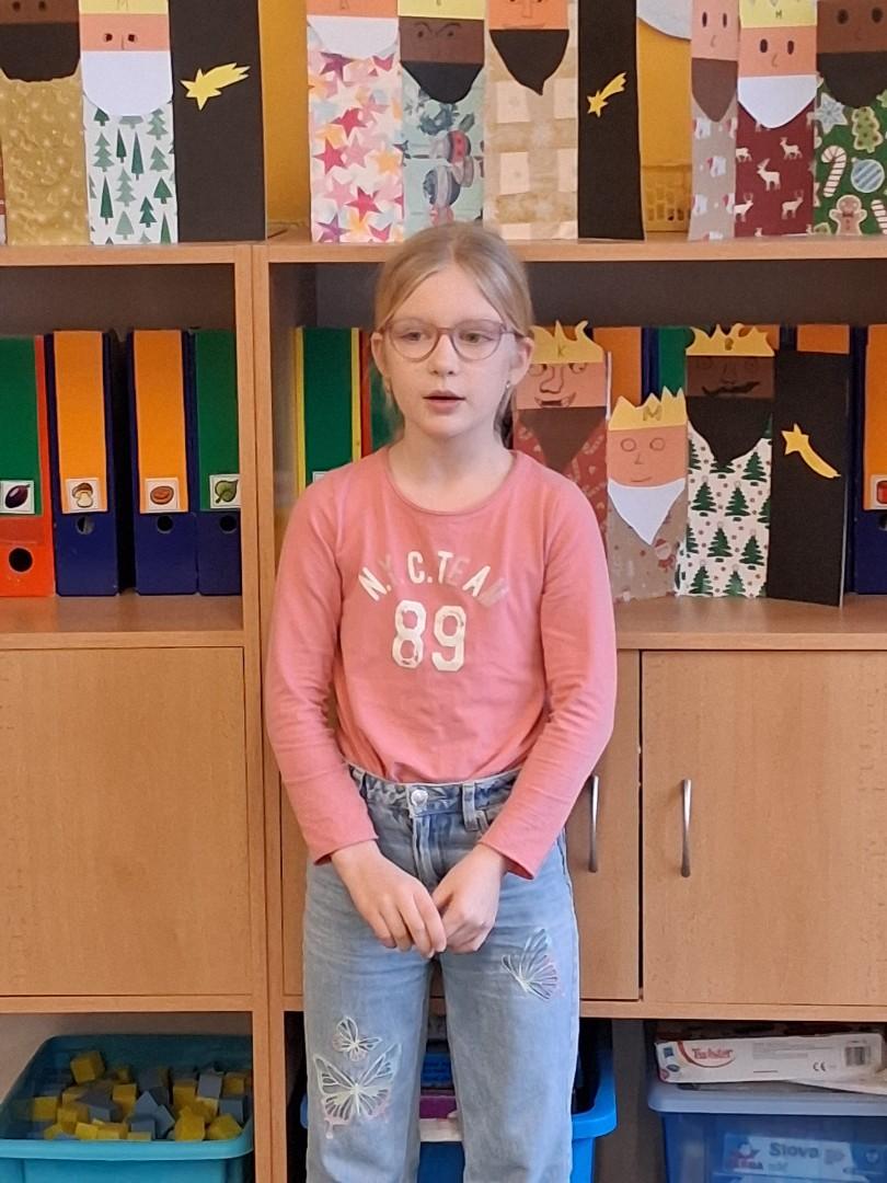 2.místo - Valča Vaculíková ze 4.A, která měla krásnou a dlouhou básničku a zvládla ji s přehledem.