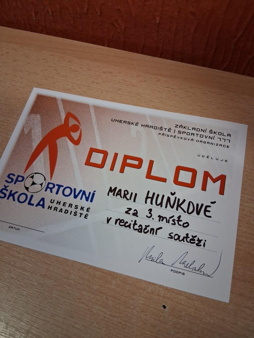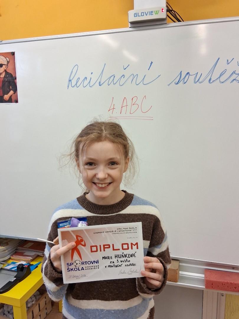 3.místo - Mája Huňková ze 4.C s básničkou o brněnském krokodýlovi, která nás zaujala a Mája ji přednesla bez chyby.