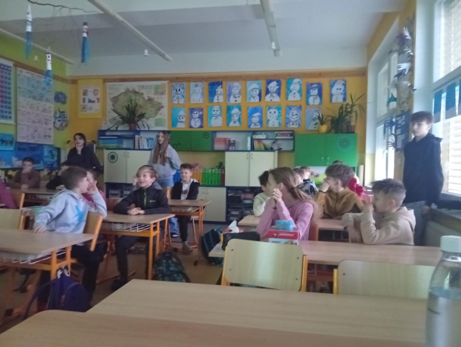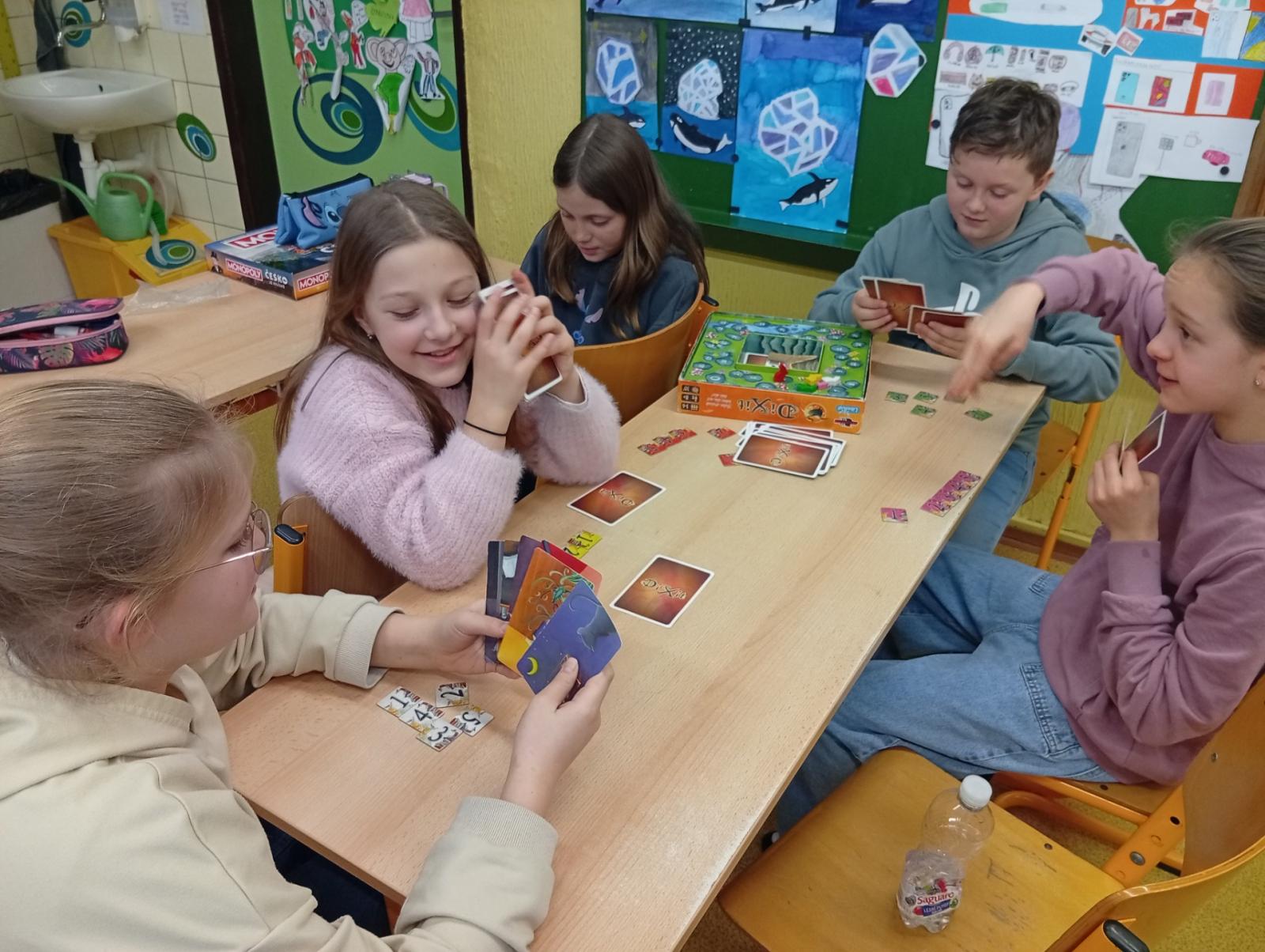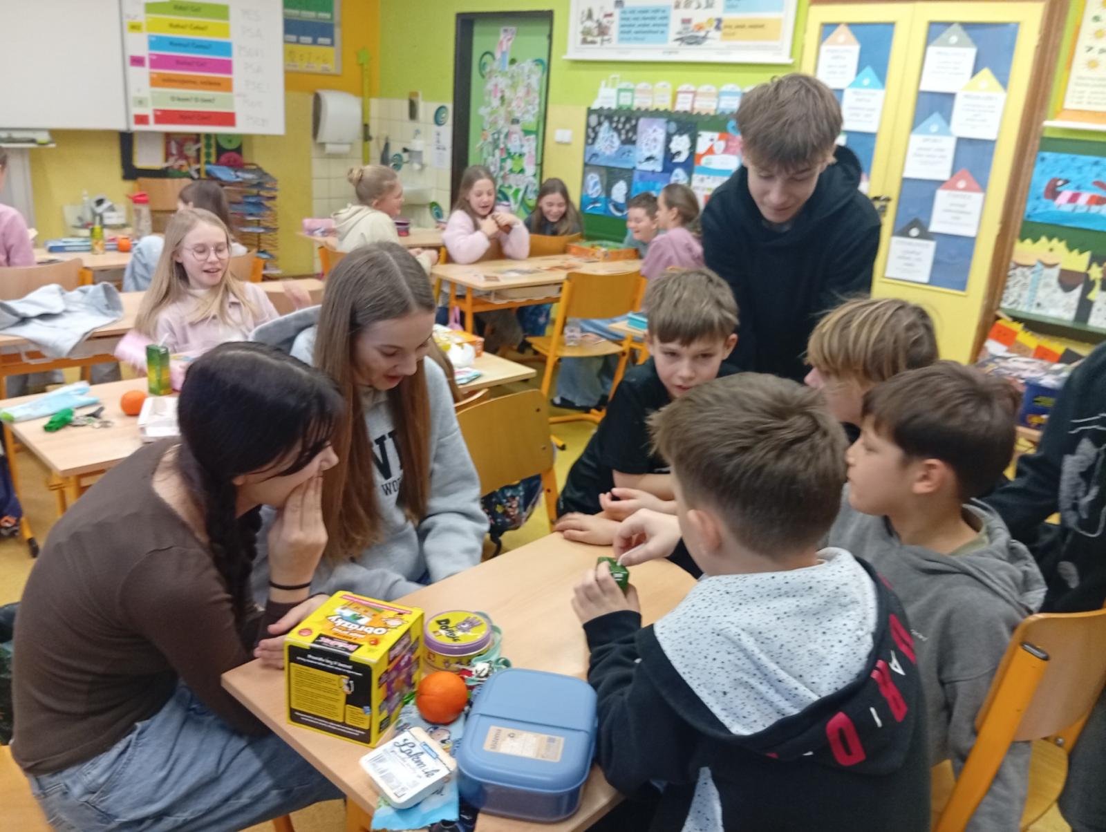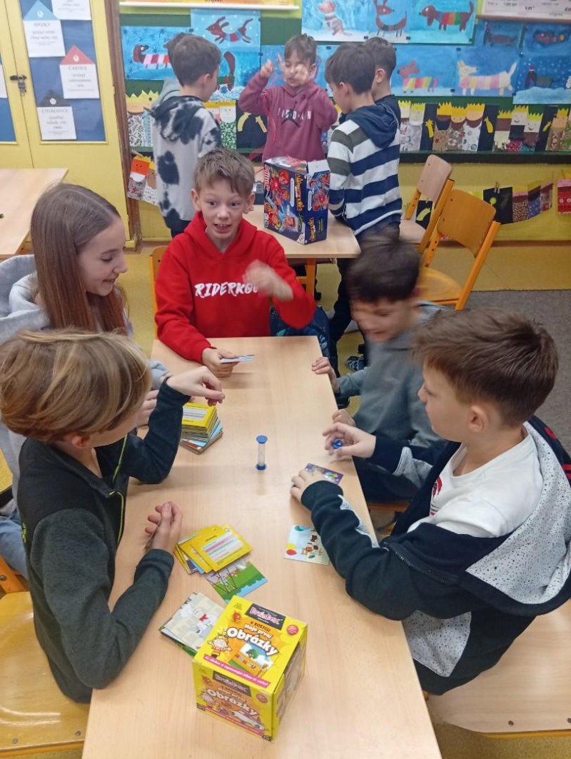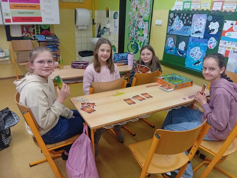 Dnes nás navštívili 3 žáci 8. třídy - Ondra, Ellča a Rózka. Společně s dětmi si zahráli v týmech pop quiz z platformy skoala na prověření finanční gramotnosti a poté už se dali do hraní deskových her všeho druhu:) Věřím, že si to užili jak čtvrťáci, tak osmáci. Děkujeme!