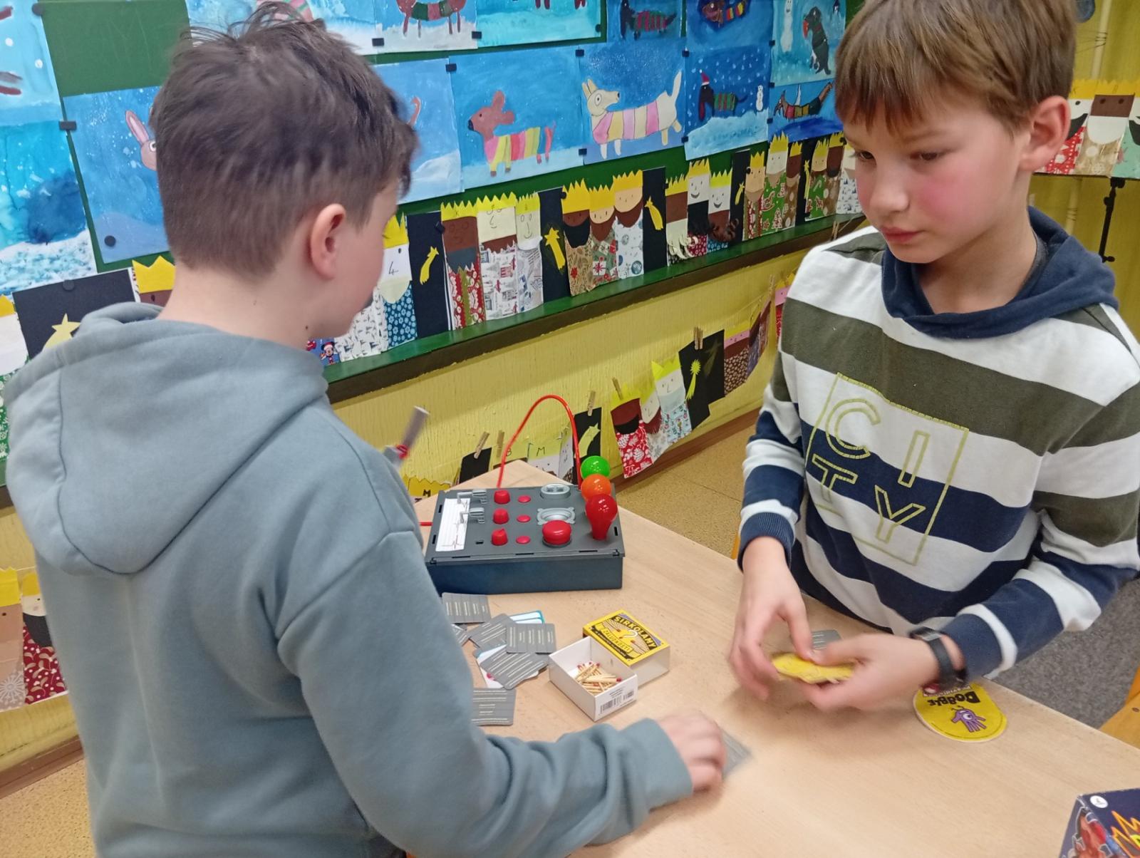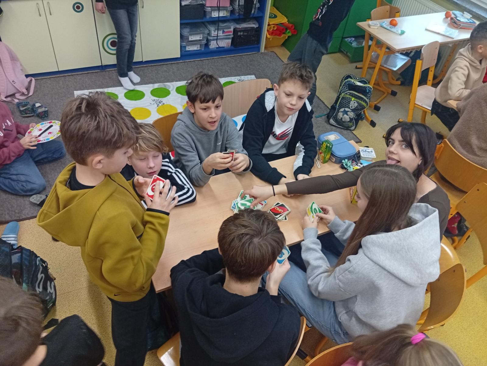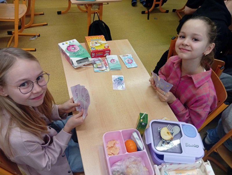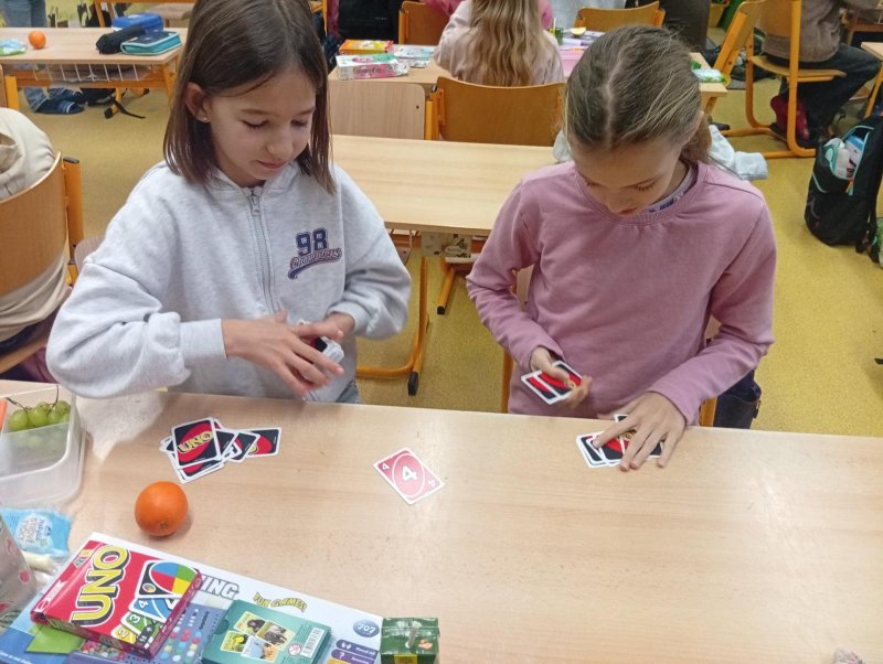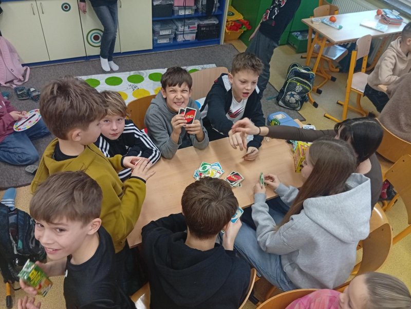 Dnes nás navštívili 3 žáci 8. třídy - Ondra, Ellča a Rózka. Společně s dětmi si zahráli v týmech pop quiz z platformy skoala na prověření finanční gramotnosti a poté už se dali do hraní deskových her všeho druhu:) Věřím, že si to užili jak čtvrťáci, tak osmáci. Děkujeme!