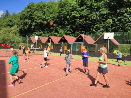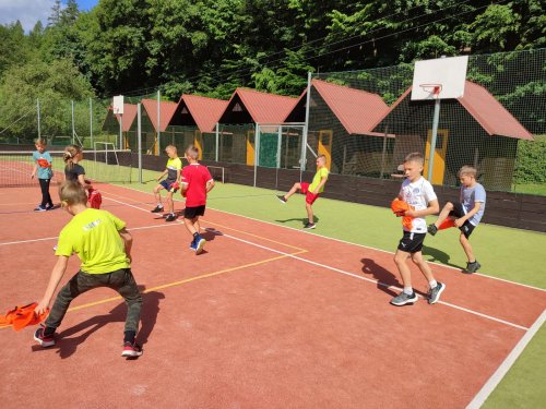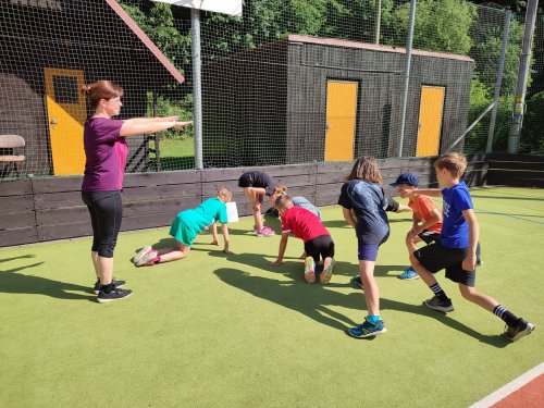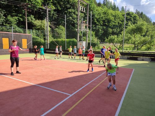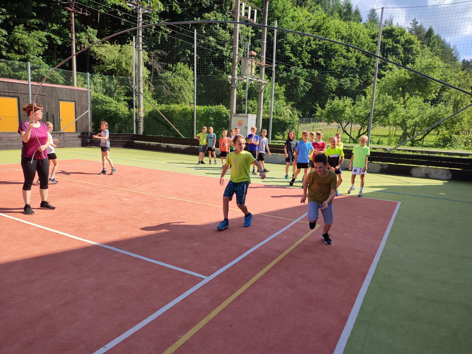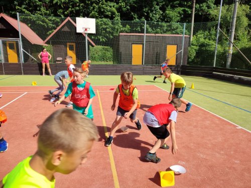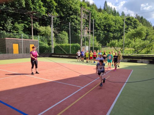 Ano, to je ona! A plnila s námi sportovní aktivity a pomáhala paní učitelkám. Do svačinky jsme zvládli tyto aktivity: