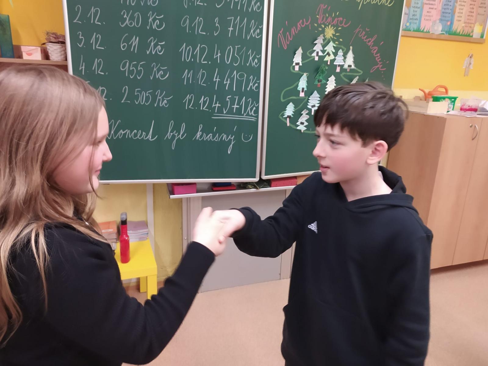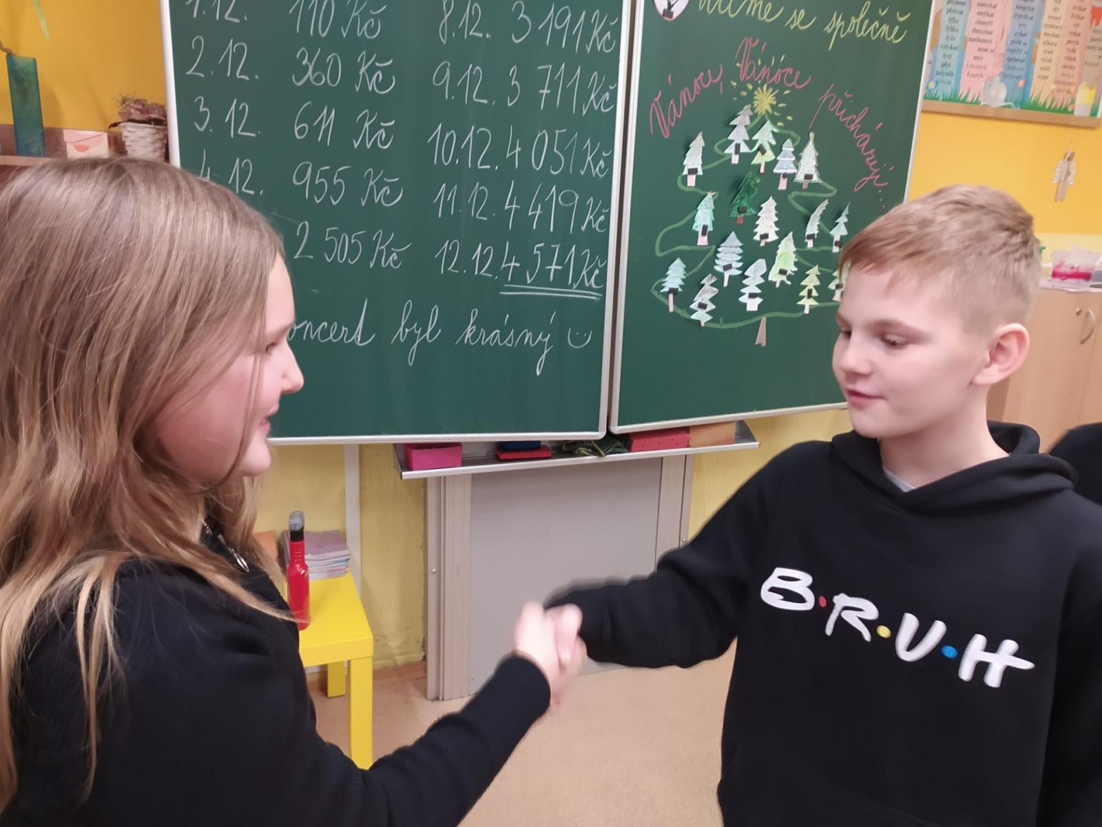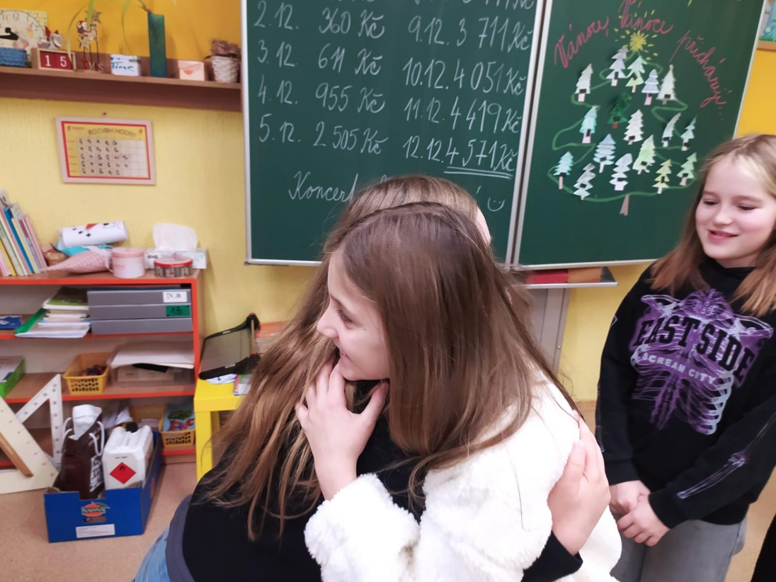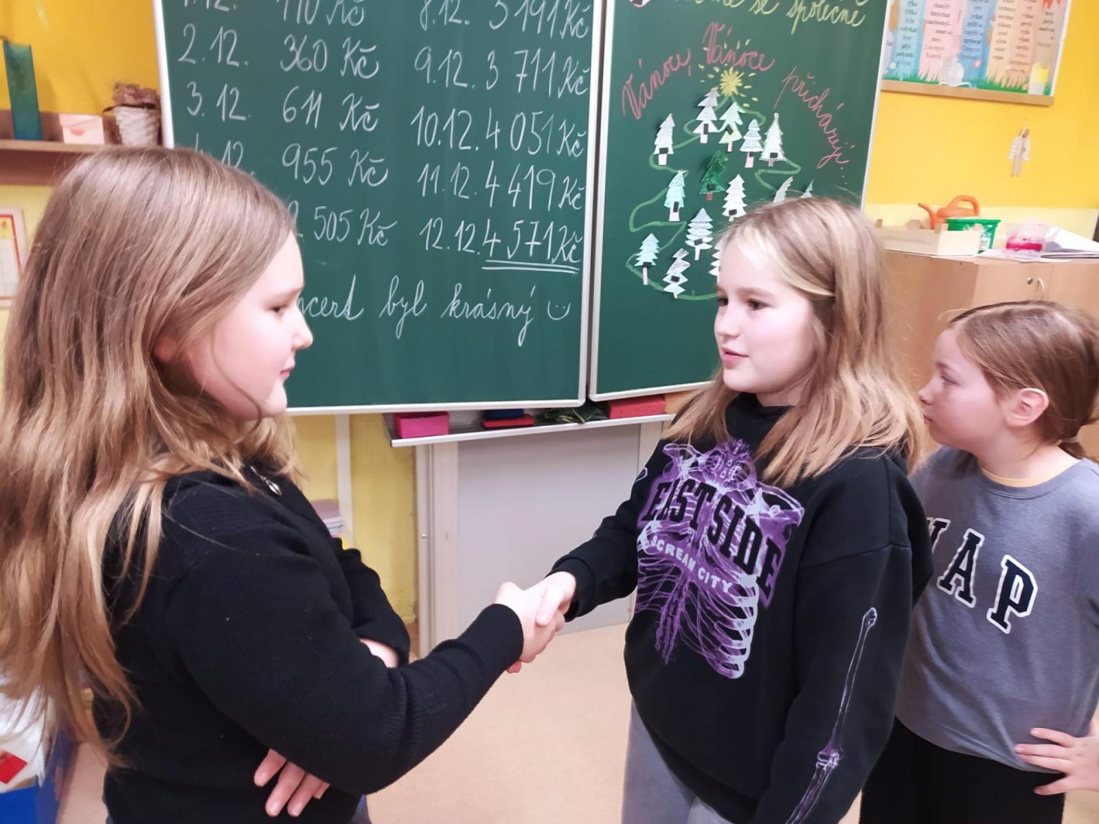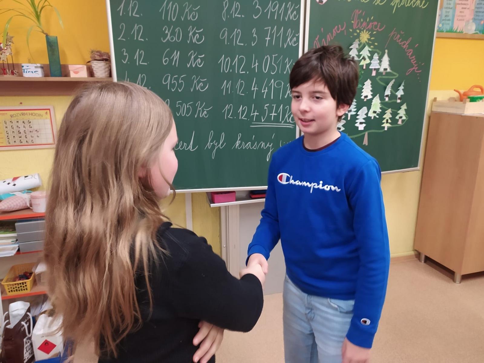 Simonka oslavila se třídou svůj svátek. Přáli jsme jí hodně štěstí, zdraví, plno kamarádů a hlavně úspěchy v házené, kterou hraje druhým rokem.