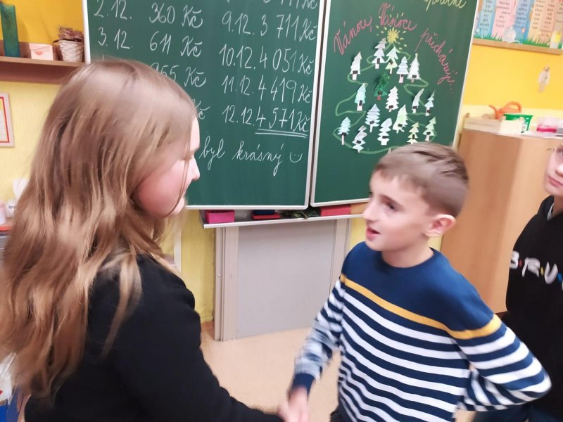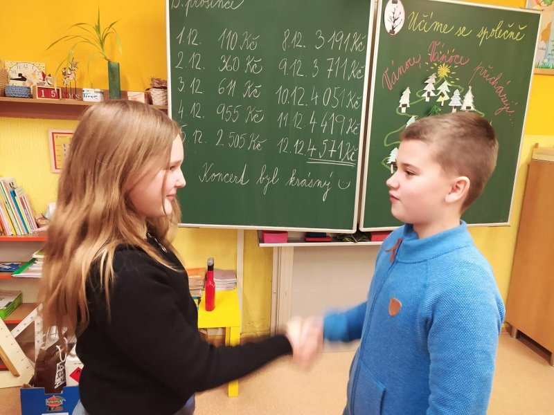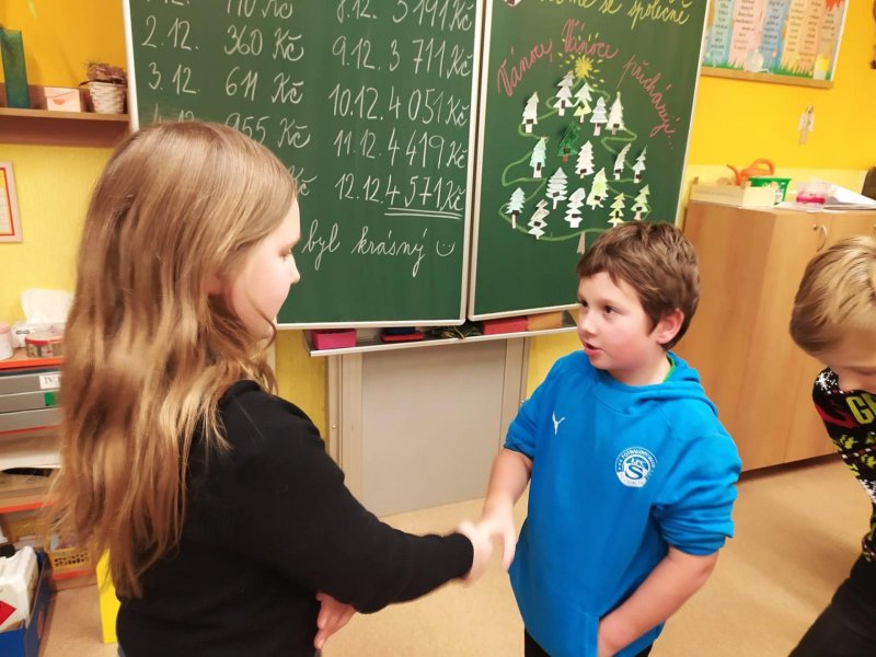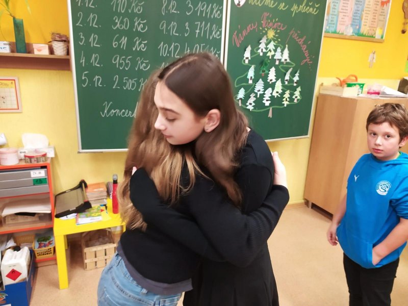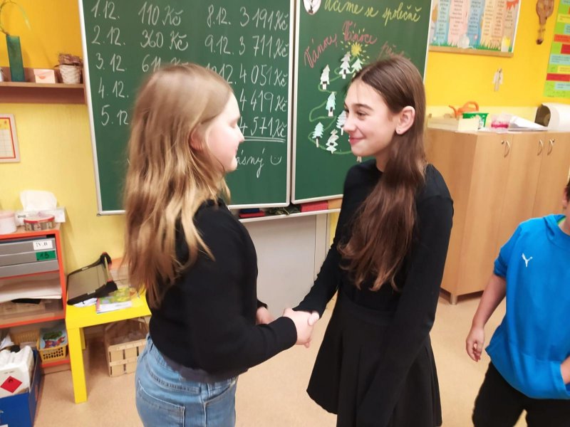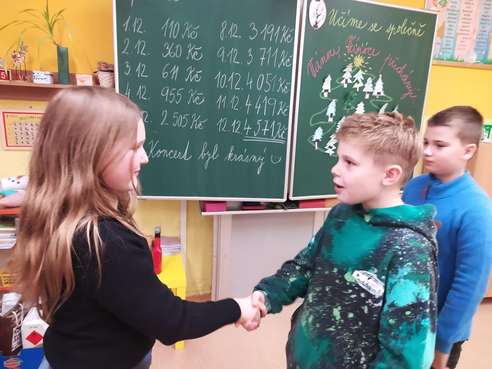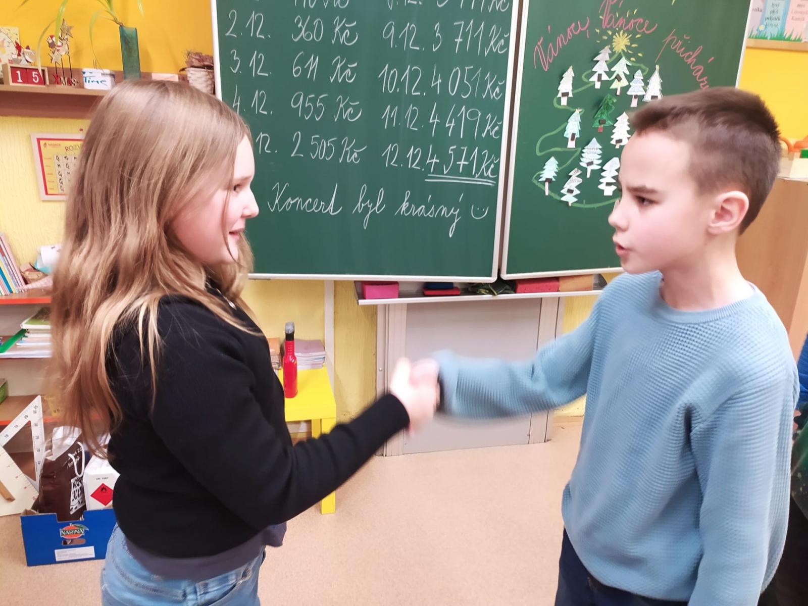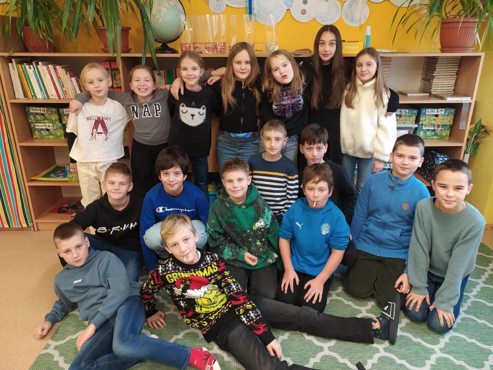 Simonka oslavila se třídou svůj svátek. Přáli jsme jí hodně štěstí, zdraví, plno kamarádů a hlavně úspěchy v házené, kterou hraje druhým rokem.