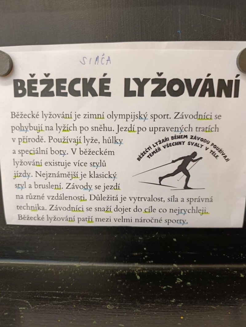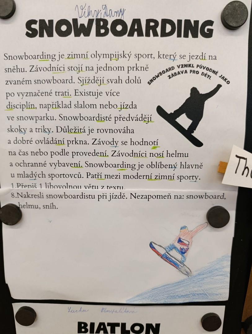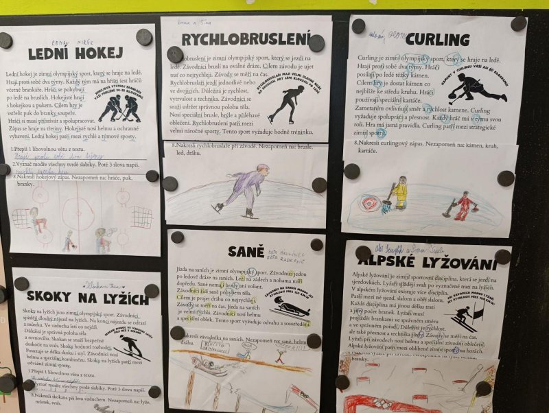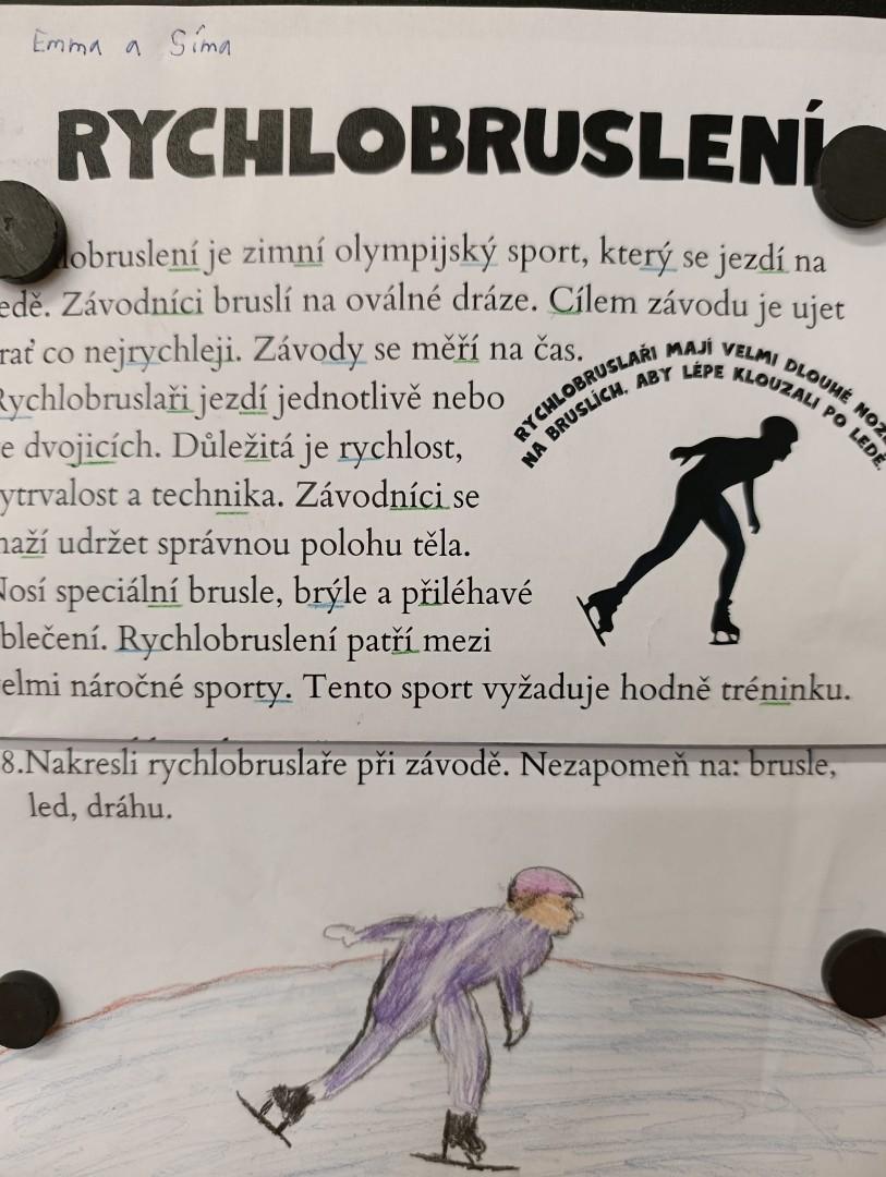Zde jsou k nahlédnutí výstupy naší skupinové práce. Můžete si přečíst nebo jenom podle obrázků poznat daný zimní olympijský sport.