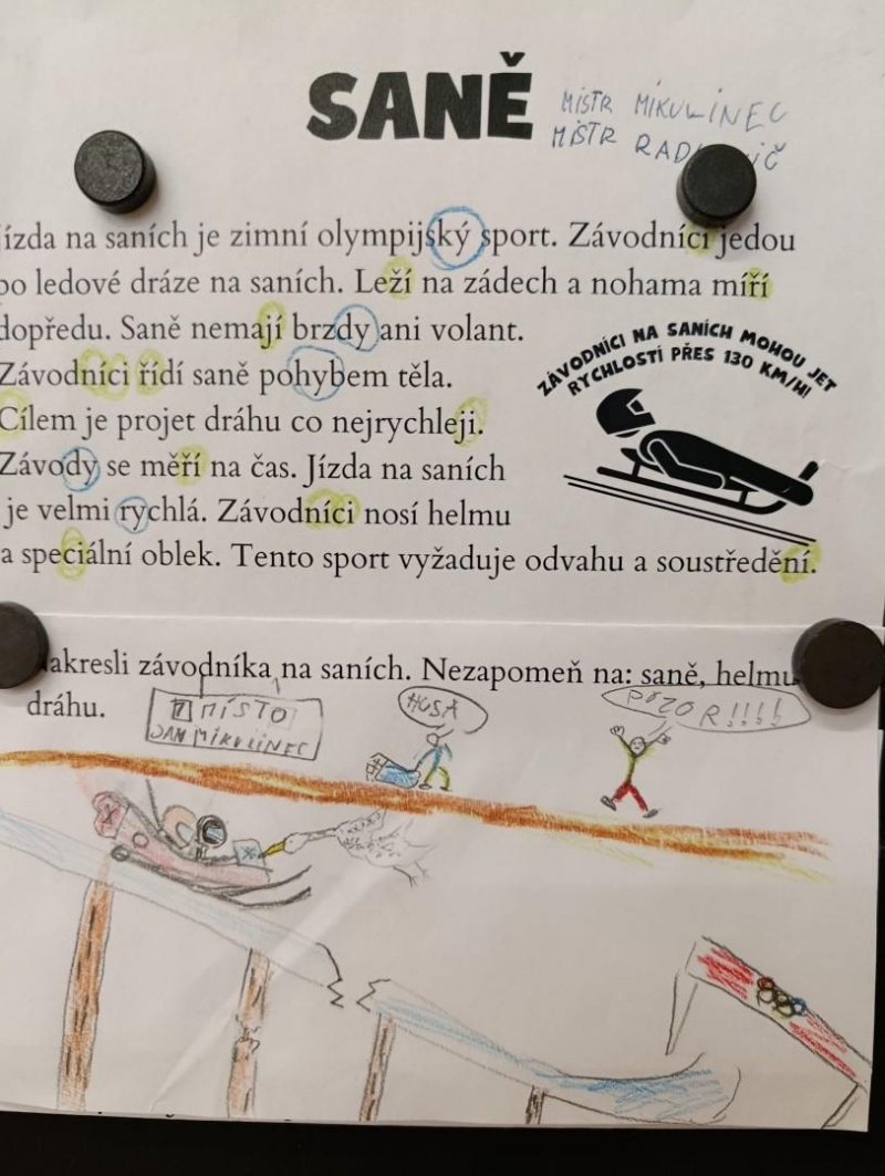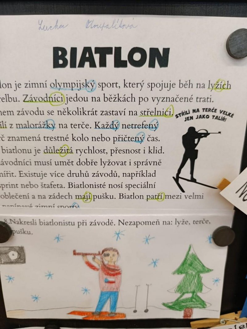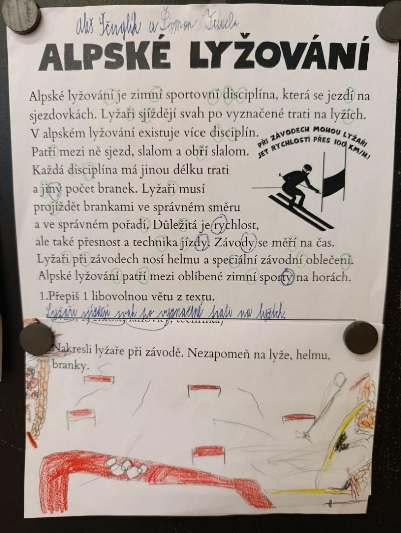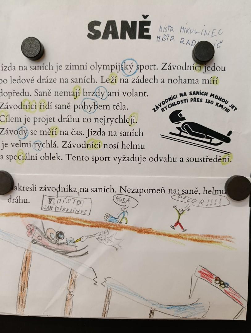 Zde jsou k nahlédnutí výstupy naší skupinové práce. Můžete si přečíst nebo jenom podle obrázků poznat daný zimní olympijský sport.