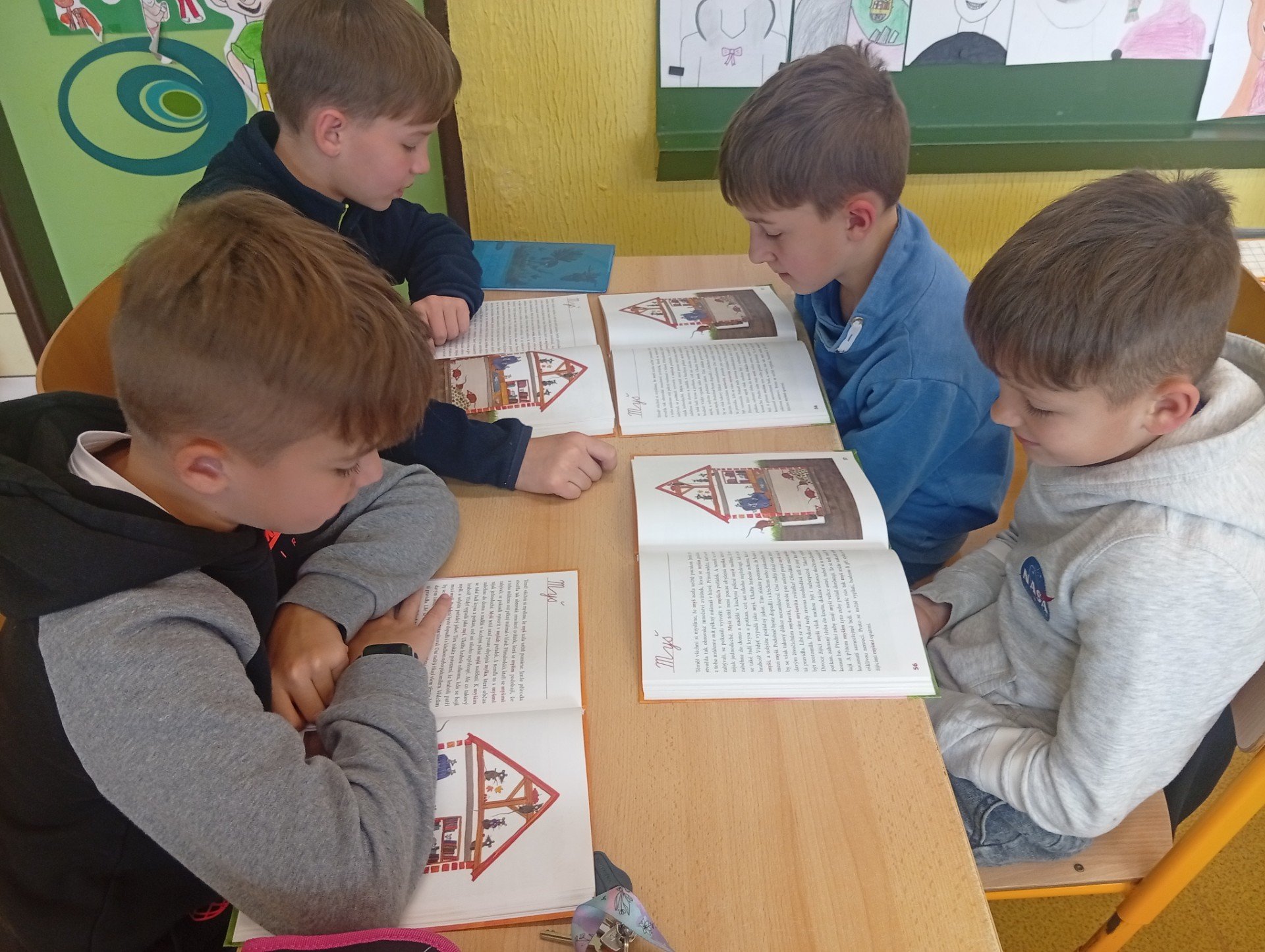 Tento týden jsme četli ve skupinkách a děti si po přečtení textu vytvořily ze získaných informací výpis. Někdo čte raději sám, jiný s celou třídou, ale některým vyhovovalo i takové skupinové čtení. Změna je život:)