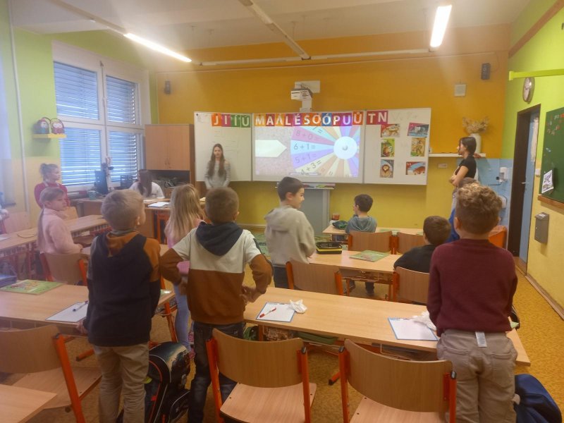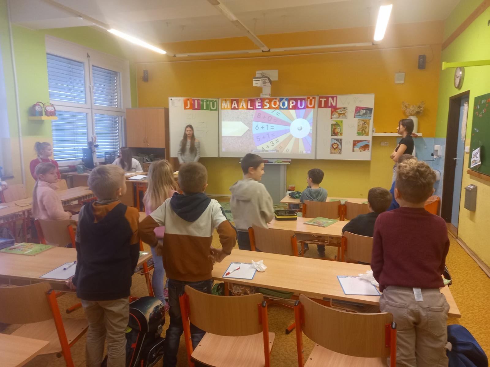 Děvčata z 9.A nám připravila matematiku plnou her. A rozdávalo se i vysvědčení.