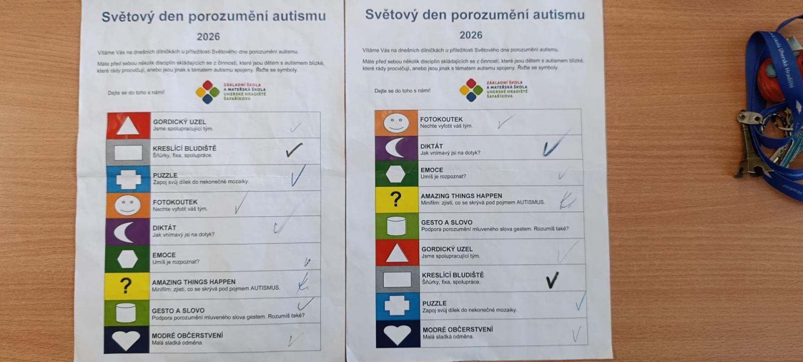 2. dubna se slaví Světový den porozumění autismu. ZŠ a MŠ Šafaříkova pořádá každoročně zajímavou aktivitu pro žáky 4. tříd. V kině Hvězda se nejprve dozvěděli, jak vlastně autisté chápou nebo spíše nechápou svět a dění kolem nich. Mají problémy s komunikací, striktně dodržují pravidla a sebemenší porušení jim velice vadí.