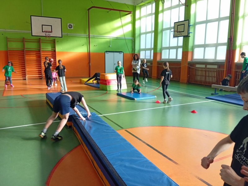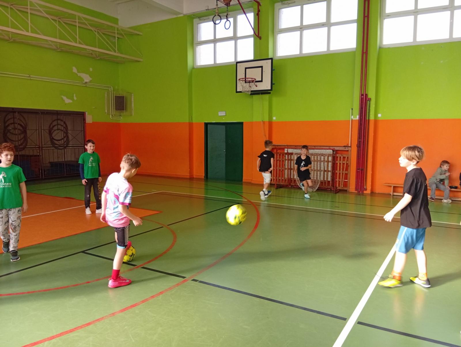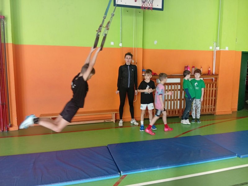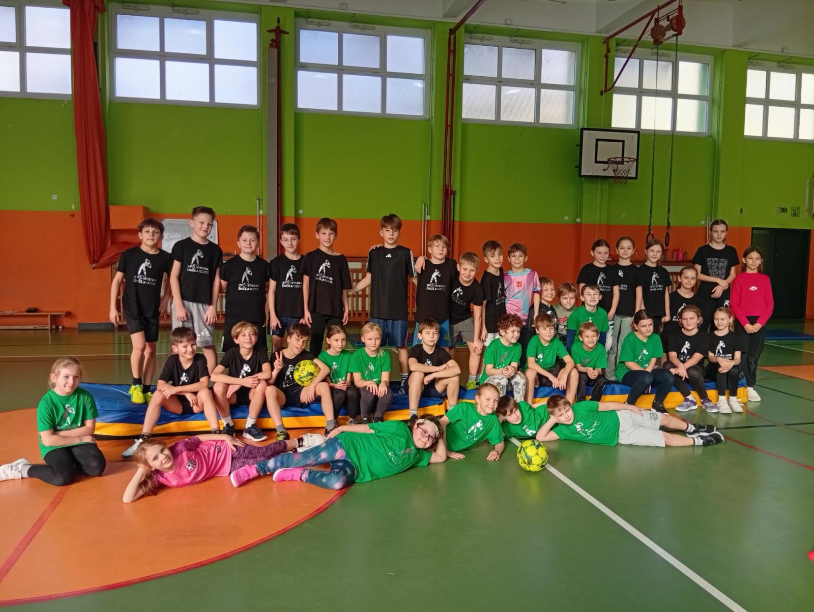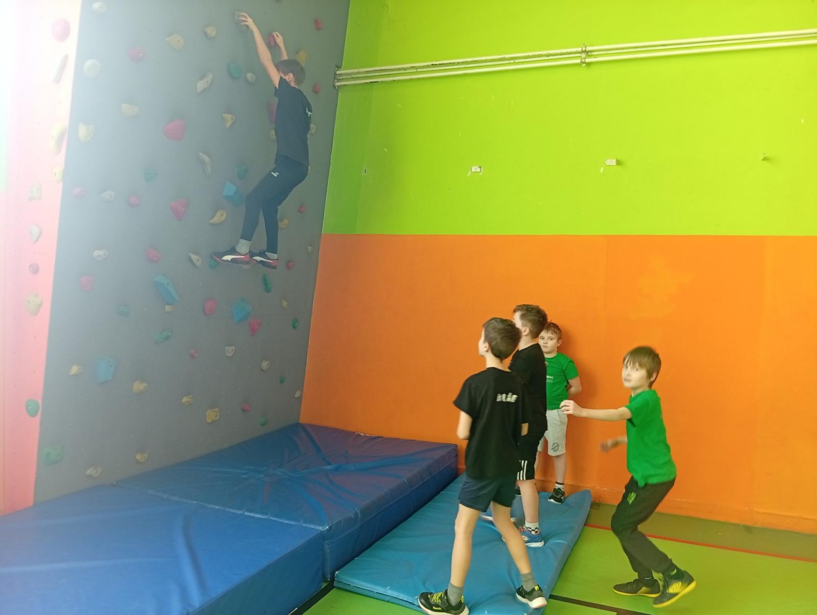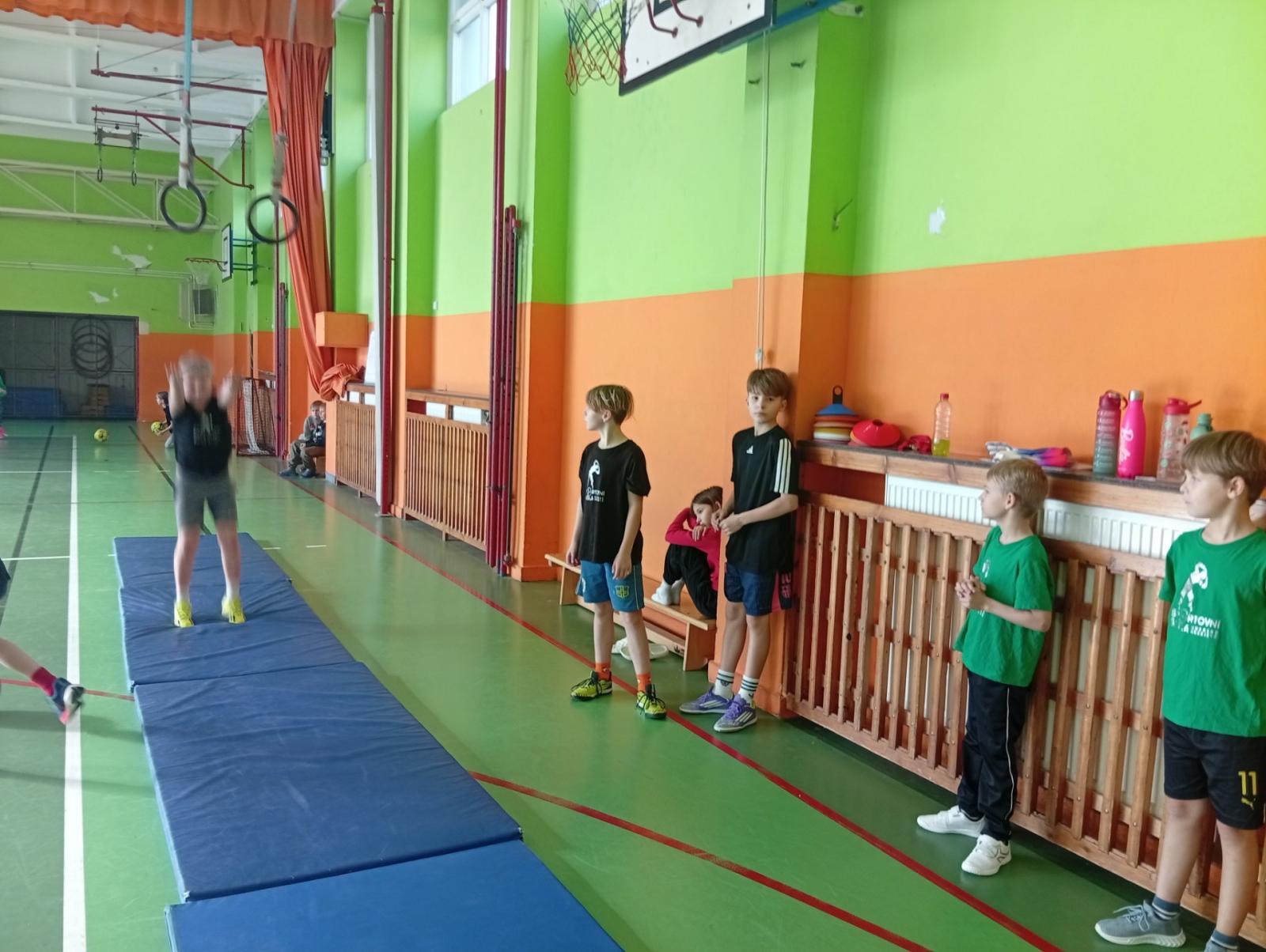 Se třídou 3. B si děti vytvořily 7 různých stanovišť a ve skupinách plnily jednotlivé sportovní disciplíny. Čtvrťáci pomáhali třeťákům, vzájemně spolupracovali a všichni si to užili. Zejména na kruzích a lezecké stěně. Nakonec si každá třída zvlášť ještě zahrála rychlostní hru Dohoníš míč? a pak už jsme museli uvolnit tělocvičnu dalším třídám:)