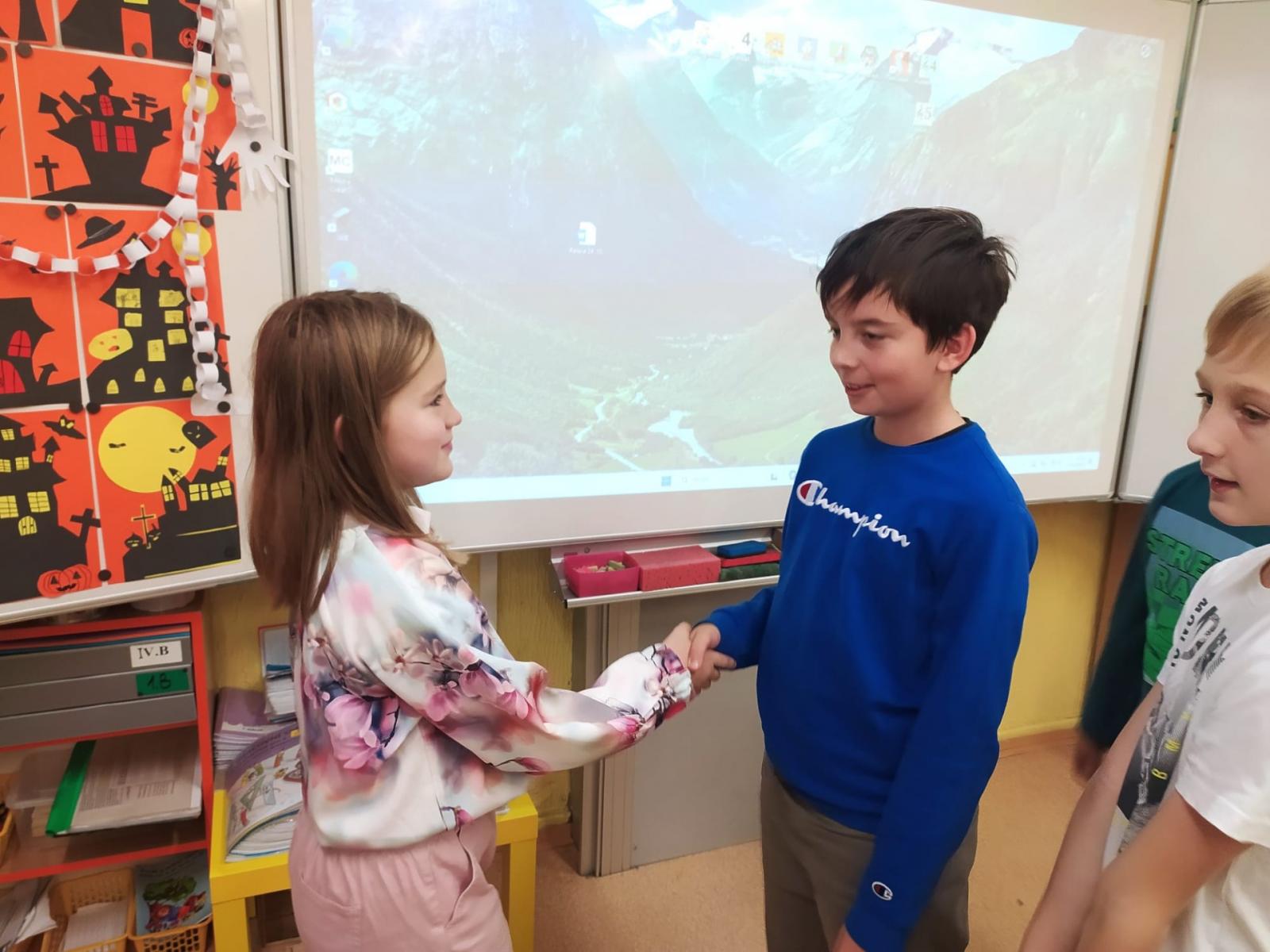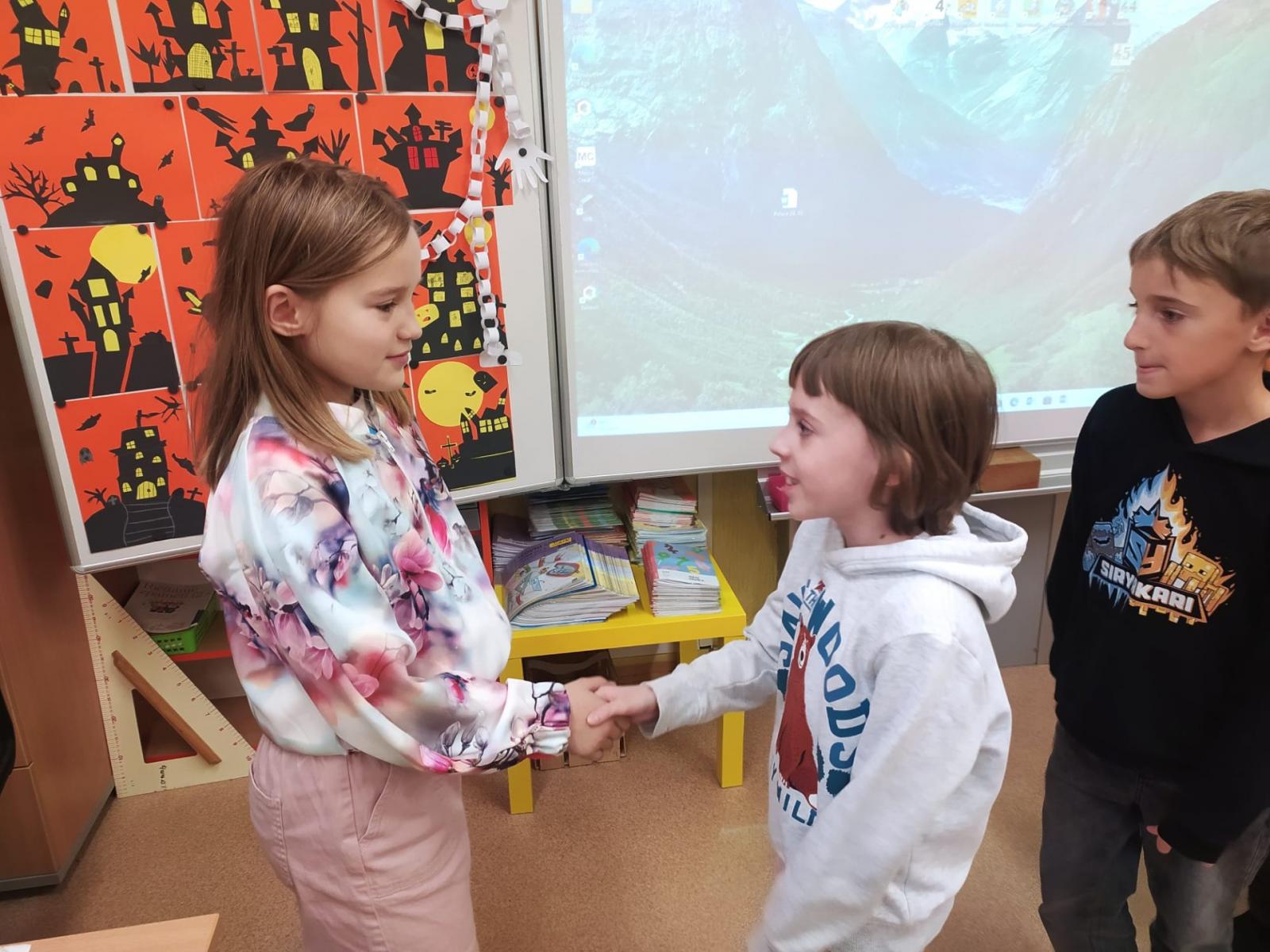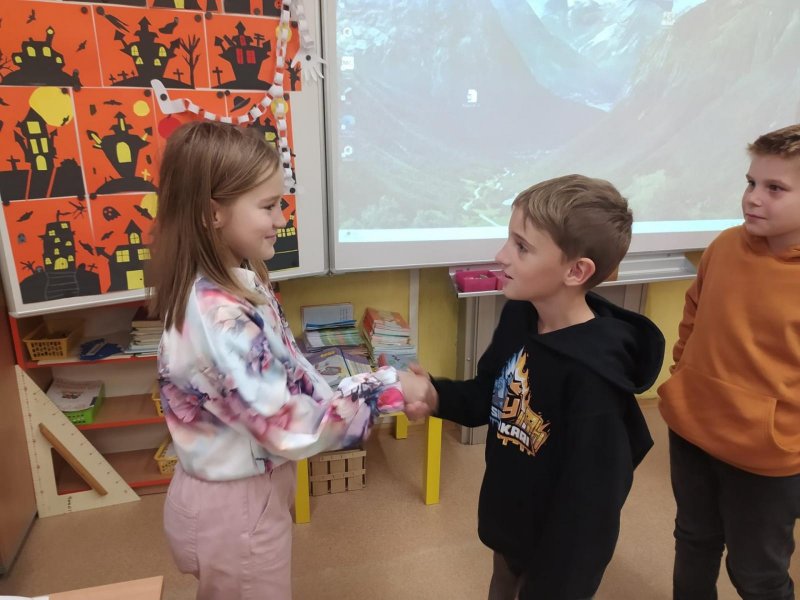 Dnes jsme přáli naší Theušce k svátku. Všichni kamarádi ze třídy popřáli všechno nejlepší, úspěchy ve škole a také hodně dobrých kamarádů. Děkujeme za sladké potěšení.