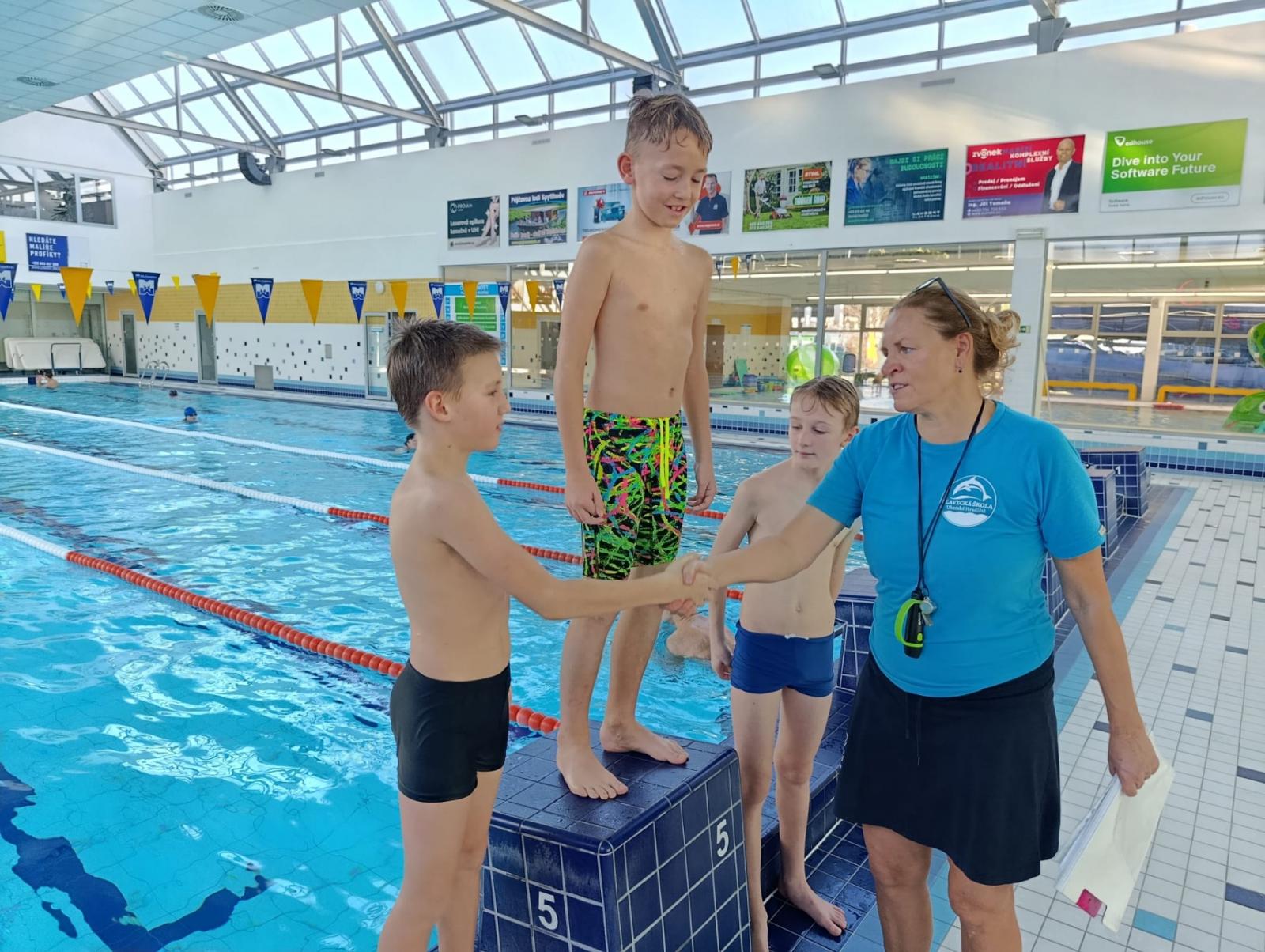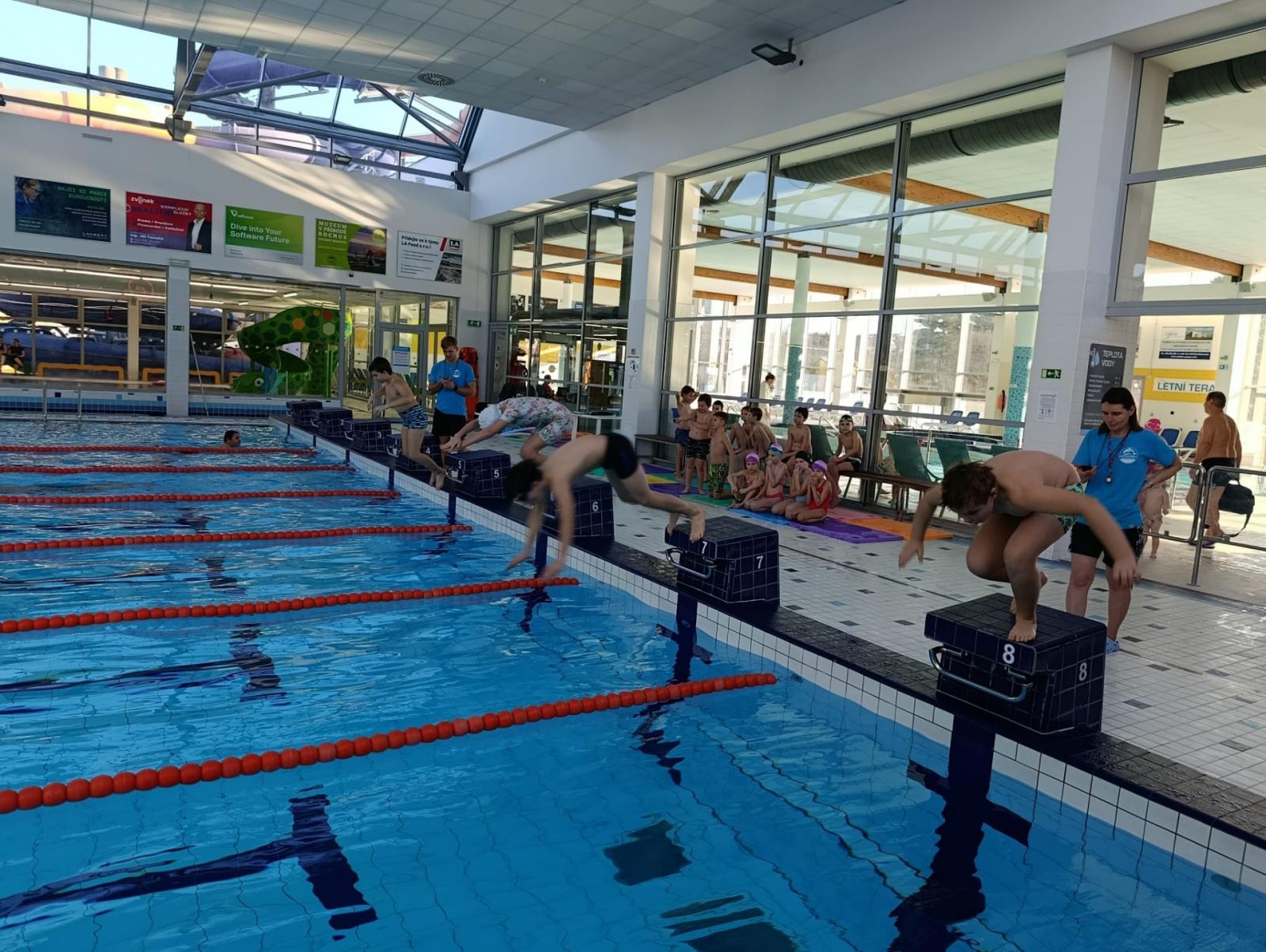 Každoroční plavecké závody proběhly dnes, ale s malým překvapením. Jako čtvrťáci jsme museli zaplavat celkem dvě délky, takže celých 50 metrů. Výhodou bylo, že jsme si mohli vybrat plavecký způsob. Kdo umí kraula, vyhrává.