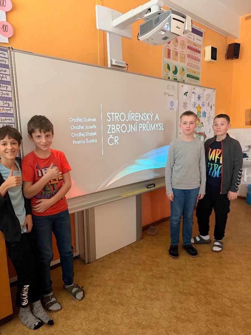 Žáci se s nadšením pustili do tvorby prezentací na téma průmysl České republiky. Každá skupinka zpracovala své odvětví originálně. V prezentacích se objevily zajímavé informace, ale také animace a obrázky. Žáci tak prokázali schopnost vyhledávat informace a zároveň velmi dobře pracovat s moderními technologiemi.