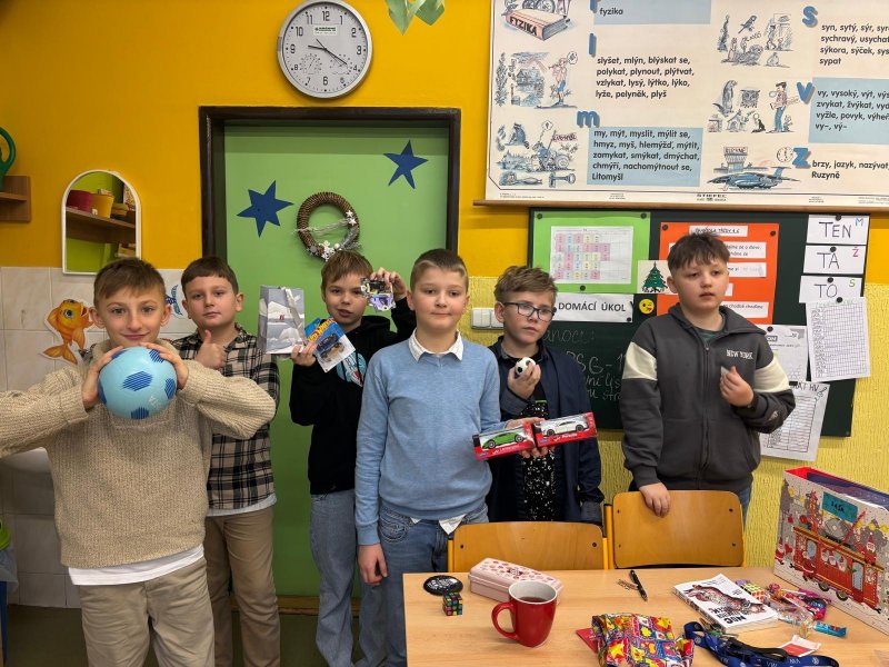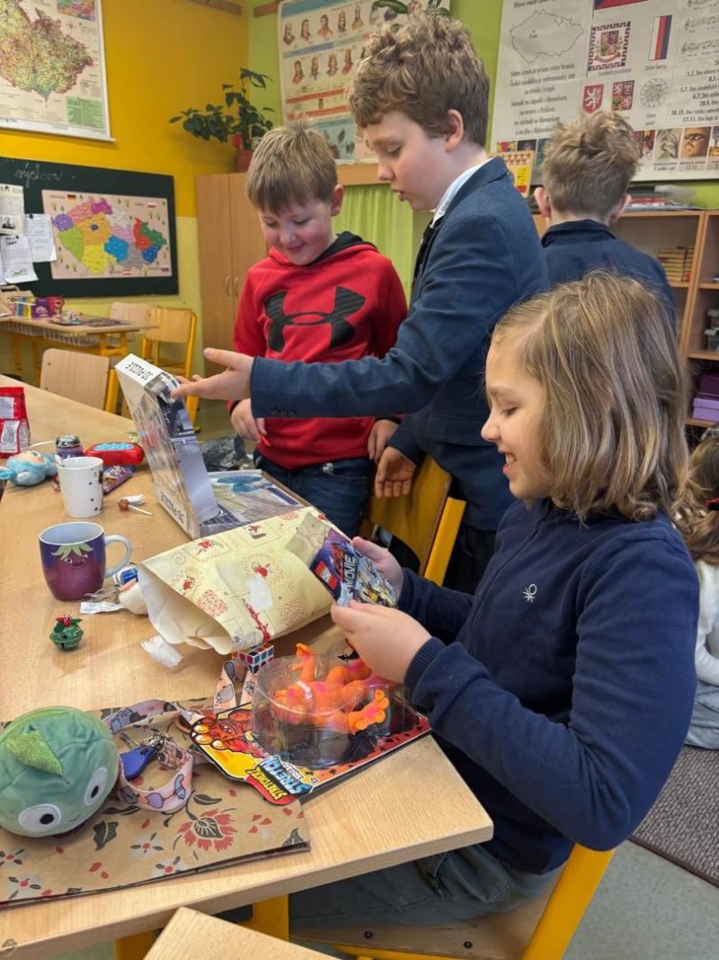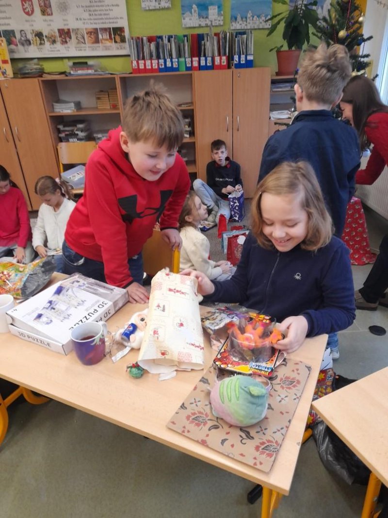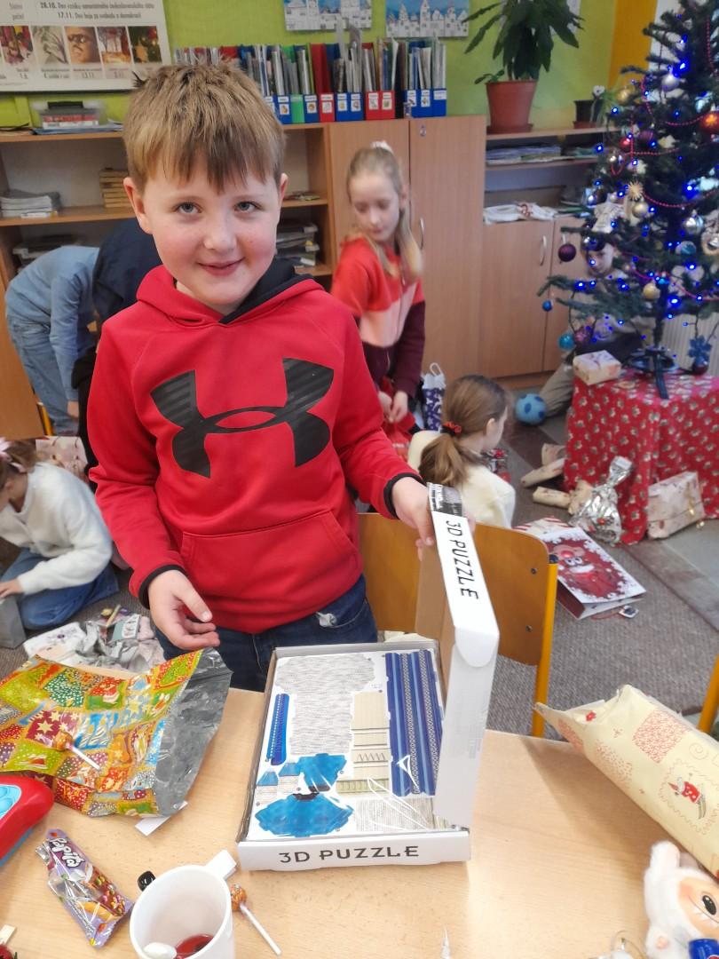 V pátek 19.prosince nás ve třídě přivítala vůně cukroví a čaje, Místo učení jsme si zazpívali, rozdali dárečky a pak se přesunuli na chodbu k vyhodnocení soutěže o nej sněhuláka. Na závěr jsme si společně zakoledovali a poslechli vinšování od pana ředitele.