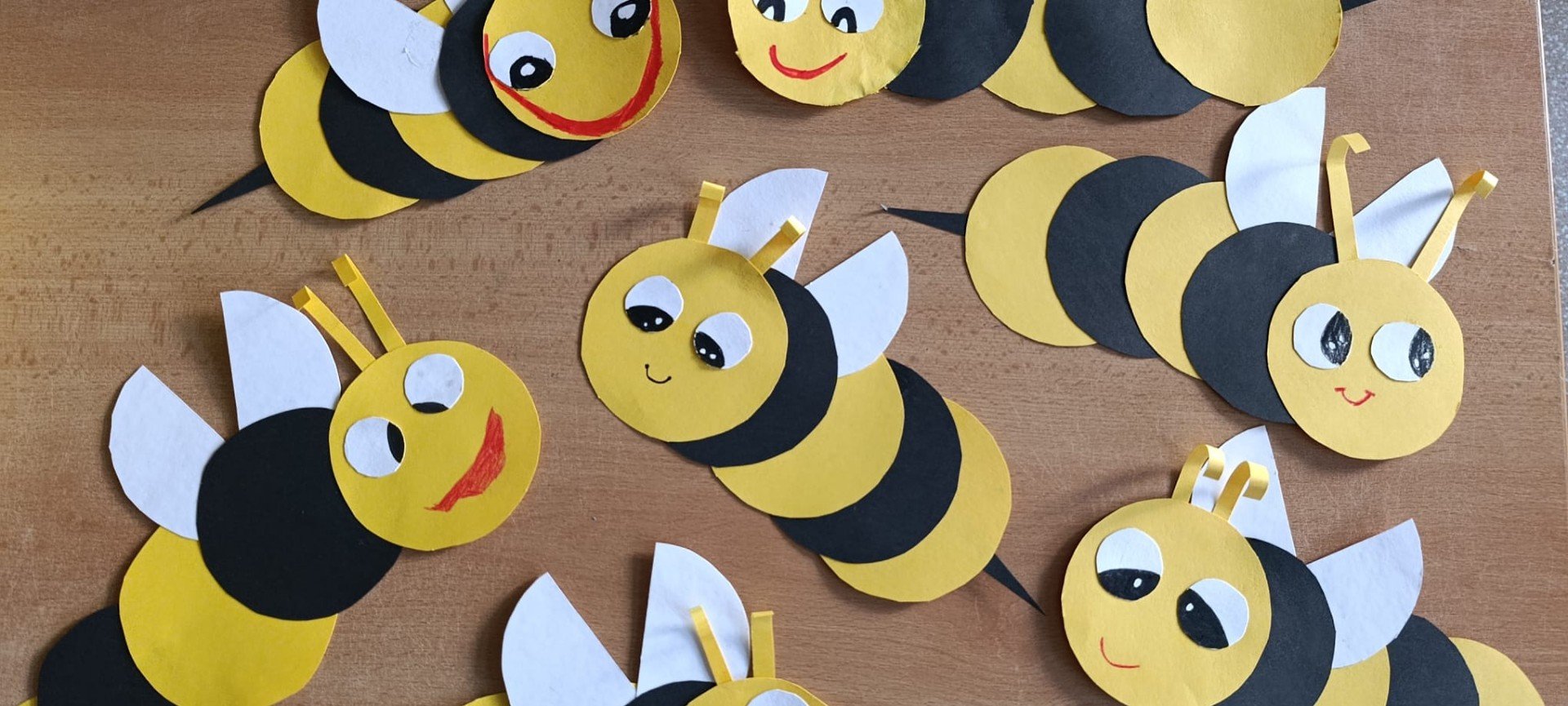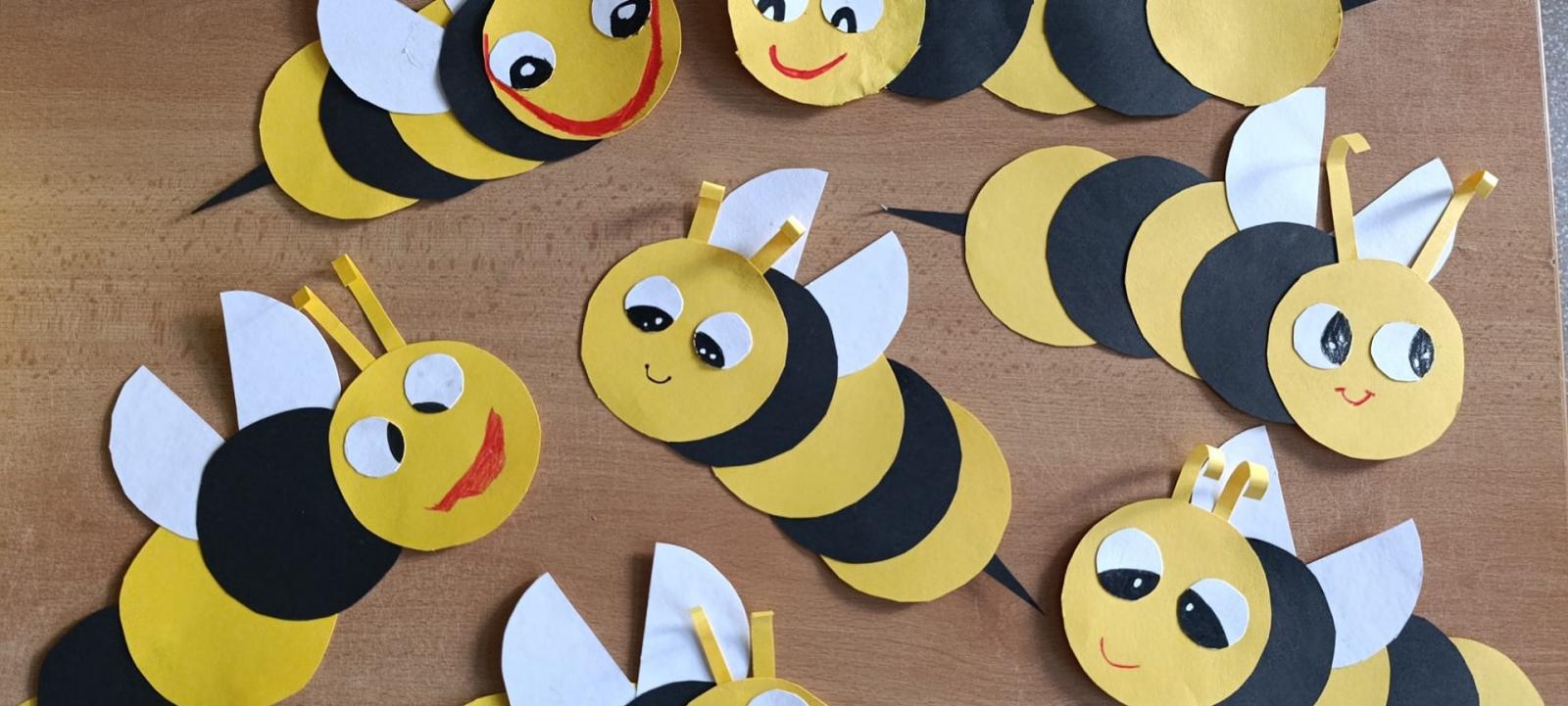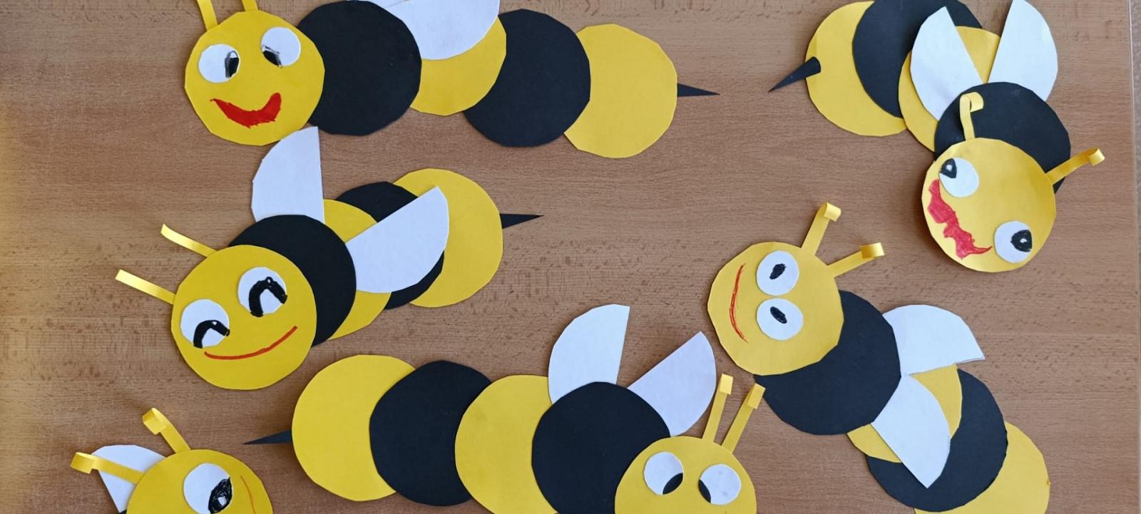 Nastal čas vyměnit zimní výzdobu za jarní. Tak jsme dnes zahájili výrobu papírových včeliček, aby měly dost času na opylování rozkvetlých stromů. Ty sice ještě nekvetou, ale už se to blíží.