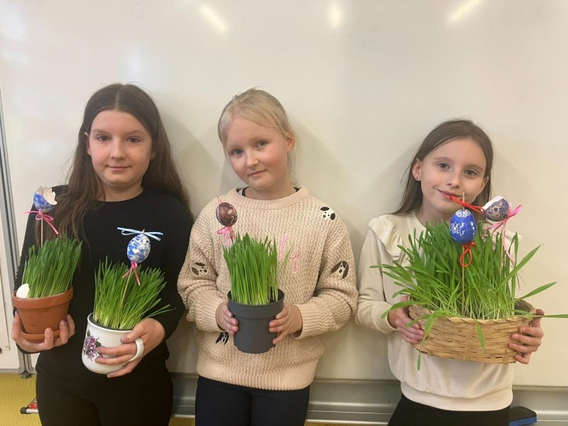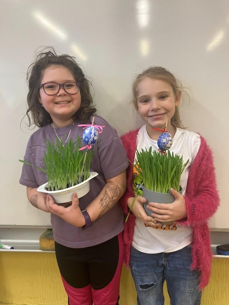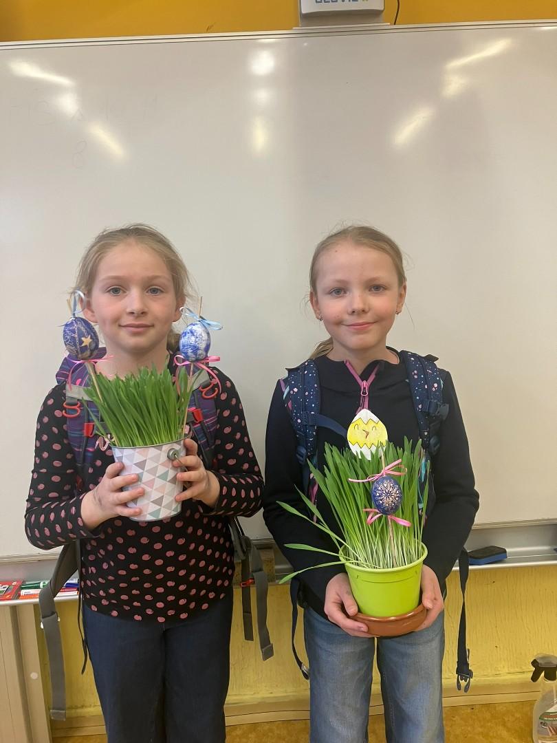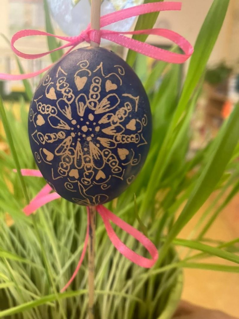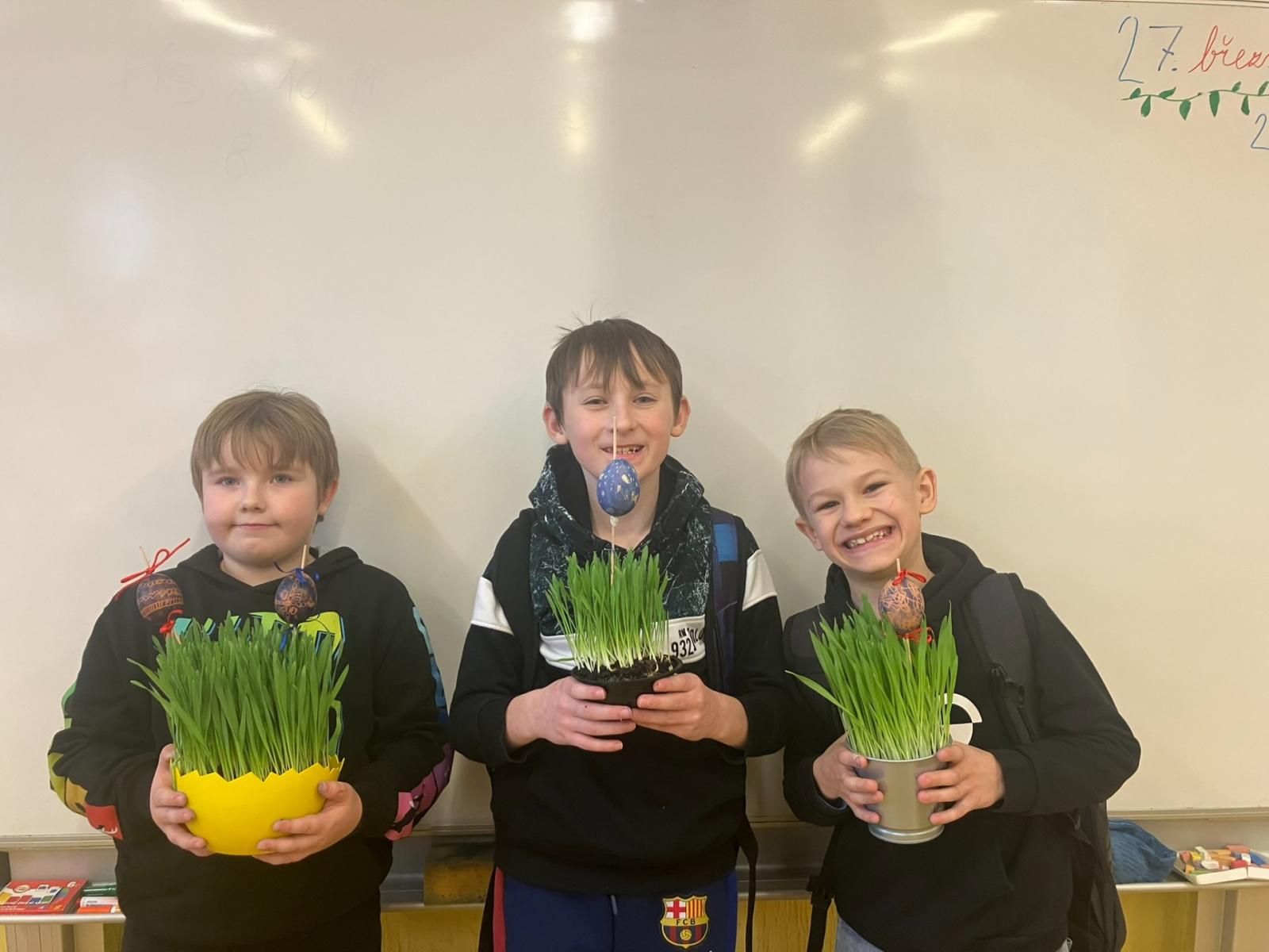 Na letošní svátky jara jsme si vytvořili aranžmá z vysetého osení a kraslic. K výzdobě vajíček jsme se inspirovali u lidových maléreček. Zaujala nás přesnost a preciznost vyškrabávaných motivů. I my jsme se položili do jemné práce, ale mnozí z nás bojovali se zavázáním zdobných mašliček. Všem přejeme veselé Velikonoce !