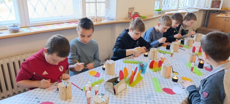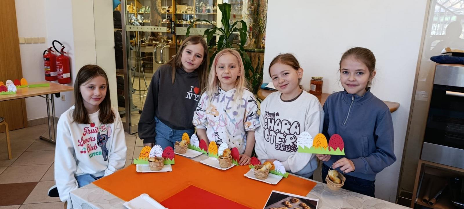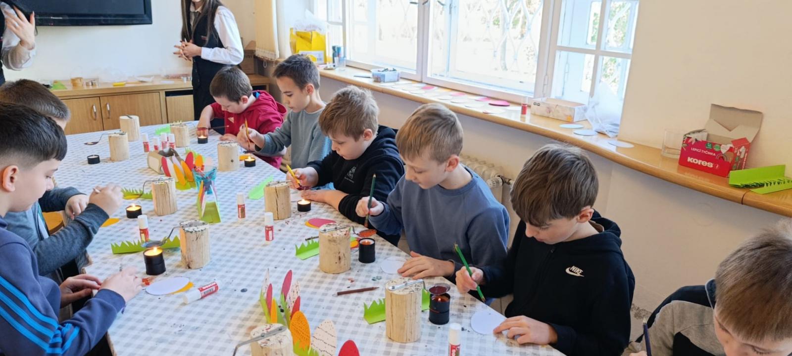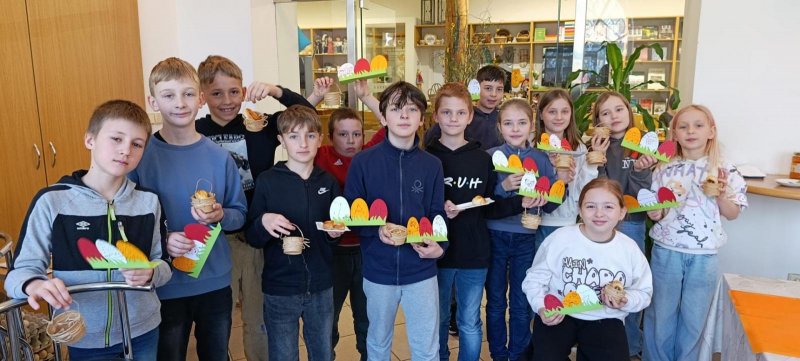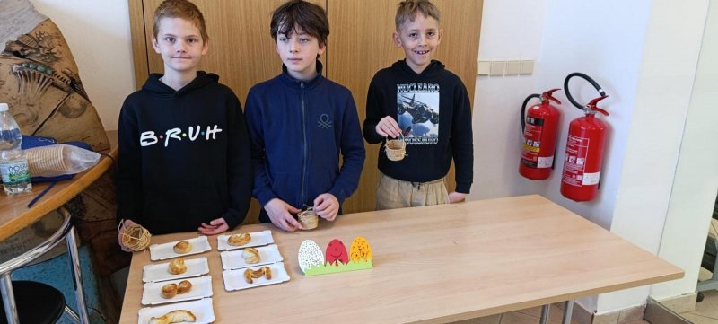 Lidové zvyky a tradice jsme dnes ctili na návštěvě Slováckého muzea. Zdobení kraslic, i když jen papírových, pletení pomlázky, pečení jidášů, výroba lýkových košíčků, to vše jsme si mohli vyzkoušet. Také jsme v přímém přenosu viděli malování novoveských kraslic a výrobu ozdob z kukuřičného šustí.