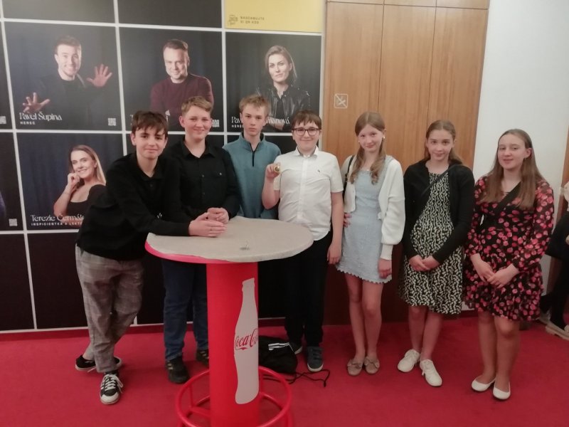 Ve středu 14. května jsme naposledy v letošní sezoně navštívili představení Slováckého divadla. Pod názvem Volný večer se tentokrát skrývala improvizace. Po krátkém úvodu, který nás zasvětil do pravidel této divadelní metody, rozehráli tři herci – improvizátoři – své desetiminutové scénky, jejichž náměty zadali sami diváci. Nechyběla ani náhodně vybraná porota (jedním z porotců byl i zástupce 7.C Toník Můčka) a „kolotočáři“, kteří na kole štěstí a neštěstí losovali téma a také podmínku, kterou musel jeden z herců vždy dodržet. Náměty k improvizaci byly zajímavé, nejvíce asi „Návštěva na gynekologii“ a „Shořela nám oblíbená hospůdka“. Večer se nesl v uvolněné, smíchem nabité atmosféře a herci byli jako vždy na závěr odměněni bouřlivým potleskem. Už teď se těšíme na příští divadelní sezonu. /CHL/