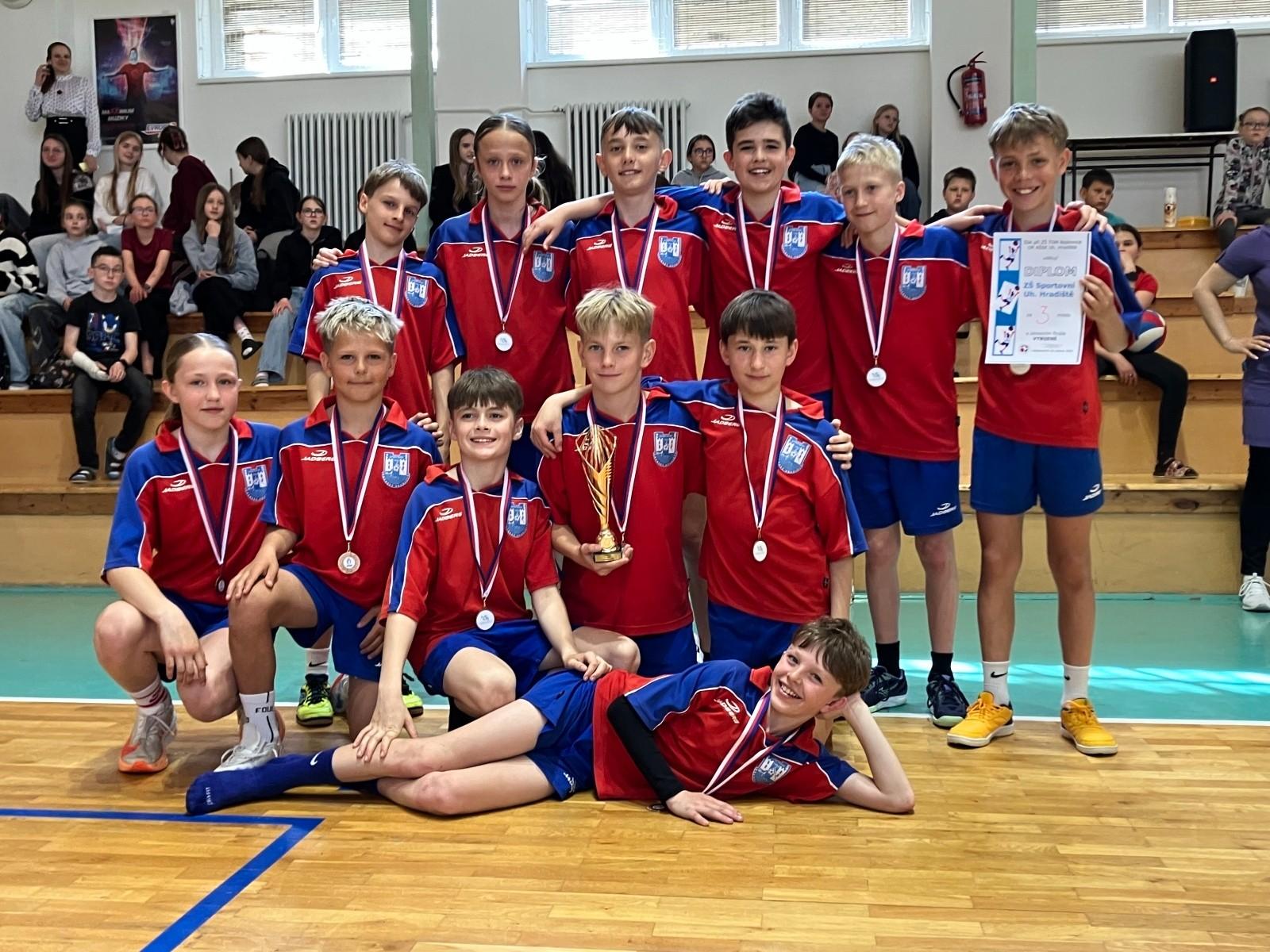 Okresní kolo turnaje ve vybíjené 4. – 5. roč. pořádá každoročně ZŠ Bojkovice a naši žáci letos opět nechyběli. Přihlásilo se osm družstev, takže se hrálo ve dvou skupinách. Porazili jsme ZŠ Na Výsluní Uh. Brod 11:3; ZŠ Pitín 10:1, ale místní borci z Bojkovic nás porazili 9:6. V semifinále jsme tedy narazili na vítěze 2. skupiny ZŠ Újezdec. Taky tento tým byl nad naše síly, prohráli jsme 11:6. V souboji o 3. místo jsme přehráli ZŠ Mariánské nám. Uh. Brod 11:3 a přivezli si tak pohár a bronzové medaile. Vítězem turnaje se stala ZŠ Újezdec, na 2. místě se umístila ZŠ Bojkovice.