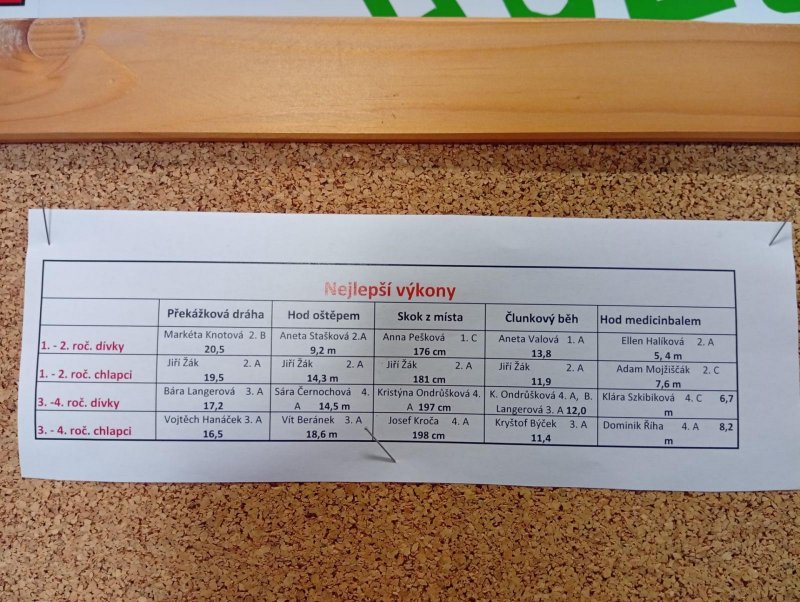 V pátek jsme se dozvěděli, jak dopadlo naše atletické zápolení. I přes velkou snahu jsme letos na stupně vítězů nedostali. Je pravdou, že ve vyšších ročnících už mají trochu výhodu sportovní třídy, jelikož mají každý týden celkem pět hodin tělocviku.