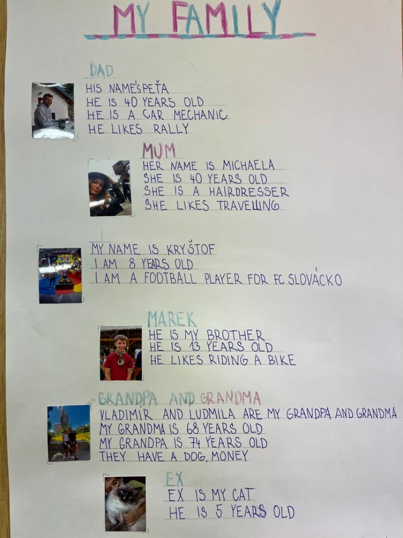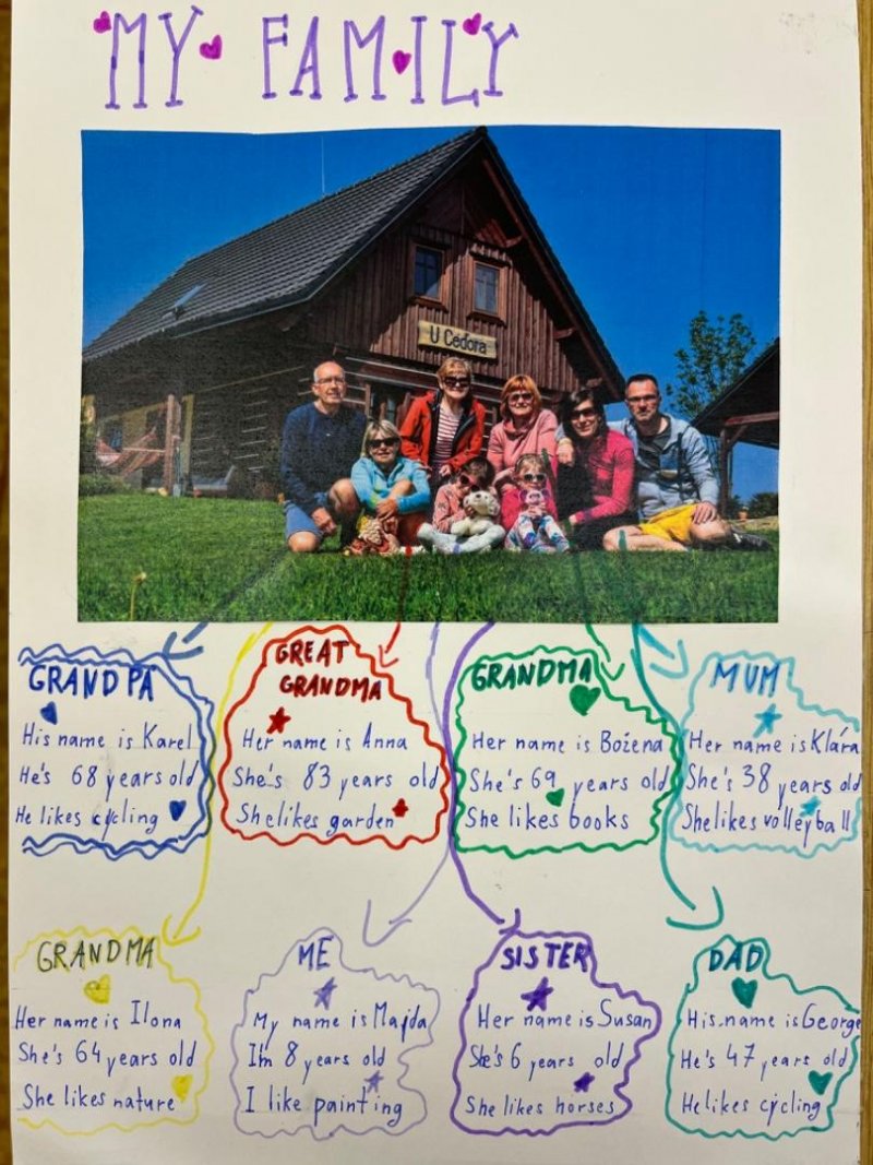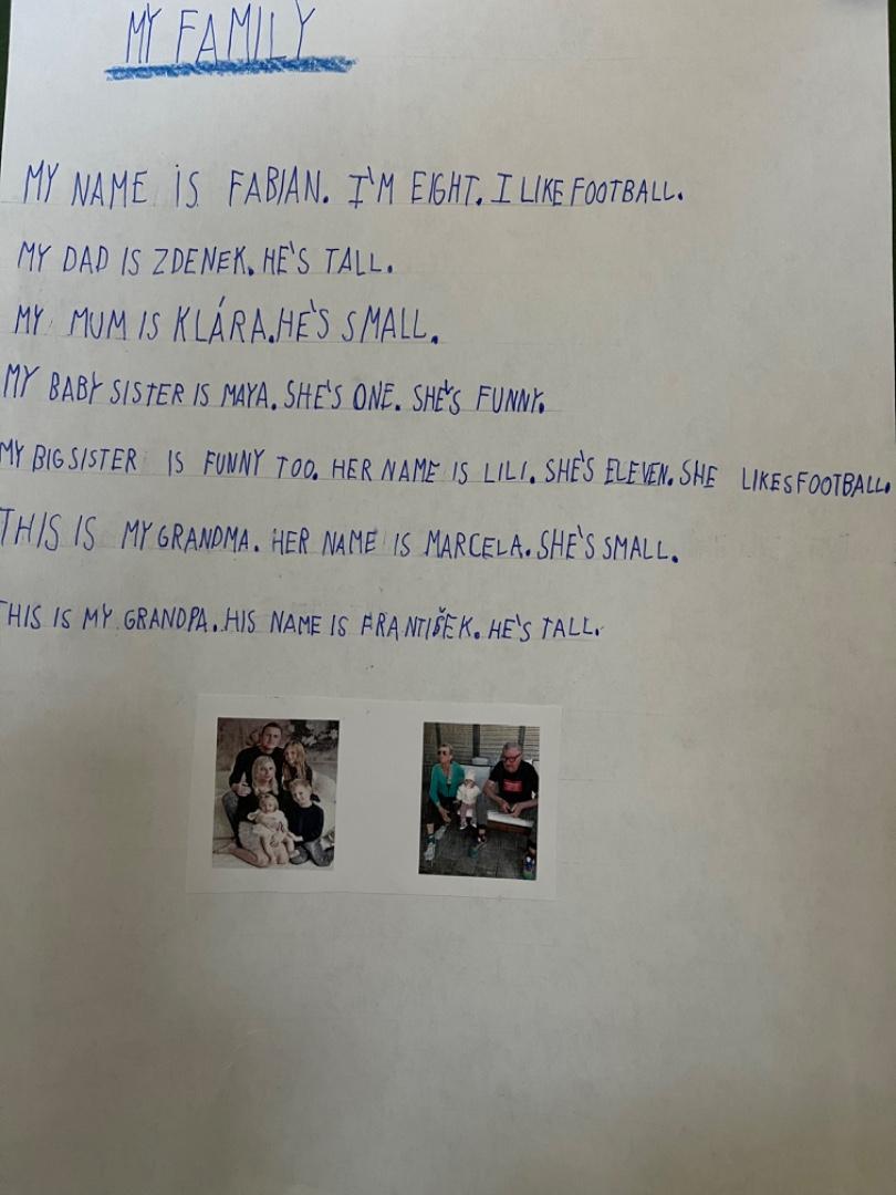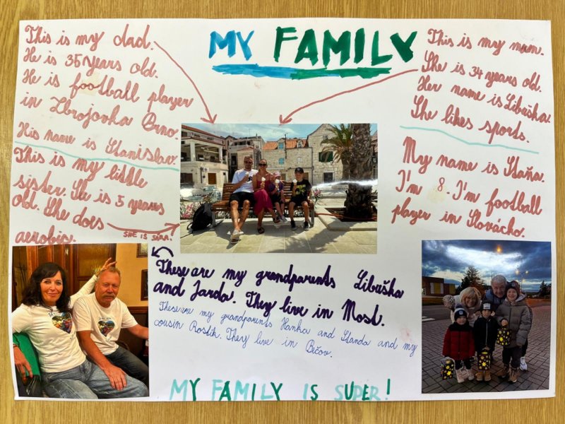 V angličtině také nezahálíme. Plníme WOCABEE, za měsíc září a říjen byli nejúspěšnější tito žáci: 1. místo Sebastian Maděra, 2. Mathias Šimek a 3. František Pavela. Ve skupině p. uč. Kahánkové jsme se věnovali projektu Family. Podívejte se v galerii, jak se nám podařili.