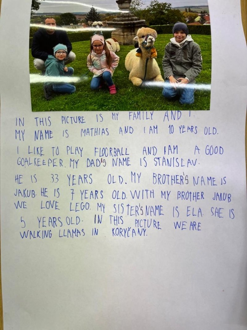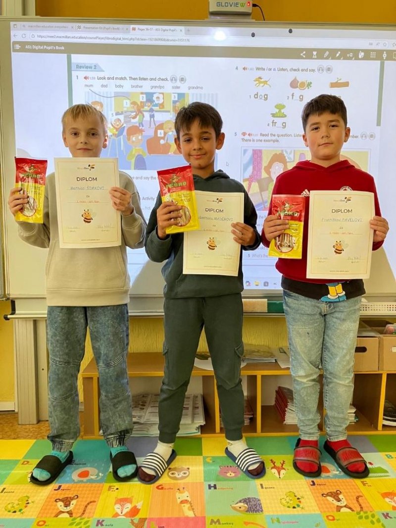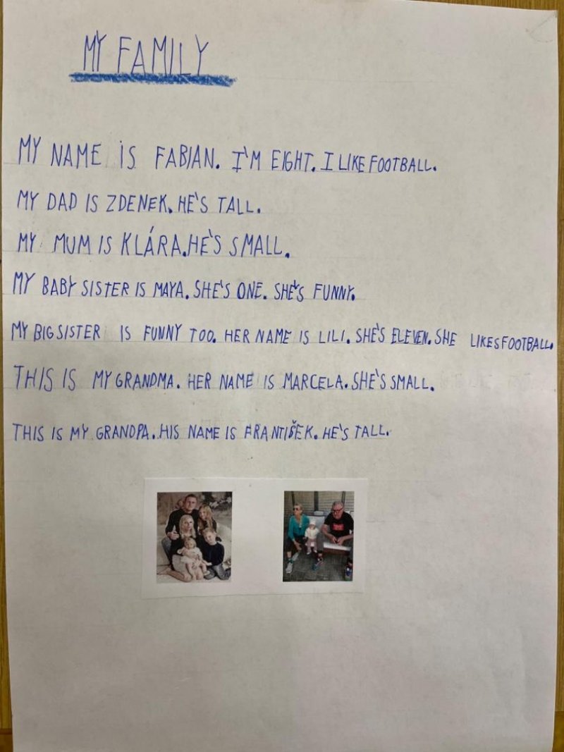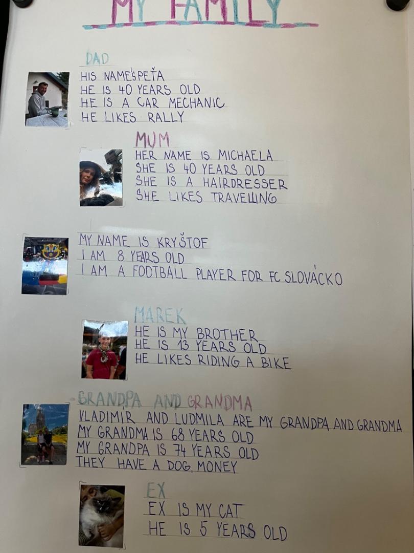 V angličtině také nezahálíme. Plníme WOCABEE, za měsíc září a říjen byli nejúspěšnější tito žáci: 1. místo Sebastian Maděra, 2. Mathias Šimek a 3. František Pavela. Ve skupině p. uč. Kahánkové jsme se věnovali projektu Family. Podívejte se v galerii, jak se nám podařili.