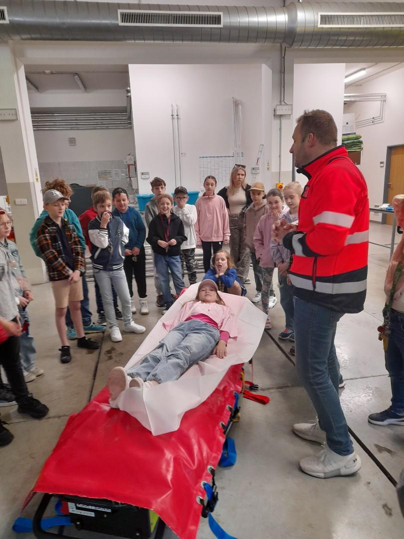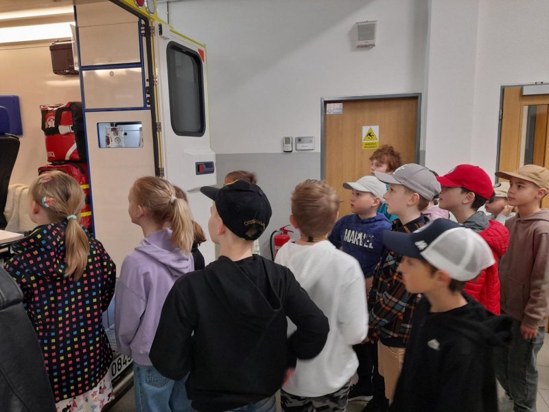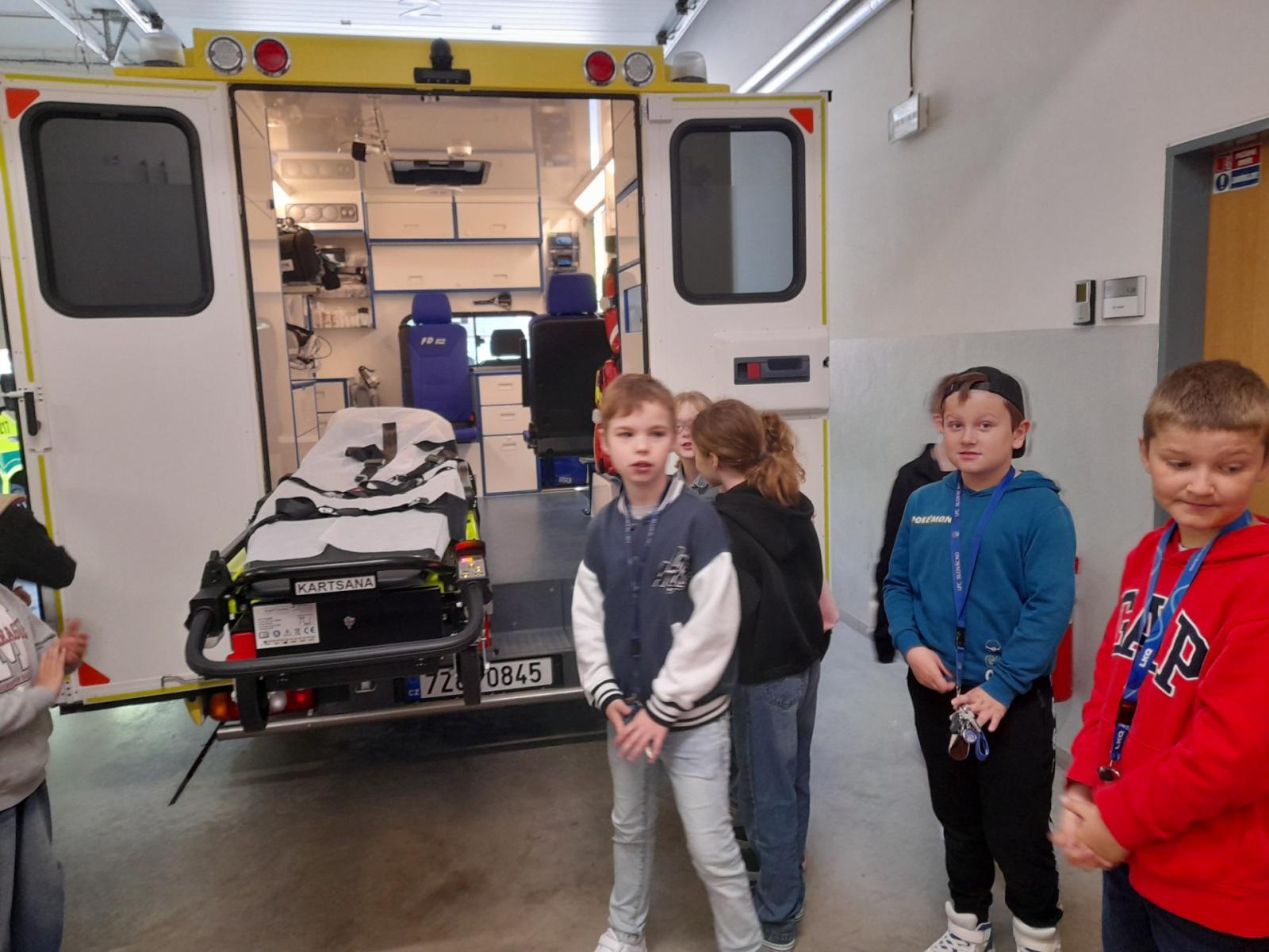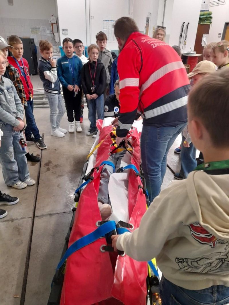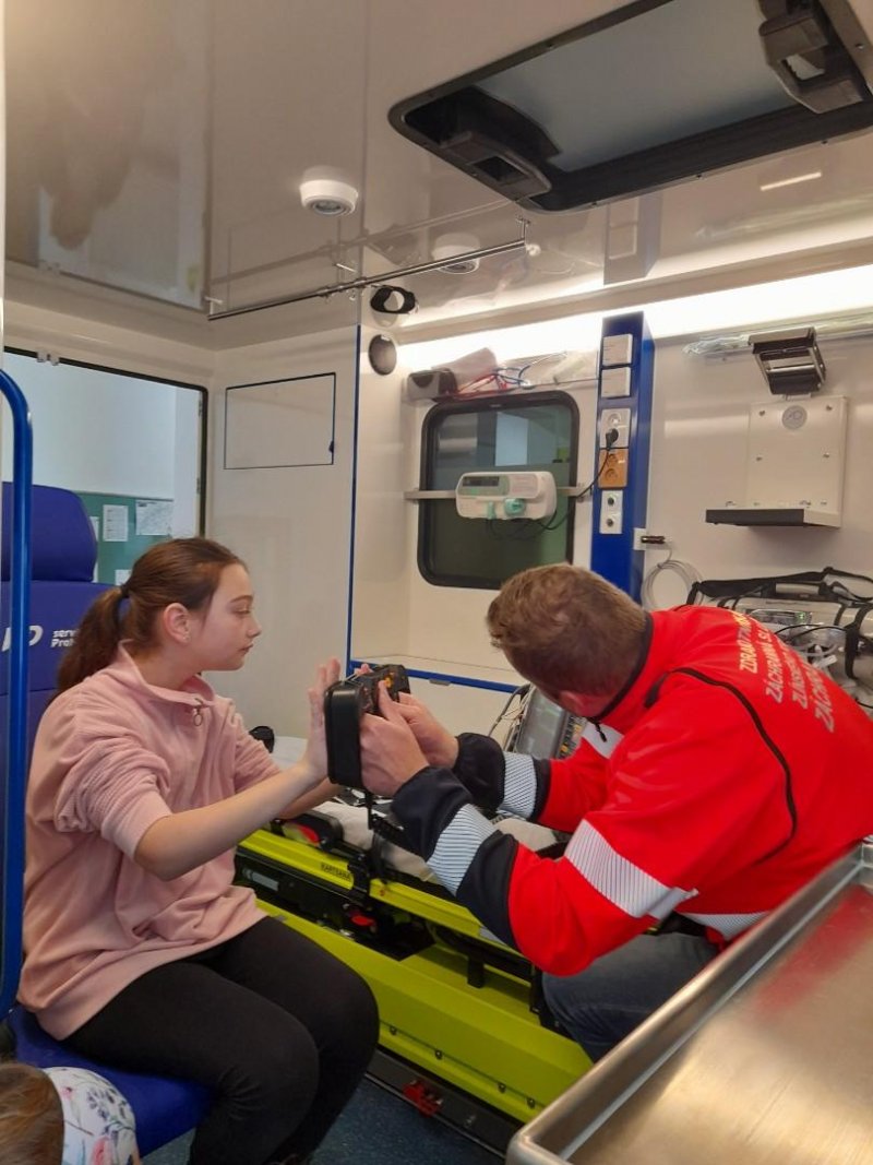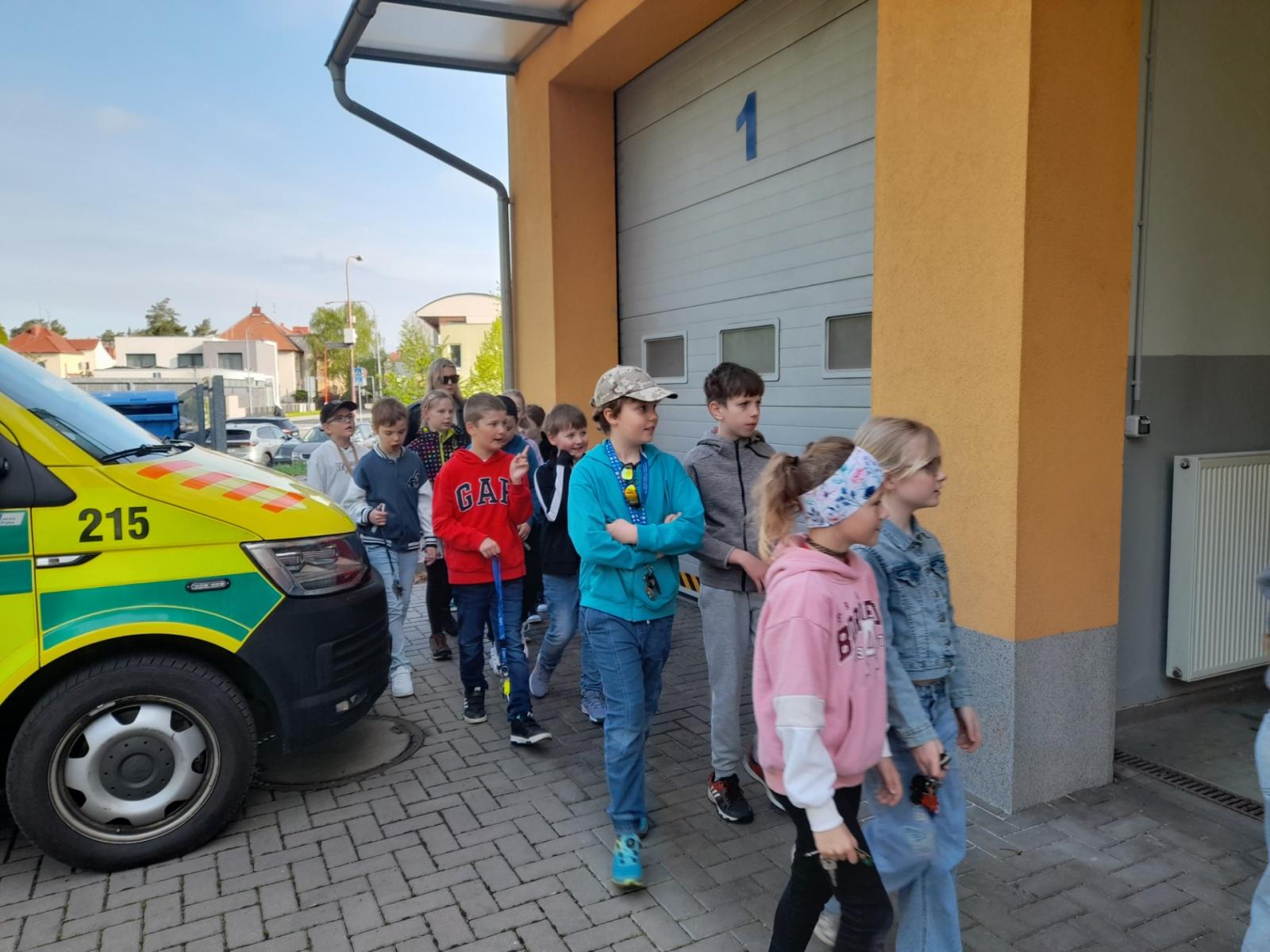 Přivítal nás milý záchranář, pan Jiří Vašica, také absolvent naší školy. Představil nám vybavení a přístroje, které zachraňují lidské životy. Sami jsme si vyzkoušeli roli pacienta, kdy nám měřil puls, EKG či nás transportoval na nosítkách.