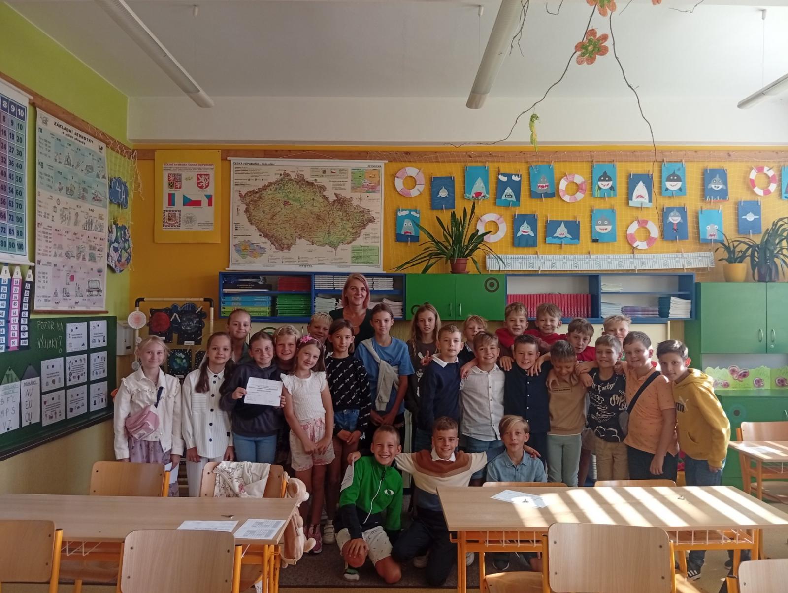 Ve třídě jsme poté přivítali naše nové spolužáky - Viliama Nechalu, a Kláru i Sáru Černochovy.