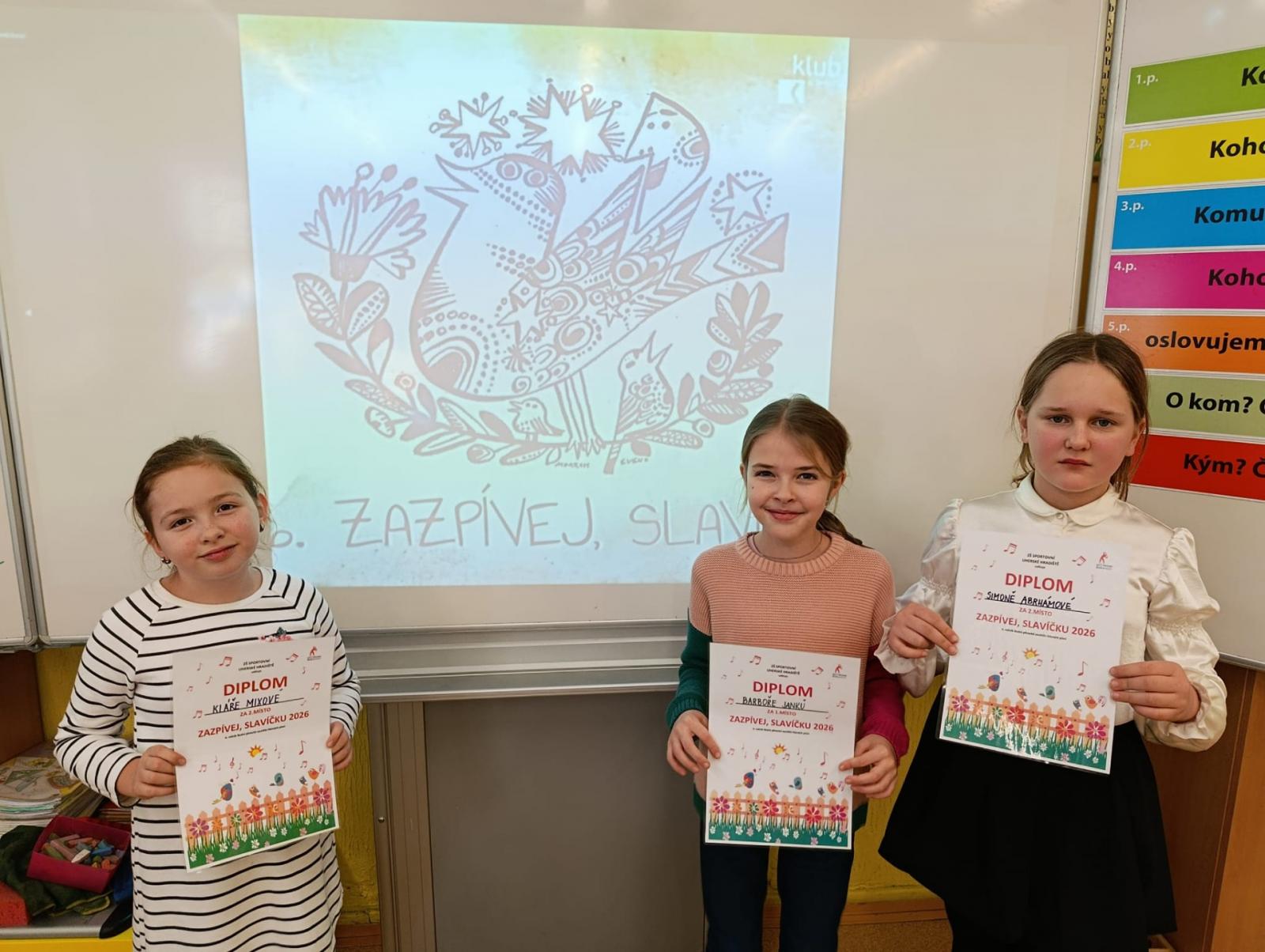 Dnes proběhlo školní kolo pěvecké soutěže Zazpívej, slavíčku. Soutěžilo se ve dvou kategoriích. V naší kategorii soutěžilo celkem 19 zpěváčků.