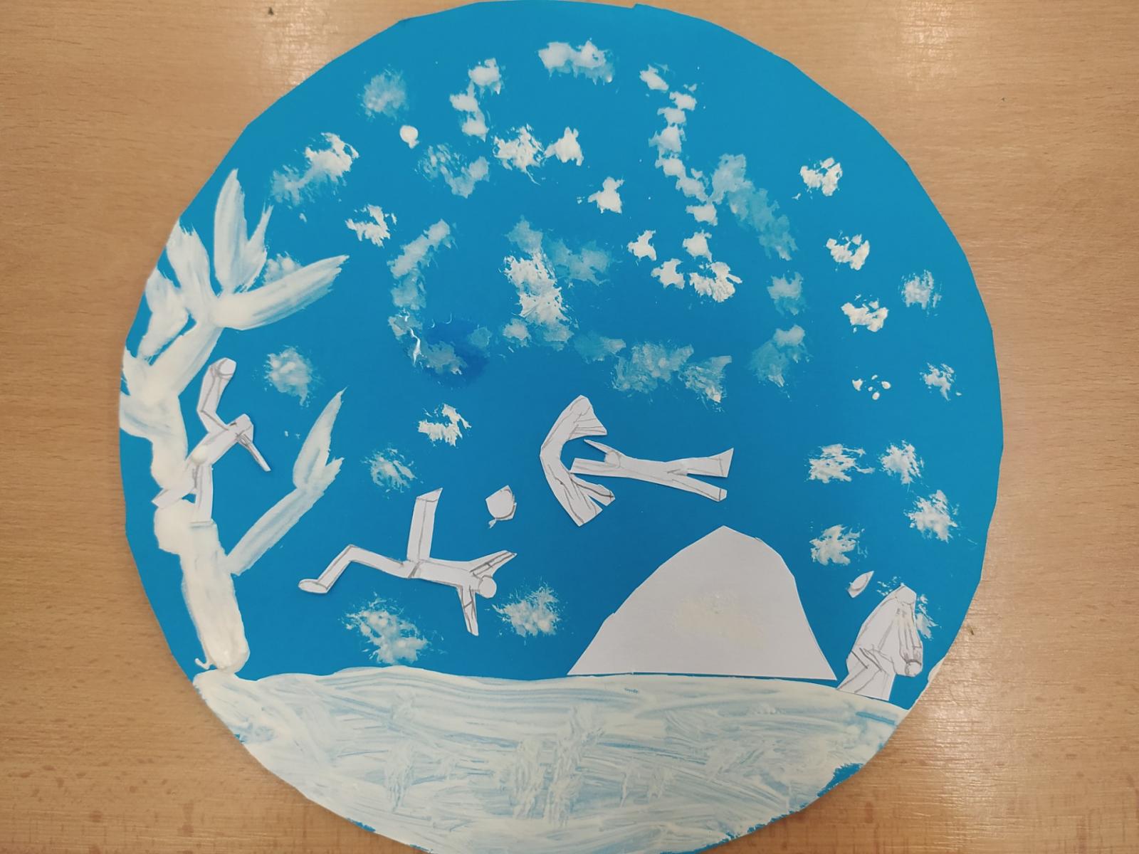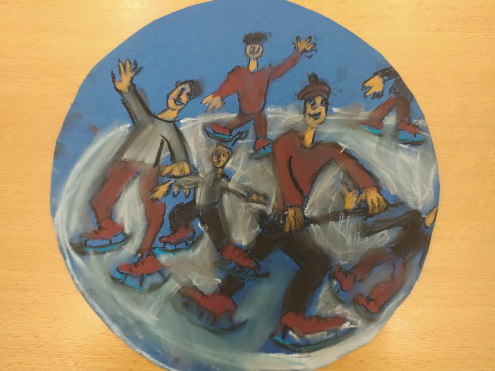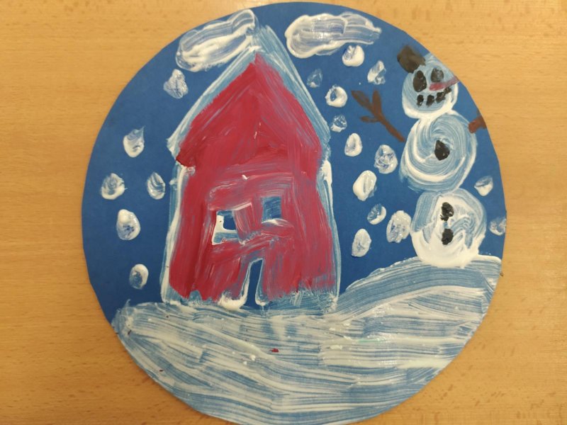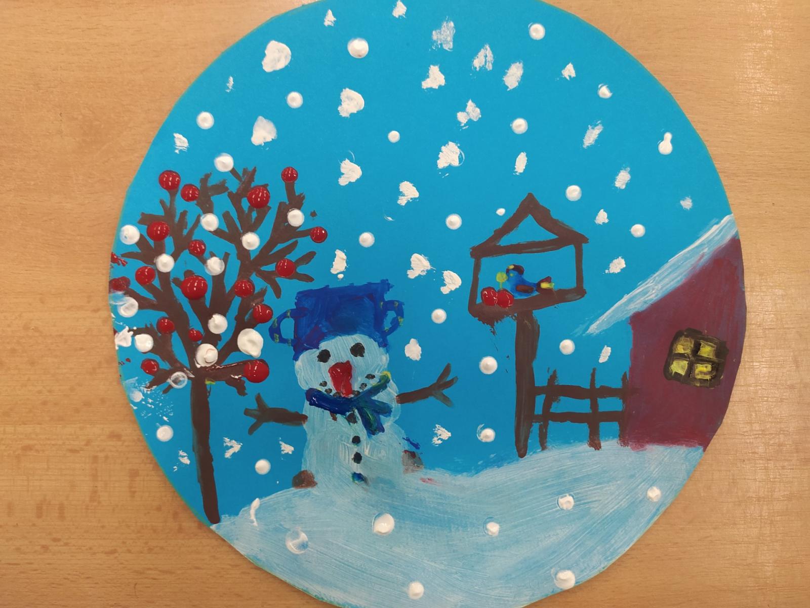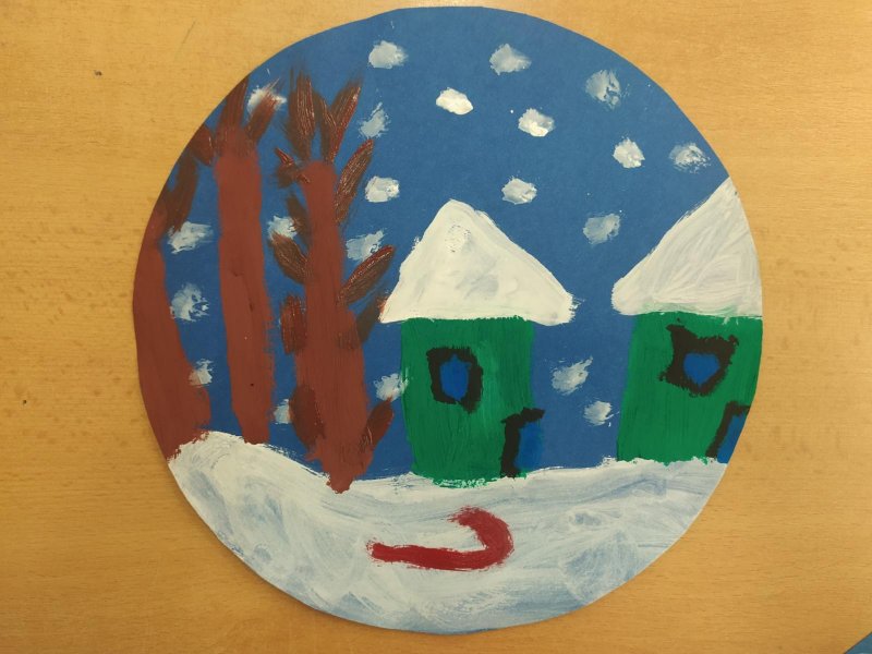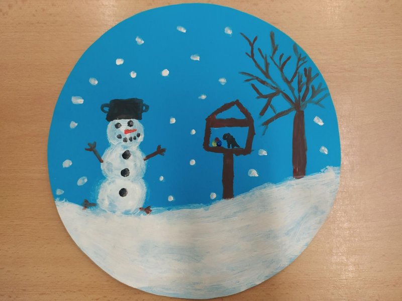 Krásné zimní obrázky nám vyzdobí třídu. Zvolili jsme volnou techniku, to znamená, že si každý mohl vybrat, co použije ke své práci. Někdo chtěl temperové barvy, jiní zase rozmazky, Martin zase lepil, ale práce se moc povedla všem.