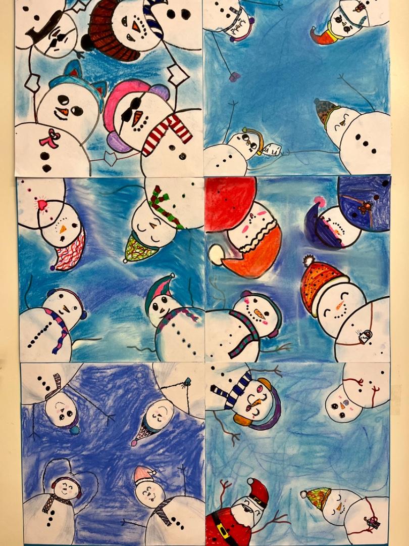 Zimu jsme konečně zažili i na vlastní kůži. Už nám chybělo zimní koulování a stavění sněhuláků. Zážitek z těchto aktivit se nám tak lépe dařil ztvárnit.
