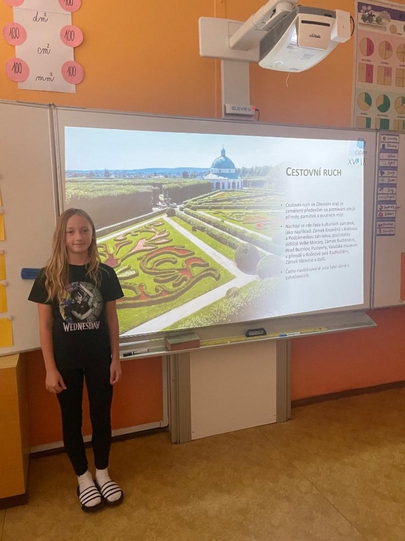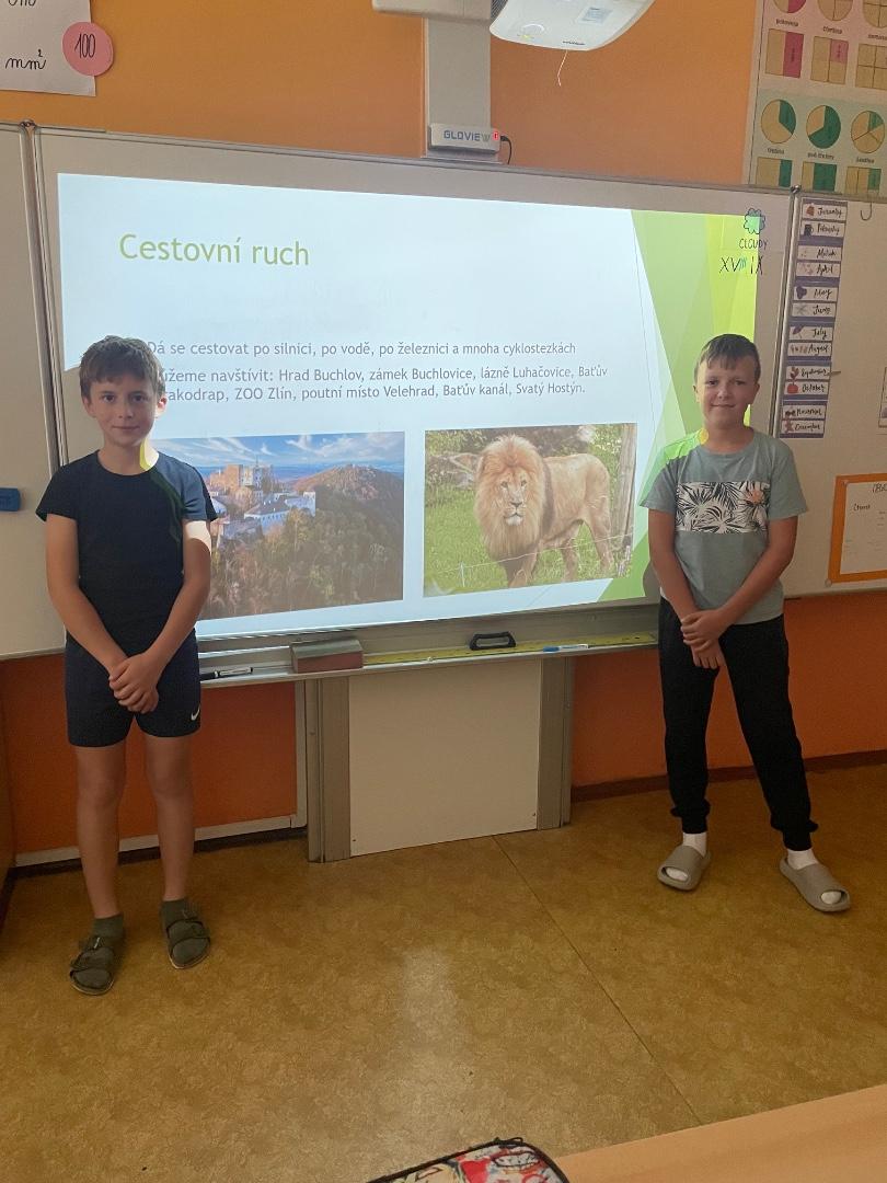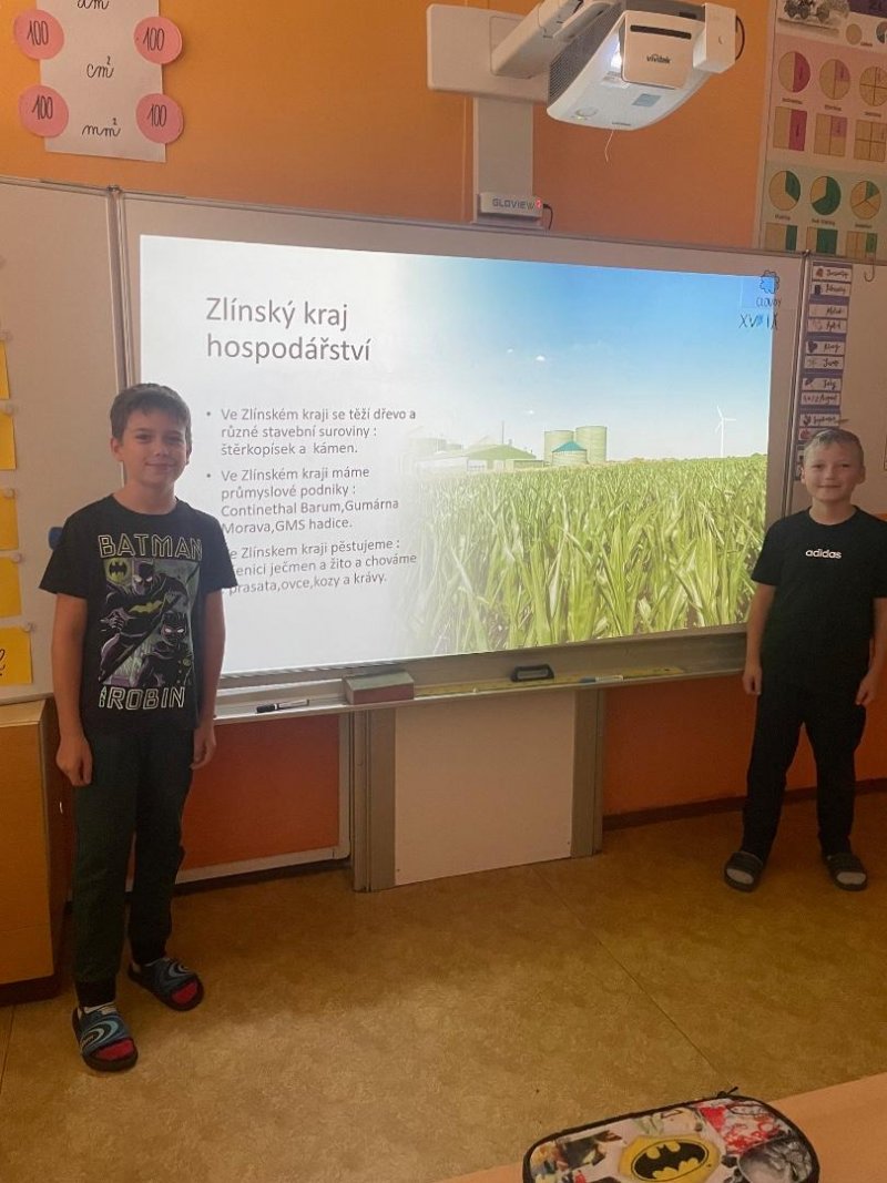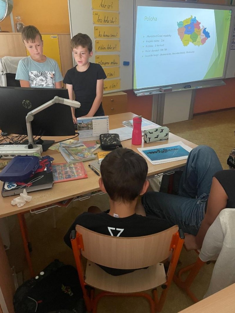 Žáci si připravili prezentace o Zlínském kraji. Naučili se vyhledávat informace, pracovat s PowerPointem a vystupovat před spolužáky. Zároveň získali nové znalosti o našem kraji.
