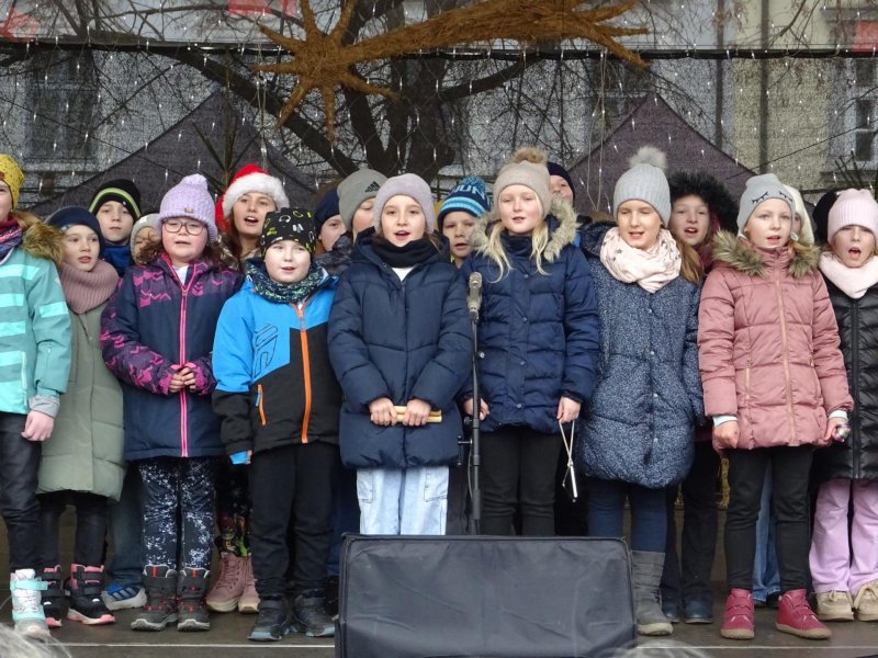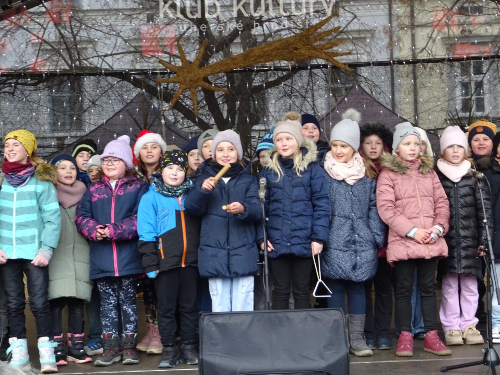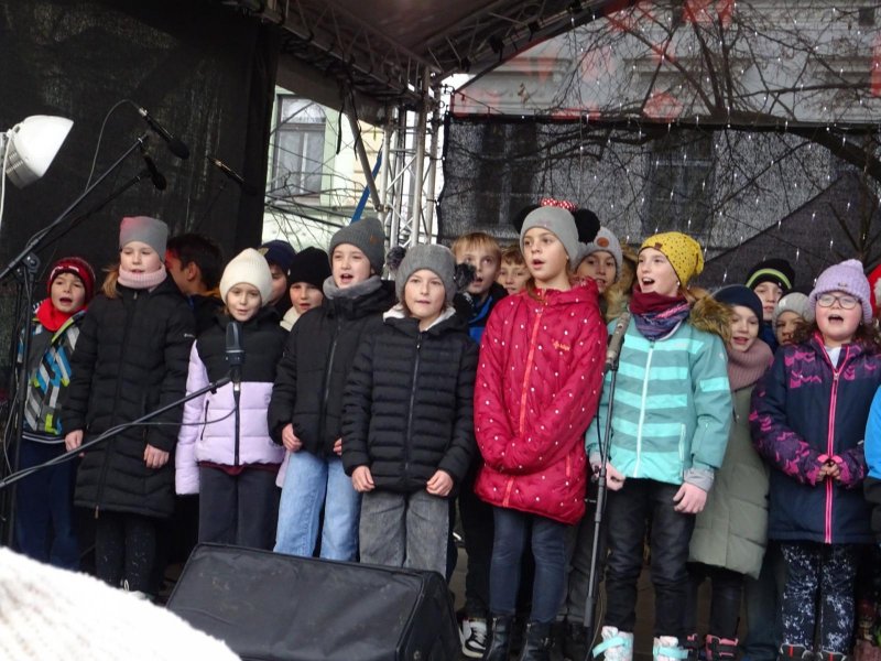 Na náměstí u vánočního stromečku jsme zazpívali koledu Vzhůru, bratři milí.